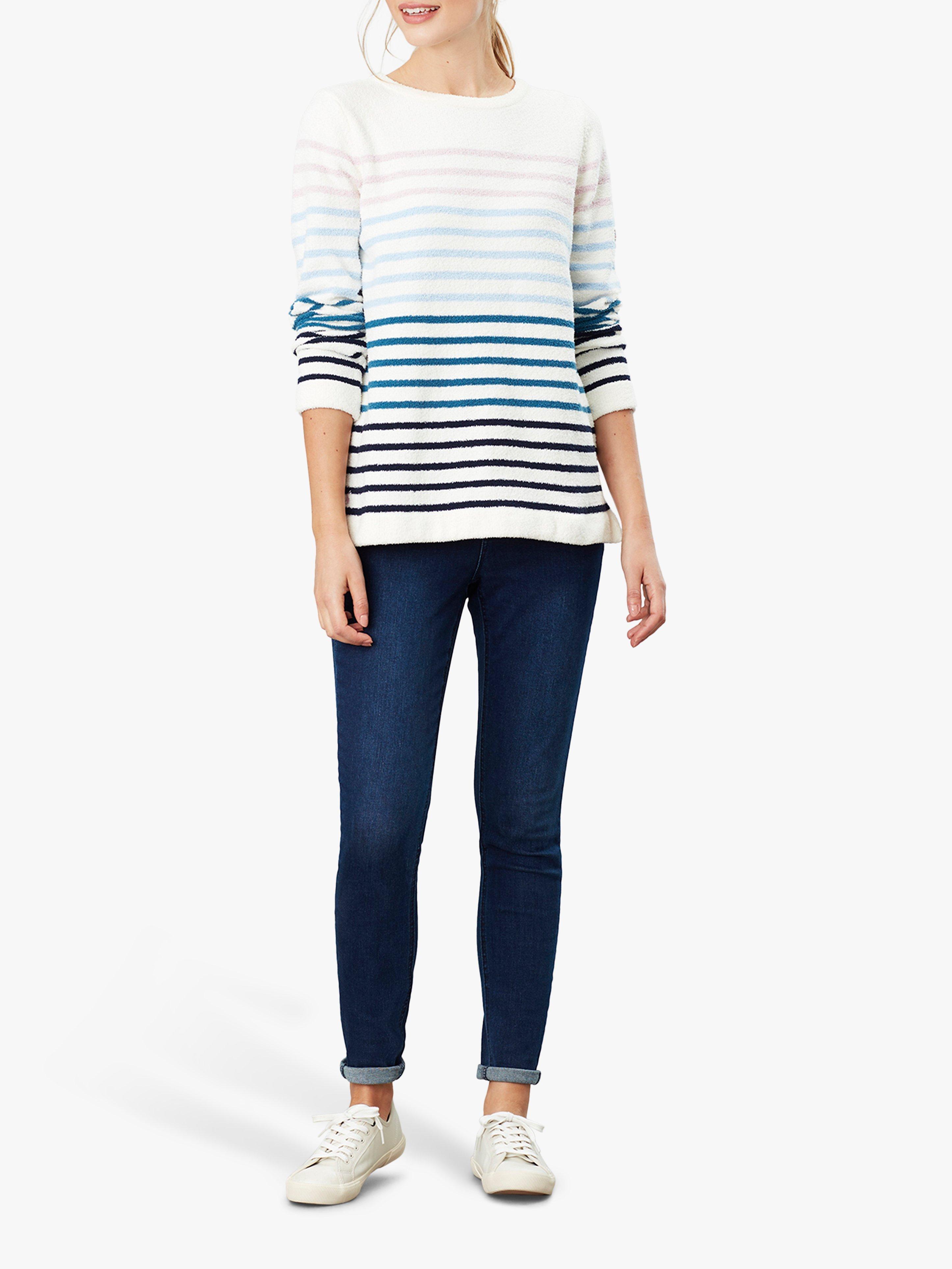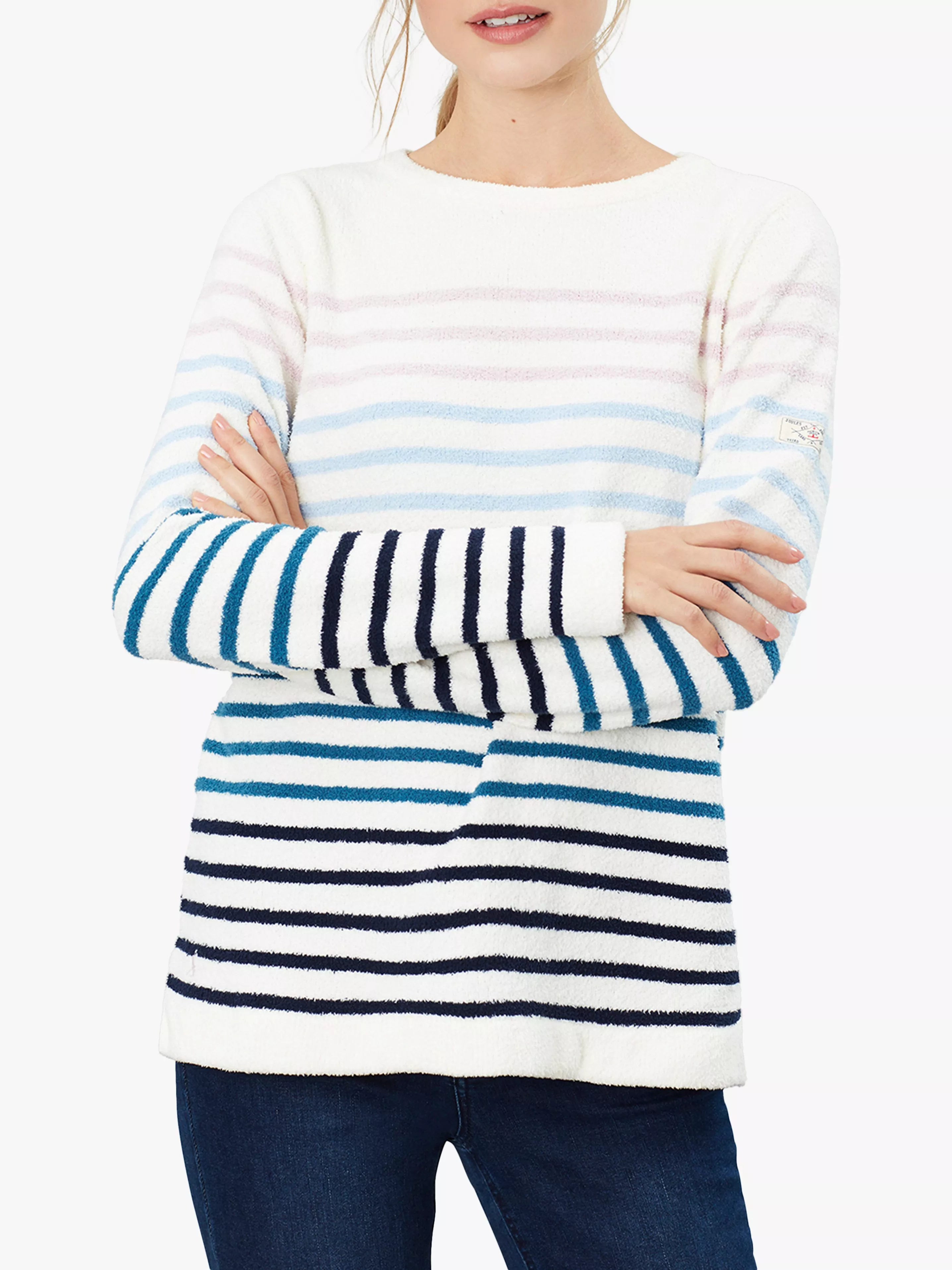 Add a layer of warmth to your ensemble with the Seaham chenille jumper from Joules. Cut in a regular fit with a classic crew neck, long sleeves and adorned in a stripe print design with a hint of colour, layer over a cami and denim for relaxed weekend styling.