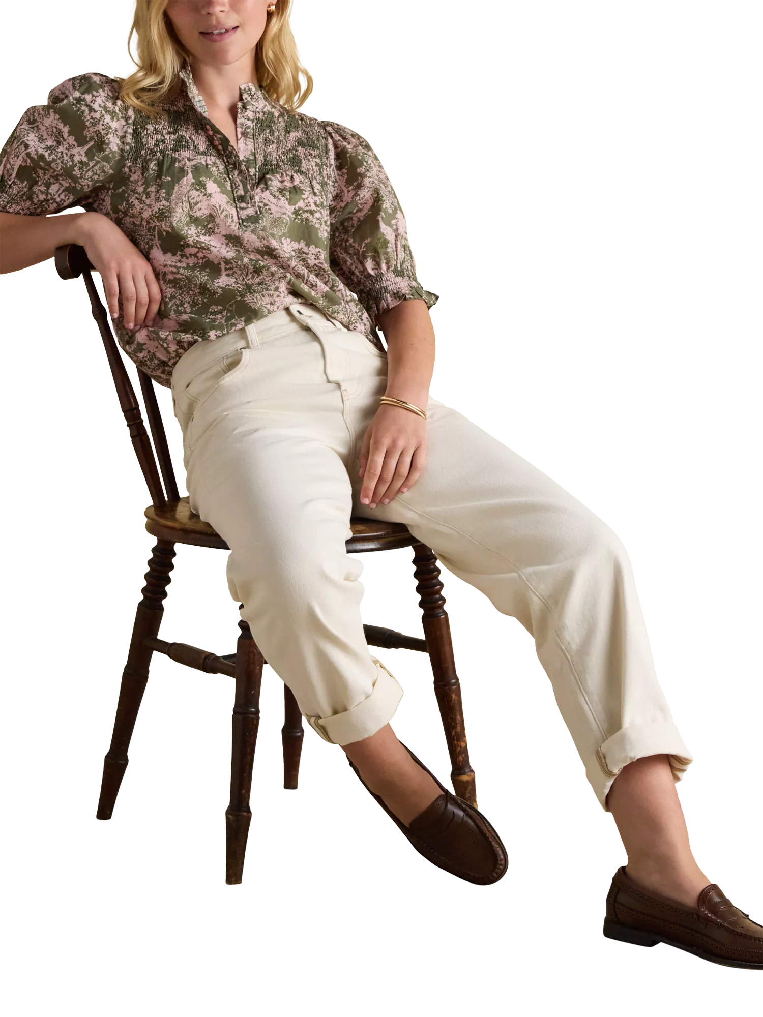 A blouse that will bloom in your summer wardrobe. The Silvia is lovingly crafted from 100% cotton that is light and perfect for the warmer weather. It's full of beautiful detailing, from the frill trim neckline with button fastening, to the hand-drawn print that you won't find anywhere else.