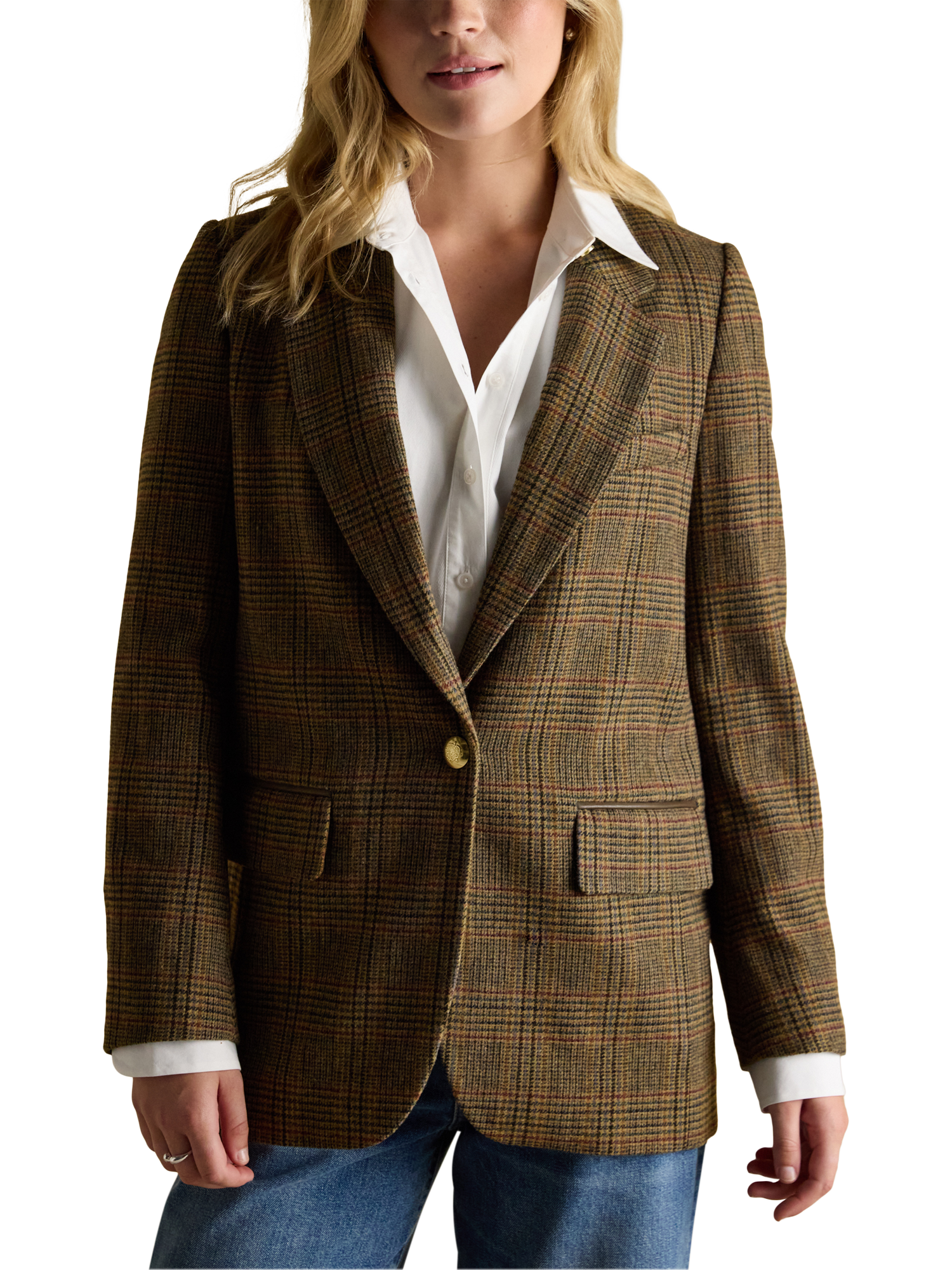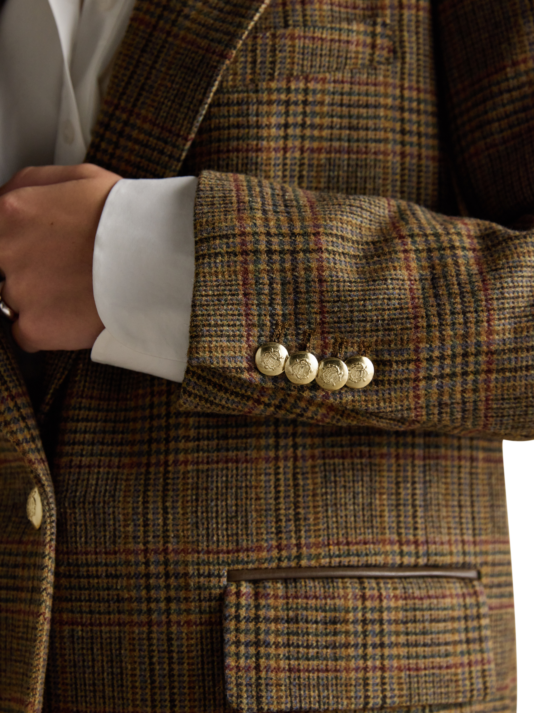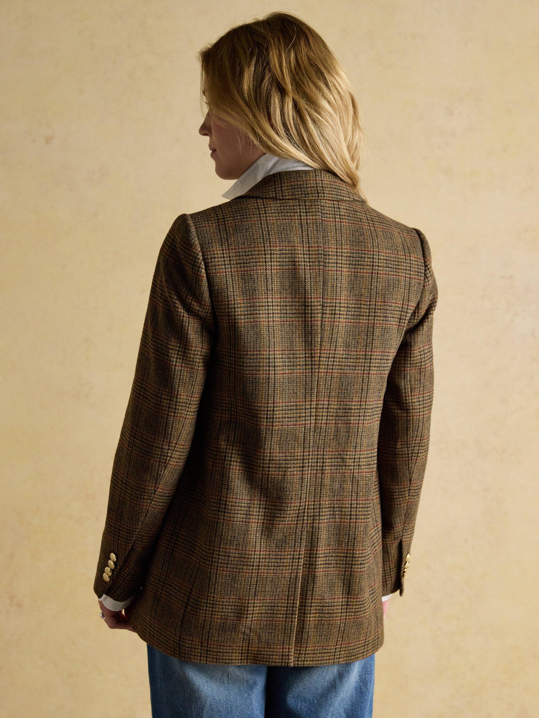 This single-breasted checked blazer features a classic collar and long sleeves, crafted in a soft wool blend for all-day comfort. It offers versatile layering, while gentle padding to the shoulders offers a little structure and keeps you smart, no matter what your diary holds.
