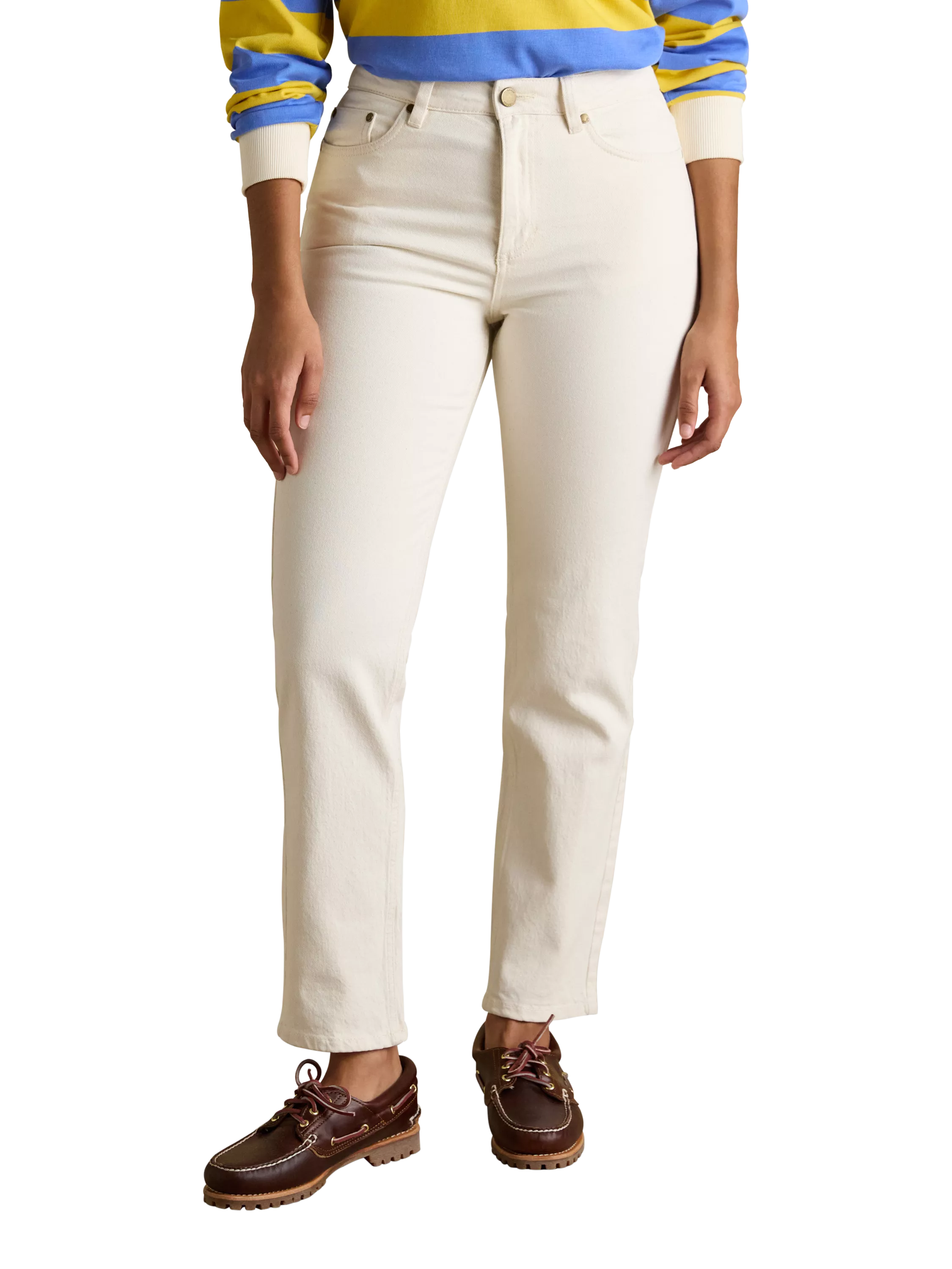 Joules' jeans have been meticulously designed to ensure your everyday staples not only look the part but feel it too. These have a mid-rise waist and a straight cut through the leg that is flattering yet comfortable. The denim has a soft feel and will ensure it's an enduring part of your wardrobe. To give them more movement, there is added stretch in the fabric (farewell stiff-feeling jeans) and the hems can be rolled up or down, however you fancy. They're finished with the traditional five-pocket styling, belt loops and a zip fly fastening. Finally, if you take a cheeky peek at the rear, you'll find a leather-branded Joules tab at the waistband.
