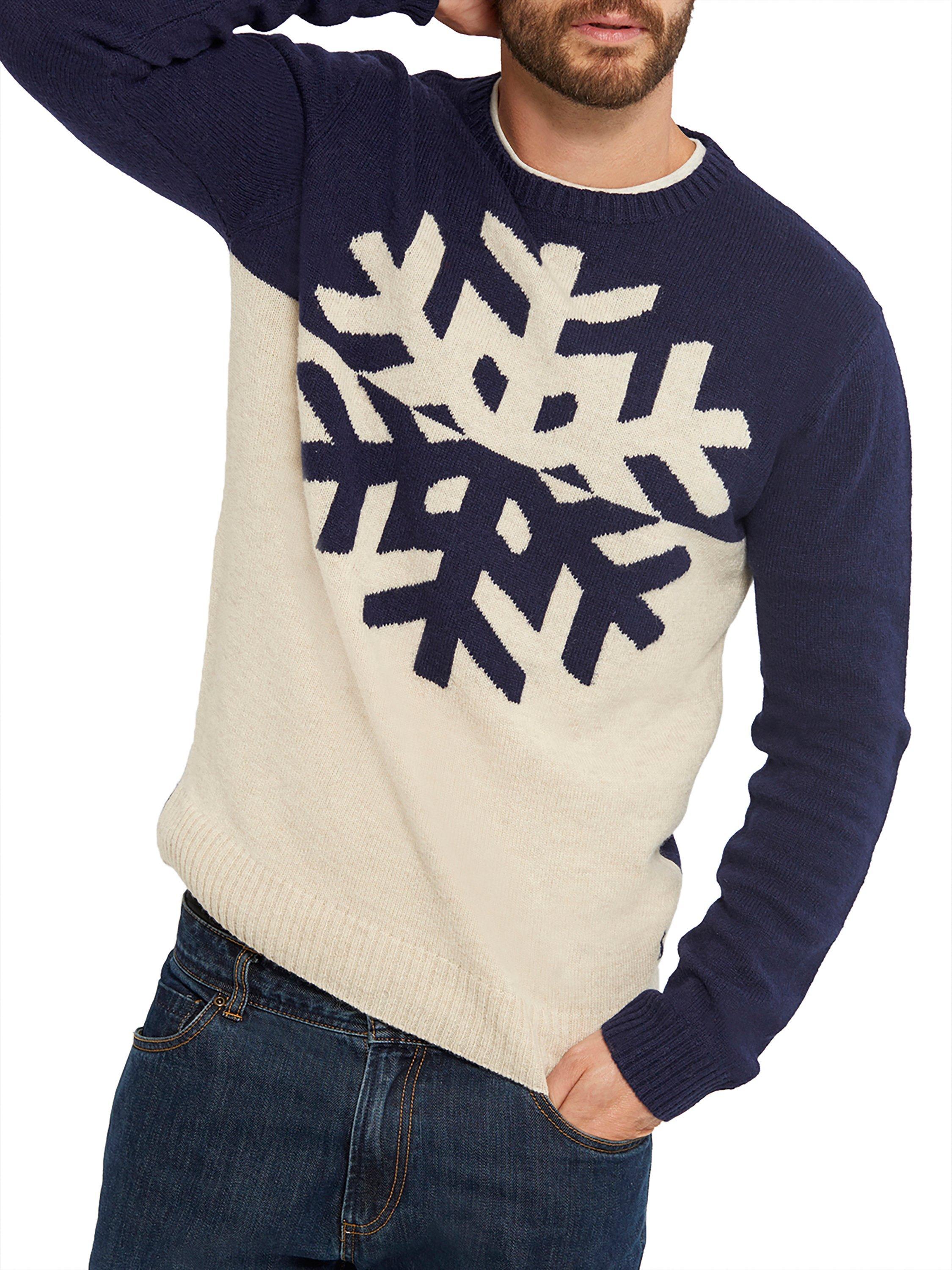 Crafted from a soft lambswool mix, this jumper features a classic crew neck, long sleeves and a ribbed hem and sleeve for touch of added detailing. The snowflake design adorns the front chest, and is sure to make an impression when the weather finally turns. Simply pair with a t-shirt and jeans for an easy-going casual look.