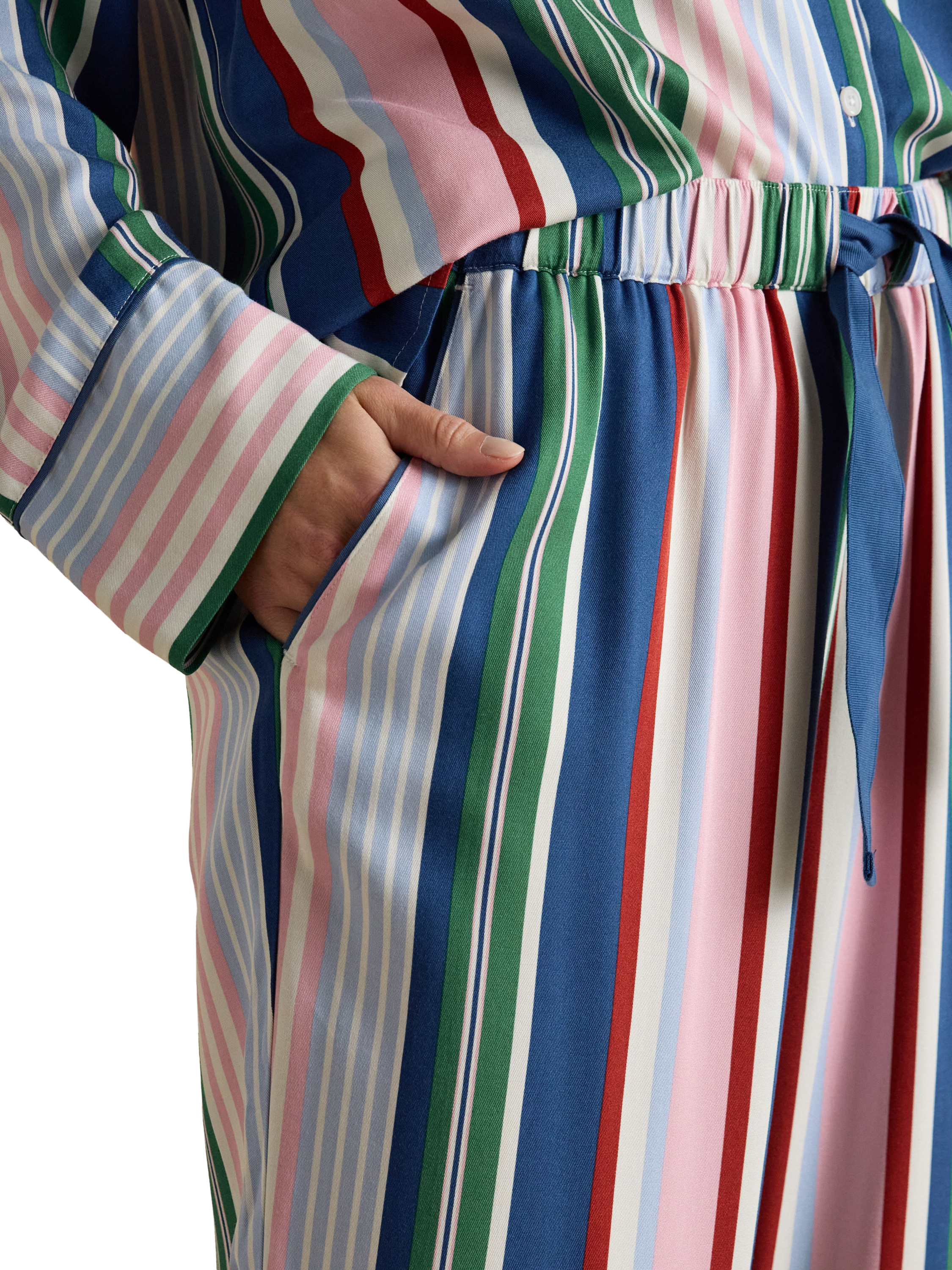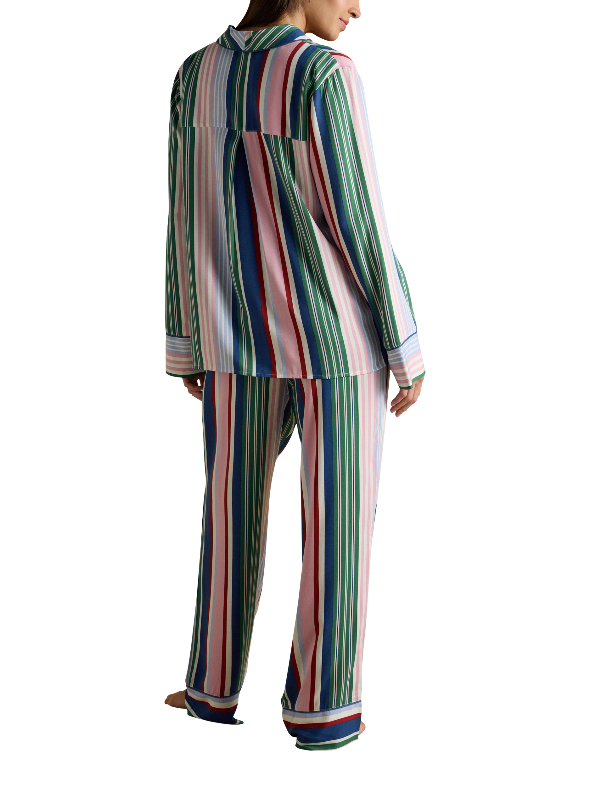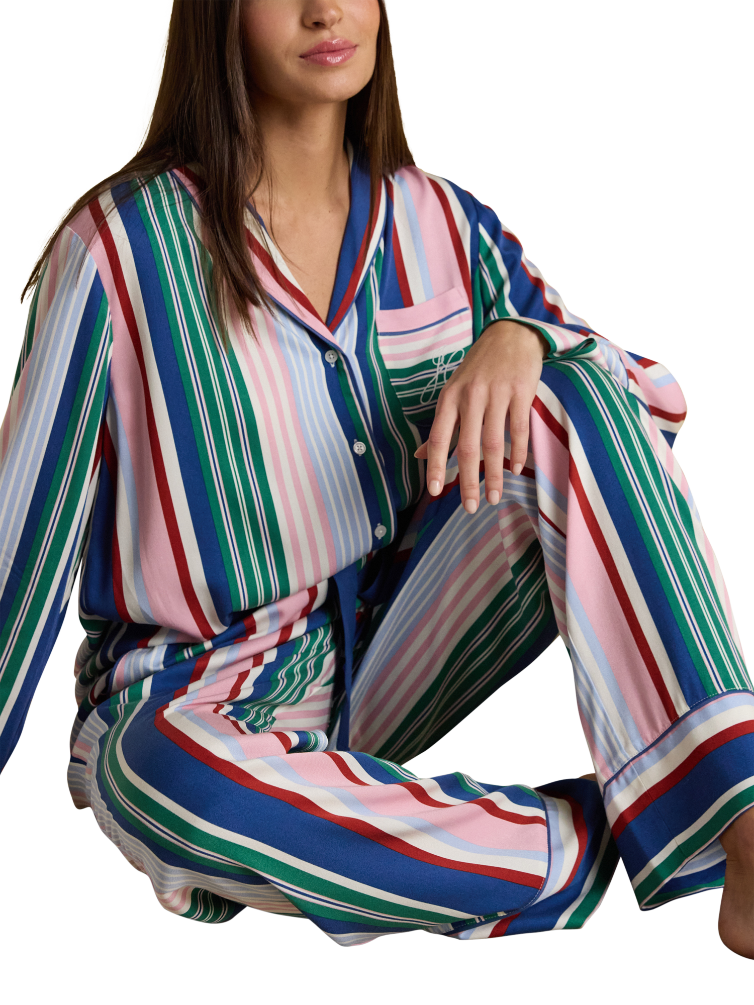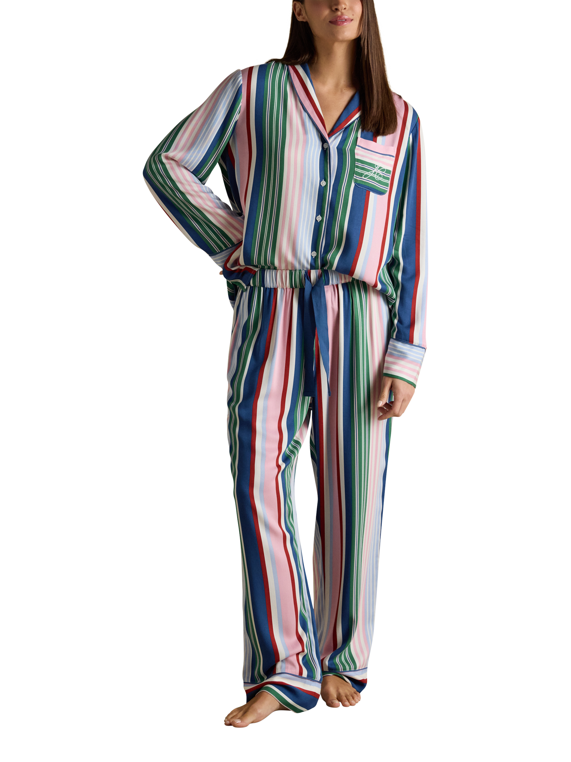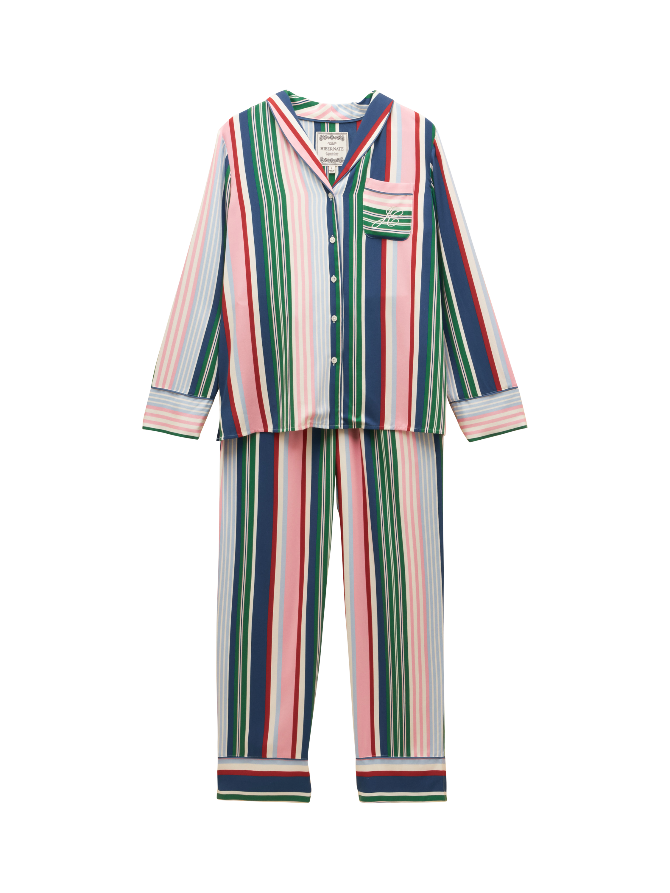 JoulesStripe Button Through Long Pyjama Set, Multi