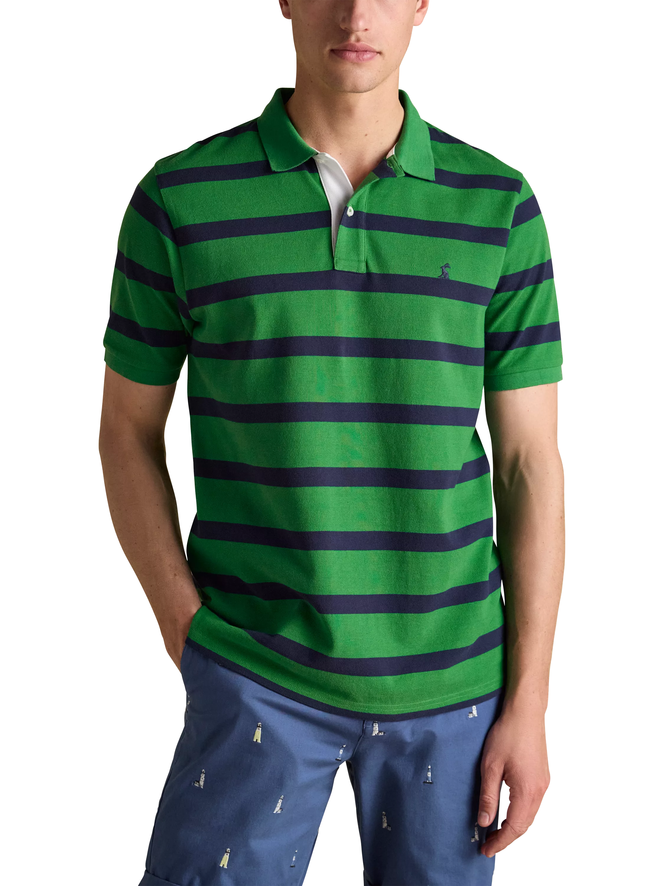 Soft cotton provides the base for this polo shirt's contrasting horizontal stripes to do their aesthetic work.
