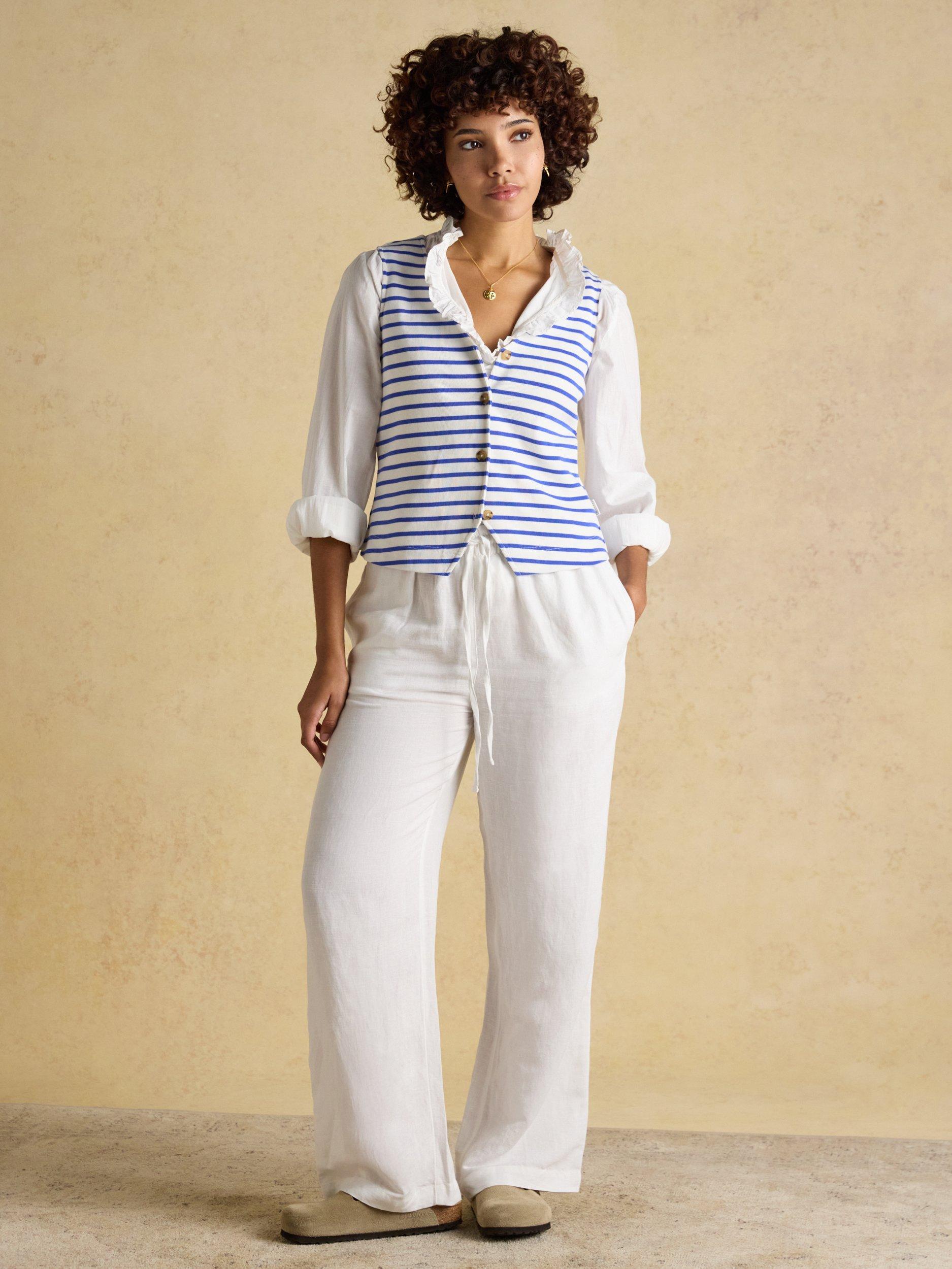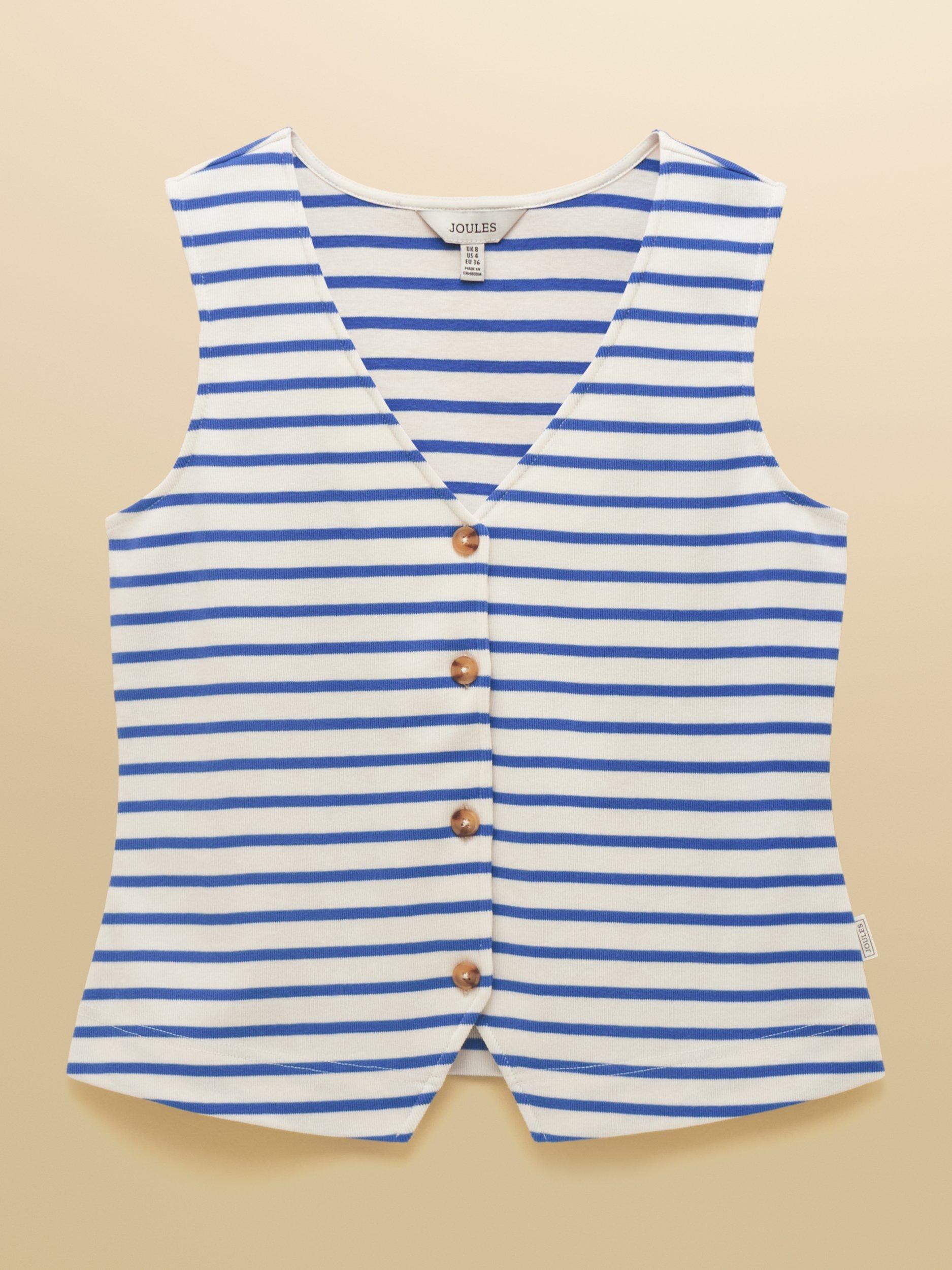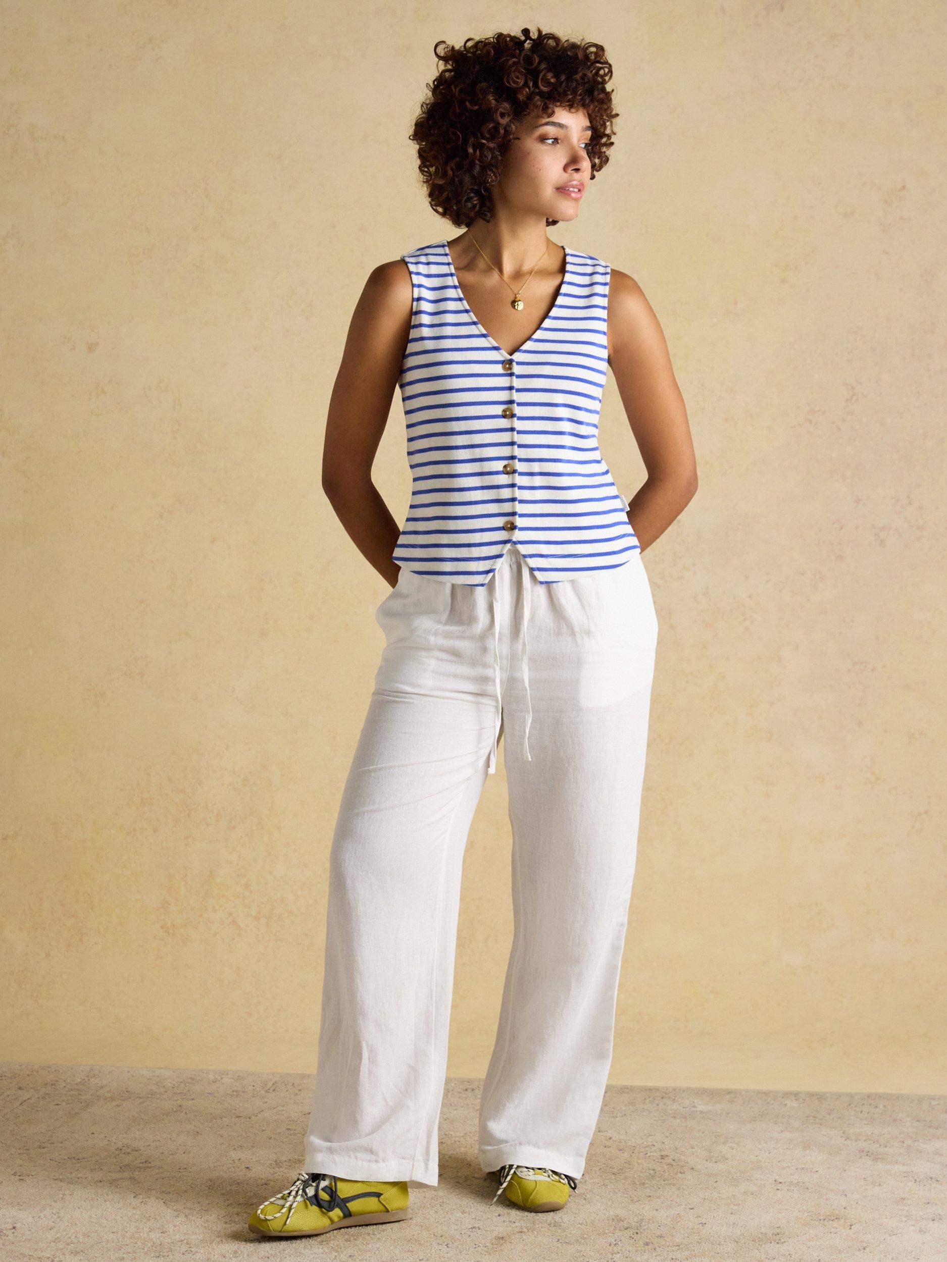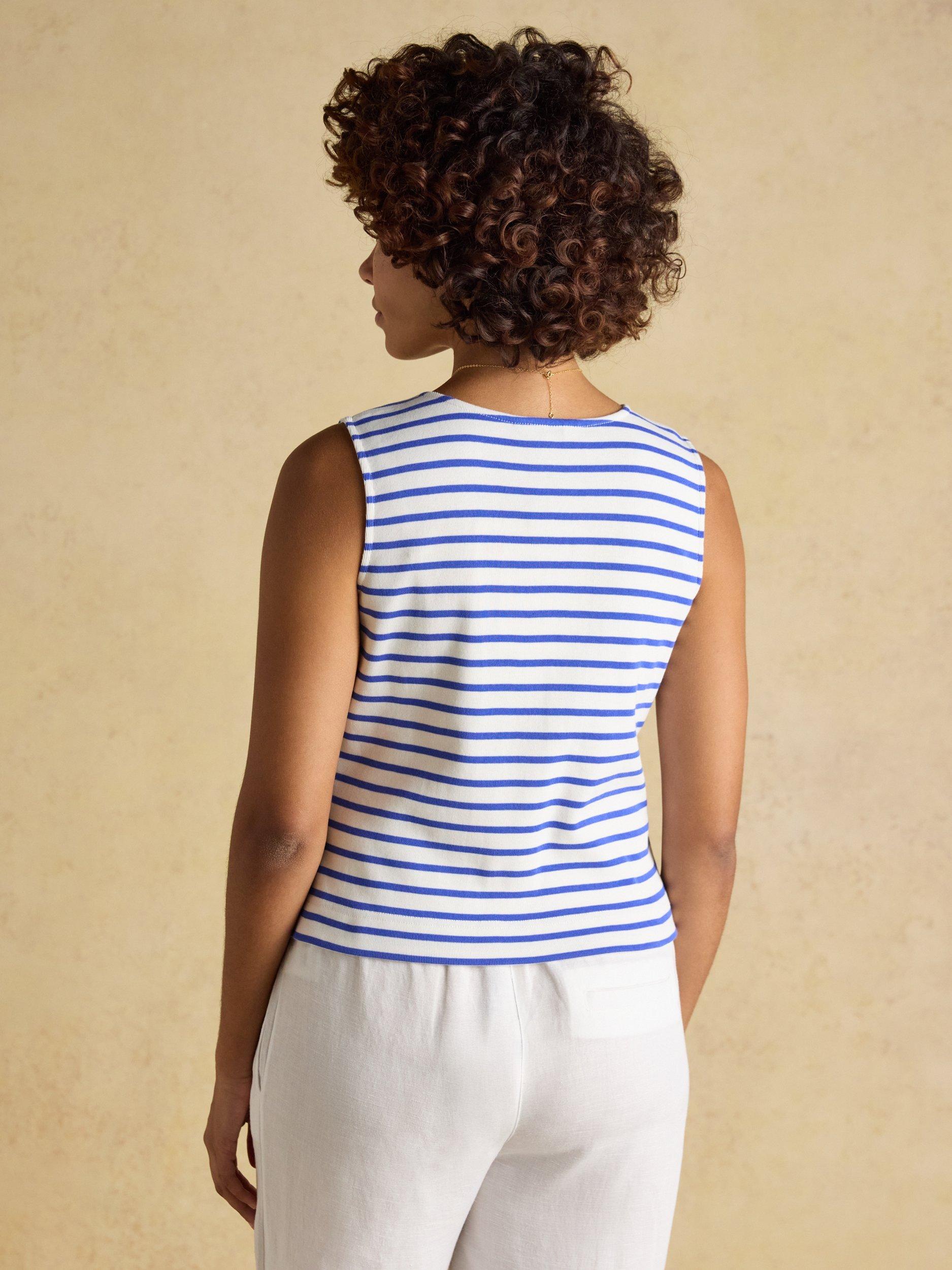 A stylish new tank for the spring and summer months is calling you. It's crafted from the same 100% cotton jersey fabric you love, but has been elevated through its new design. The back neck has been lowered so that the tank can be worn with the buttons at the front, or as a statement to the back, giving you more ways to wear it. The inverted V at the hem creates a flattering silhouette, and the ribbed fabric finish adds comfortable stretch. Create the ultimate summer look by styling with a pair of wide-leg linen trousers or shorts.