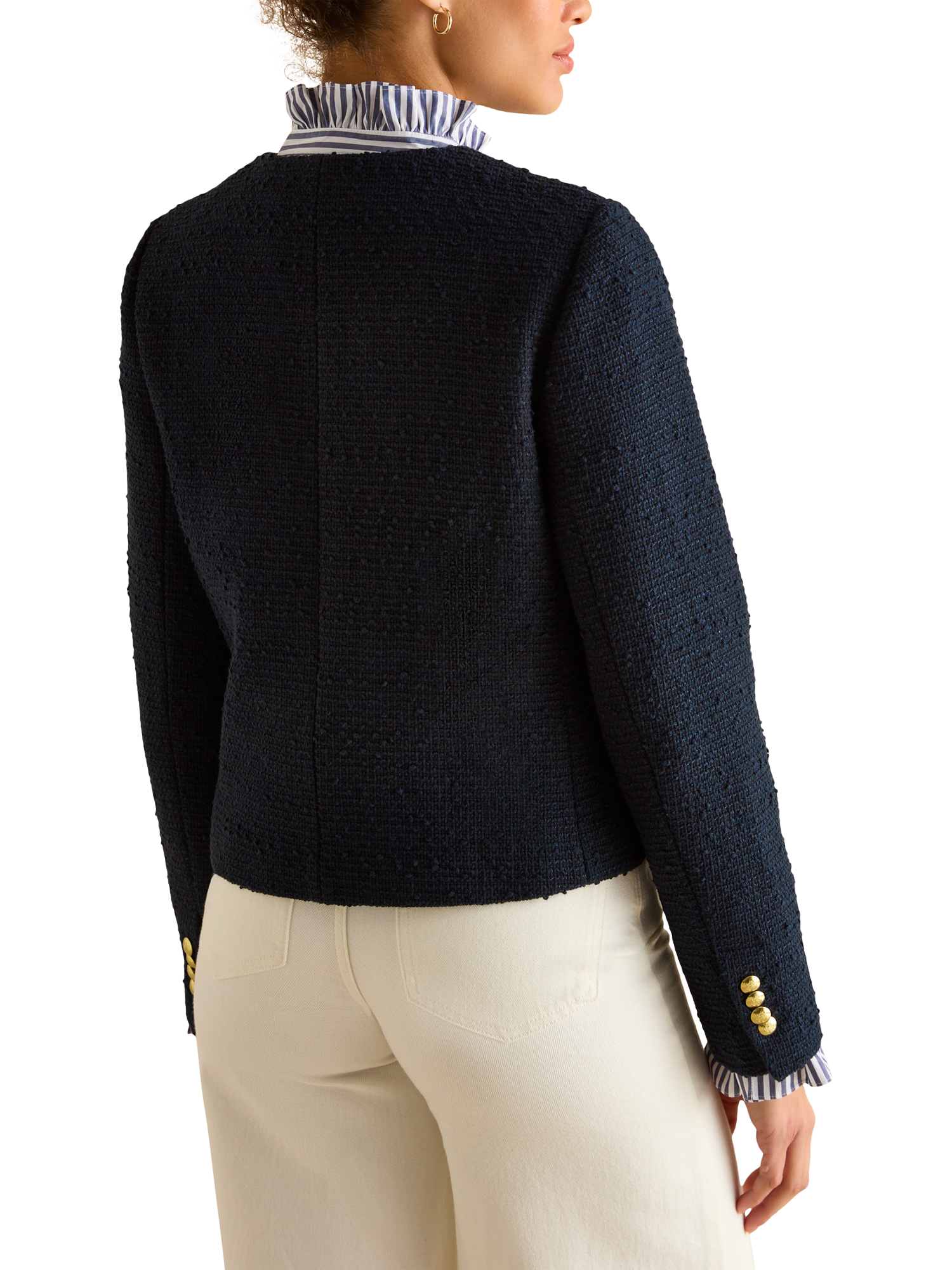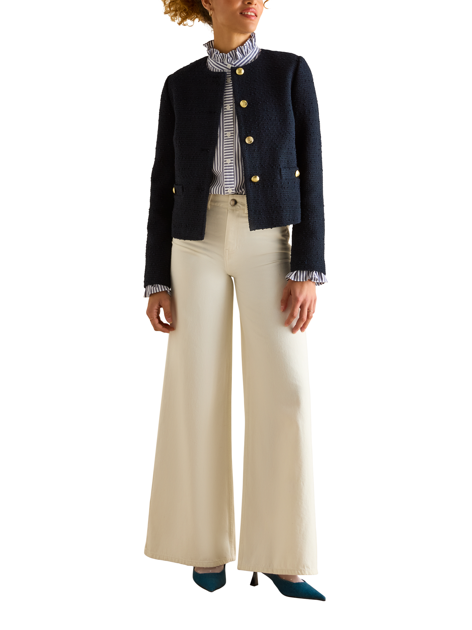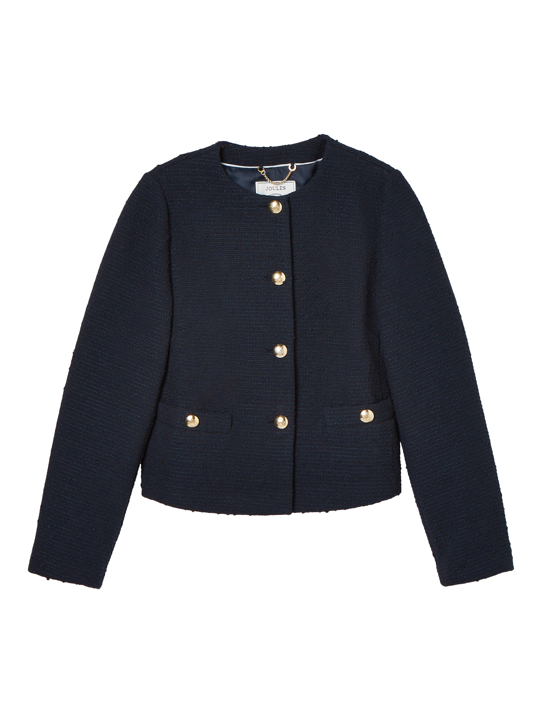 An effortless outerwear piece you can just throw on and go, this boucle jacket by Joules falls to a regular length.