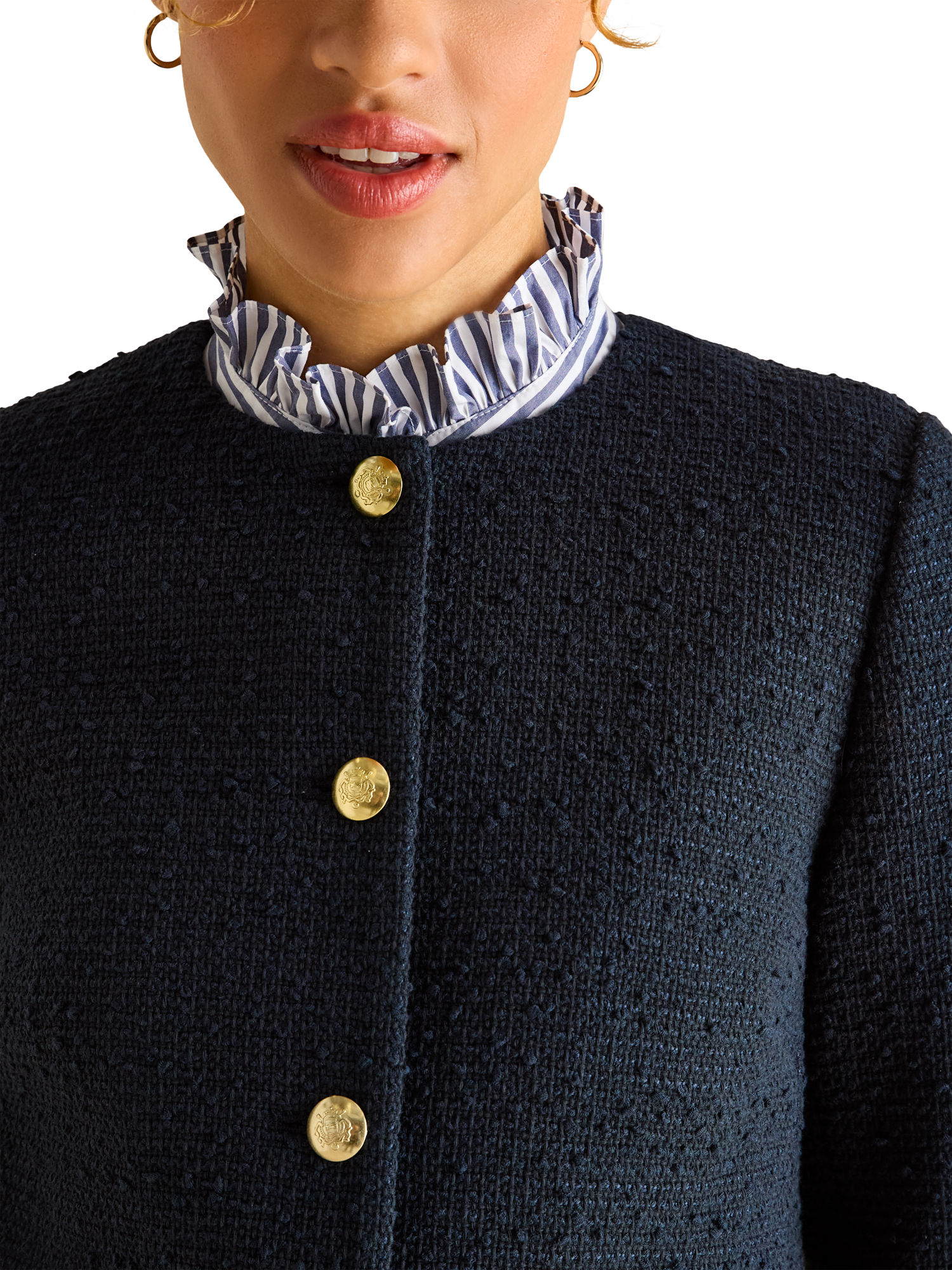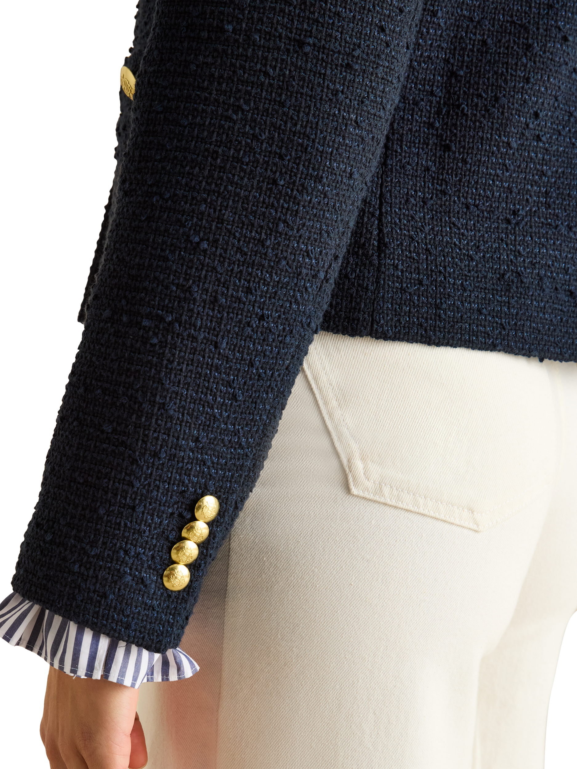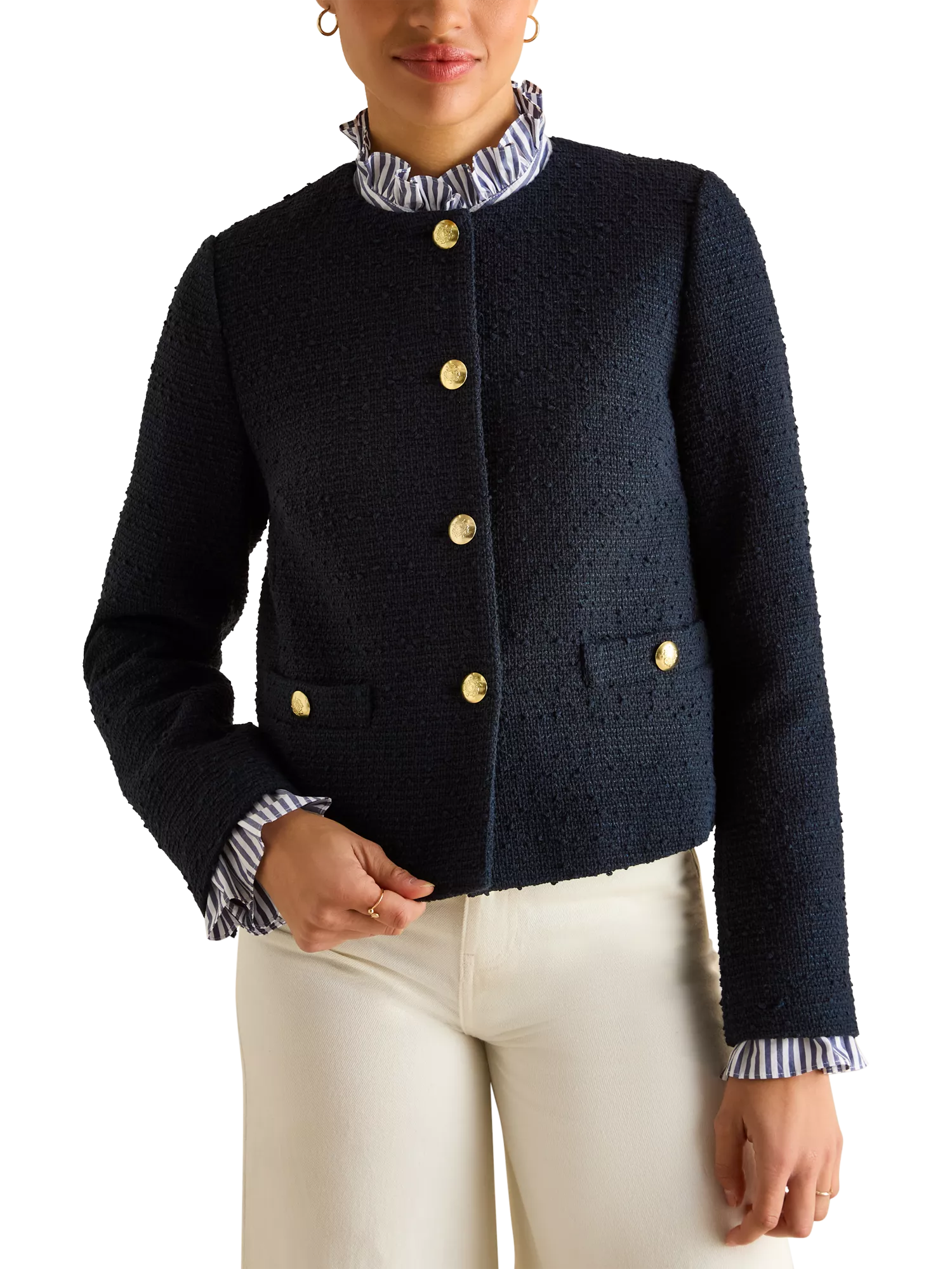 An effortless outerwear piece you can just throw on and go, this boucle jacket by Joules falls to a regular length.