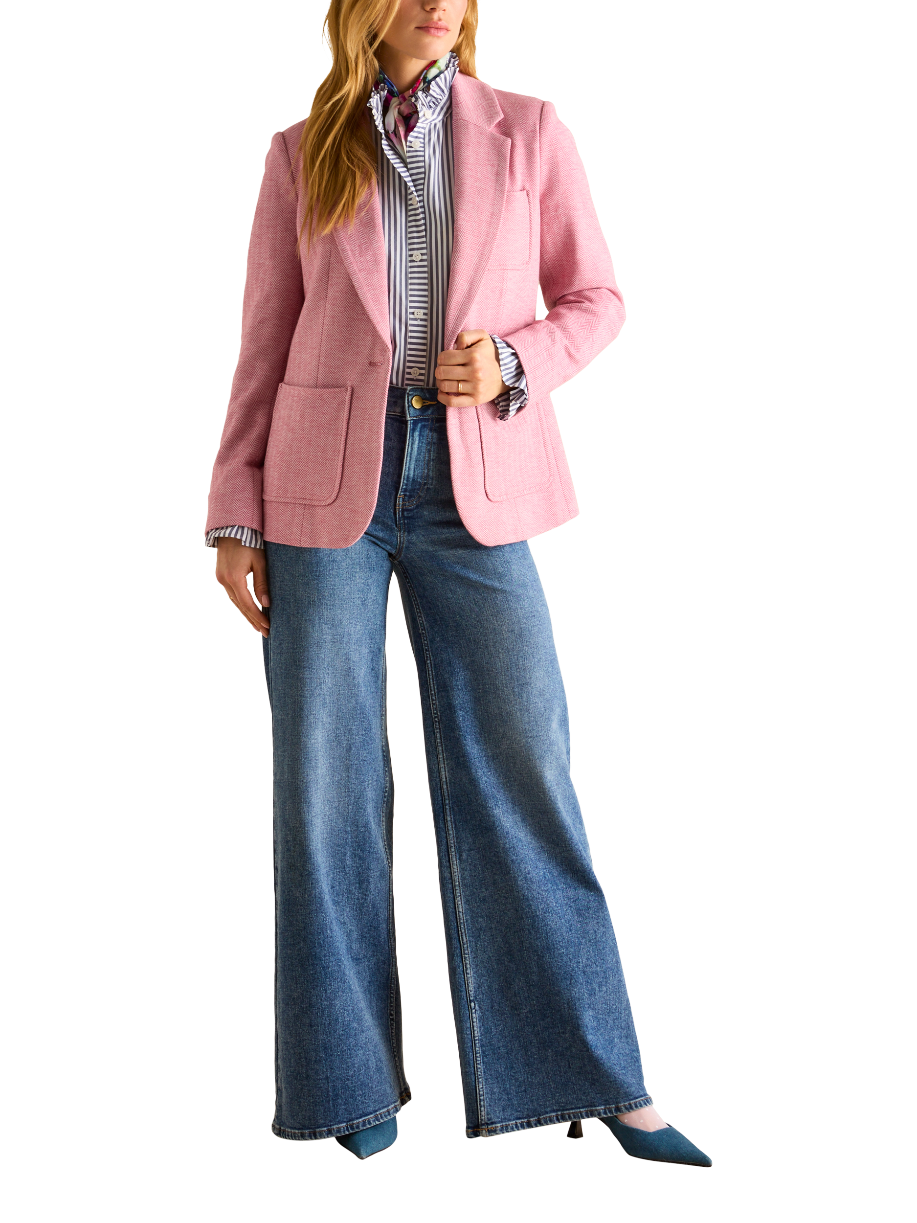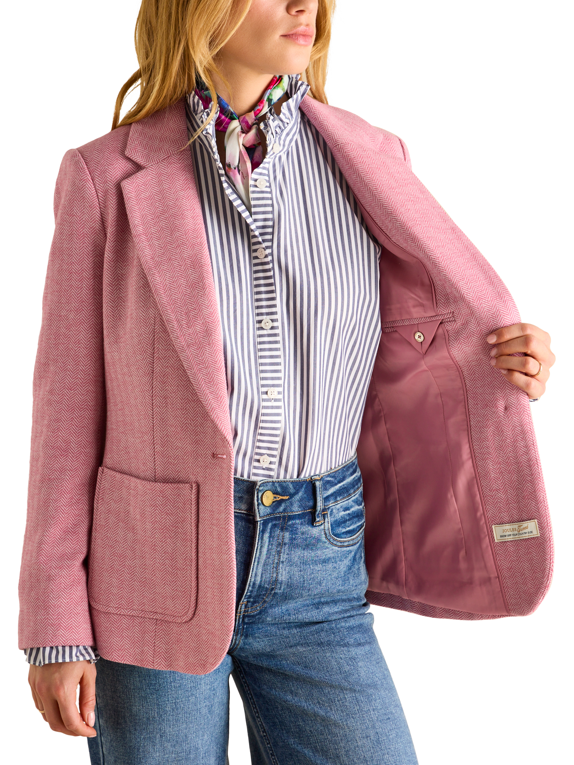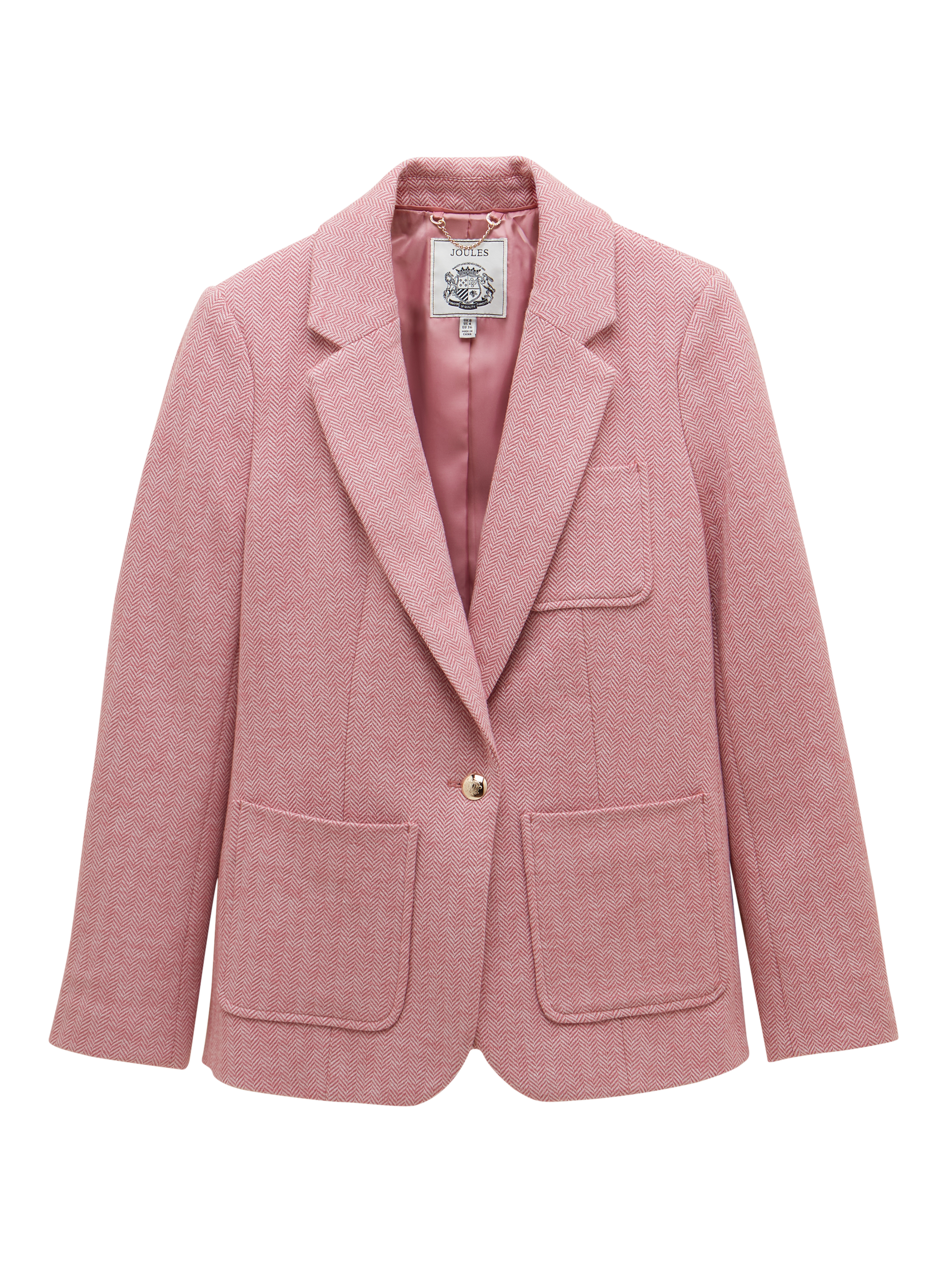 For smarter settings that call for a tailored touch, this single-breasted blazer from Joules is crafted from a soft herringbone cotton blend with a satin lining and patch pockets.