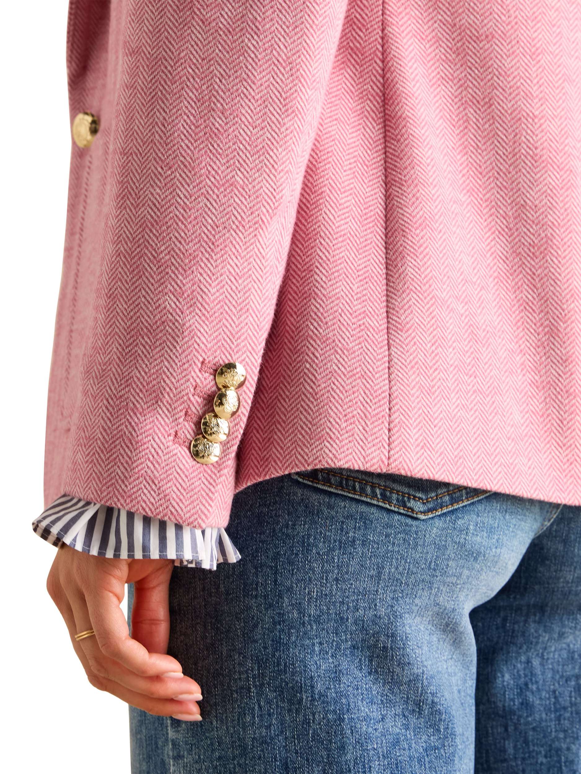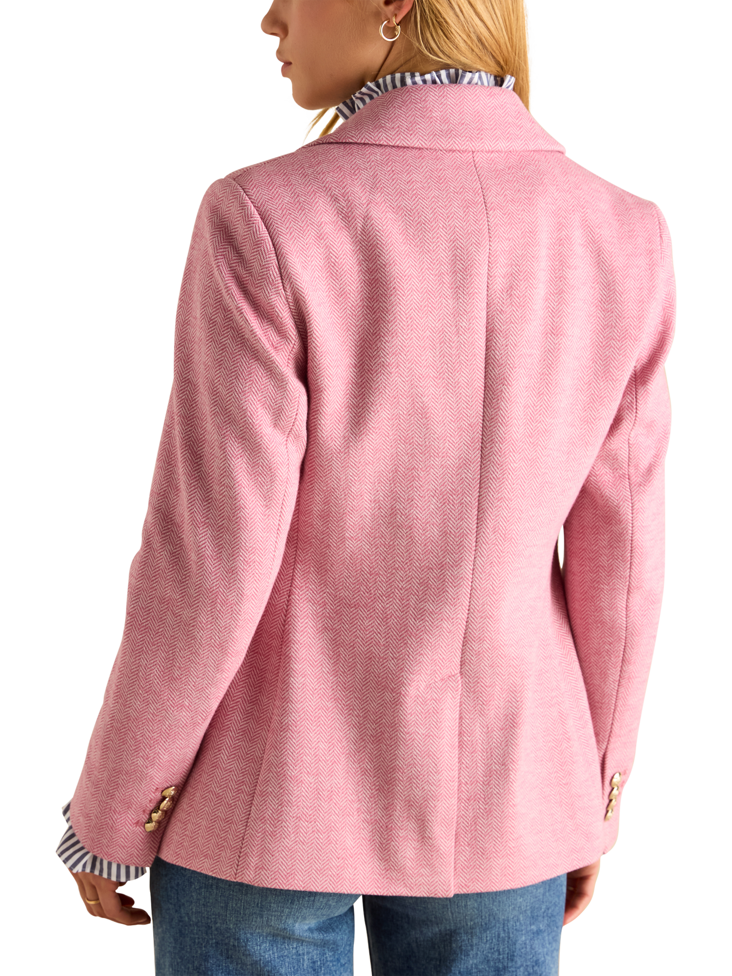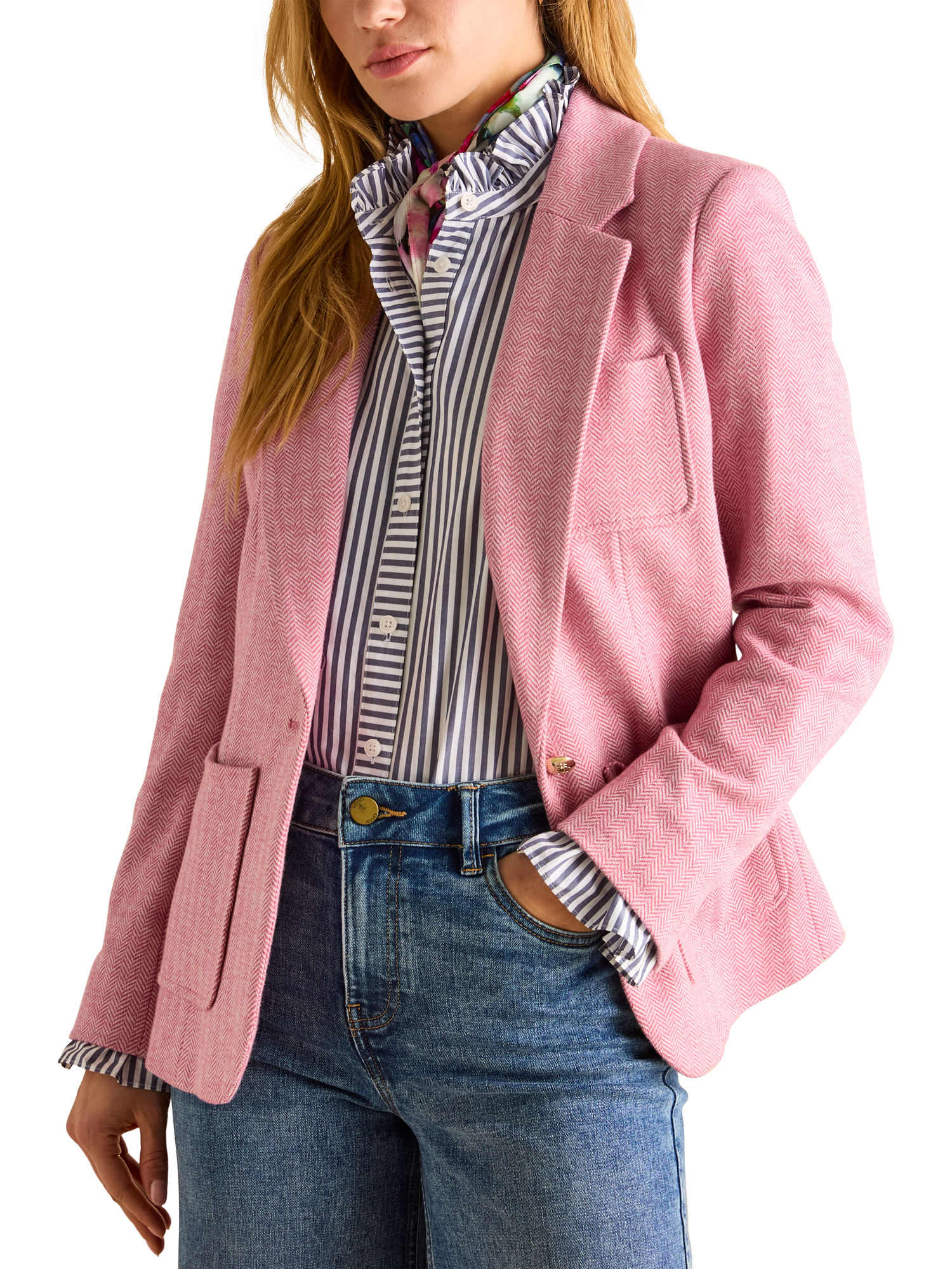 For smarter settings that call for a tailored touch, this single-breasted blazer from Joules is crafted from a soft herringbone cotton blend with a satin lining and patch pockets.