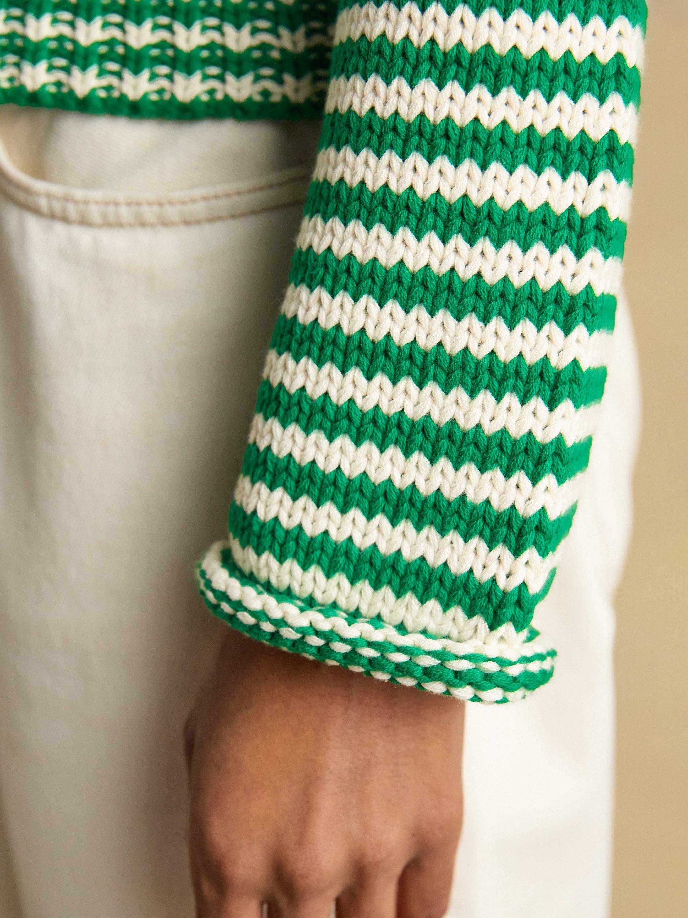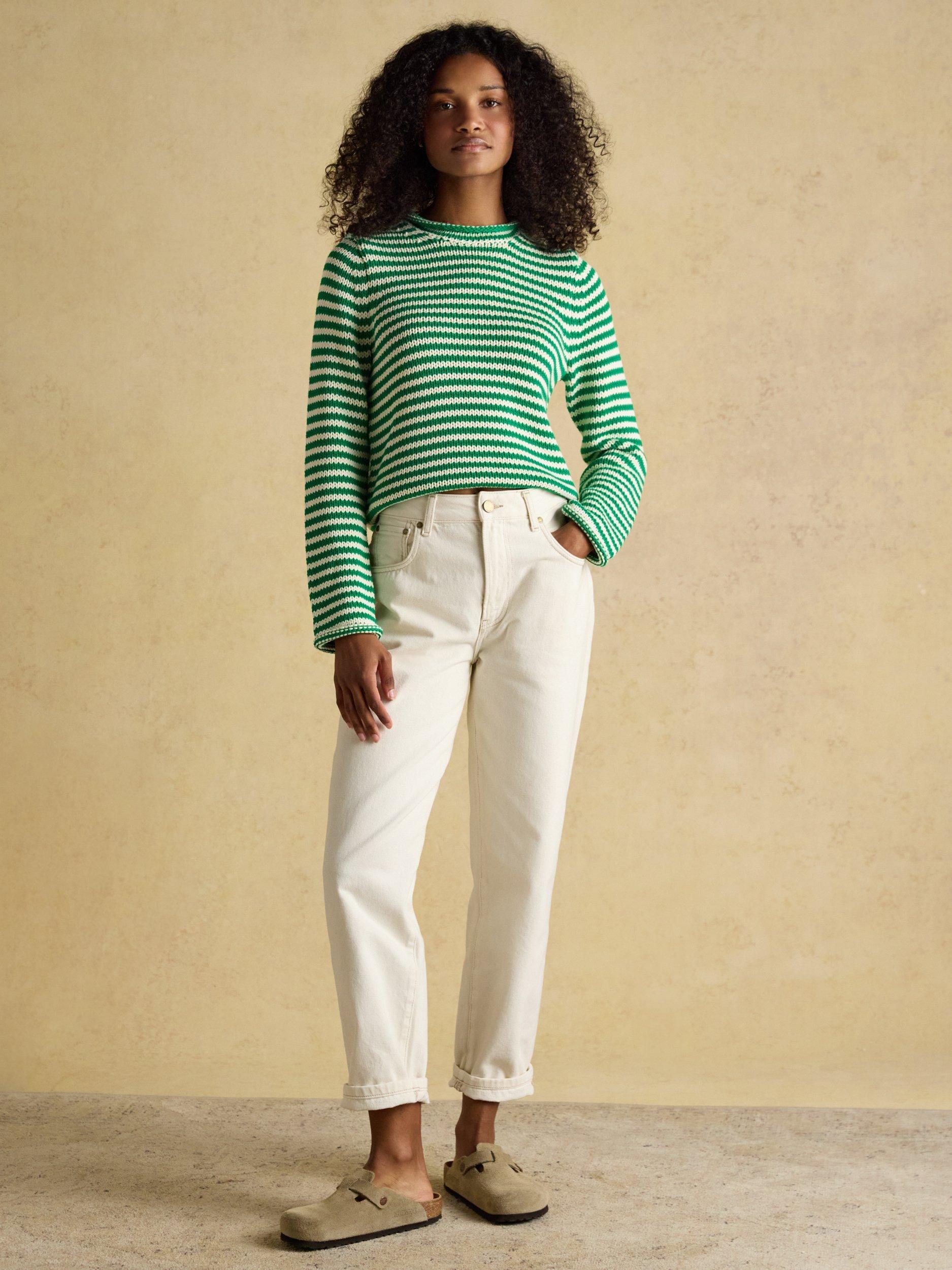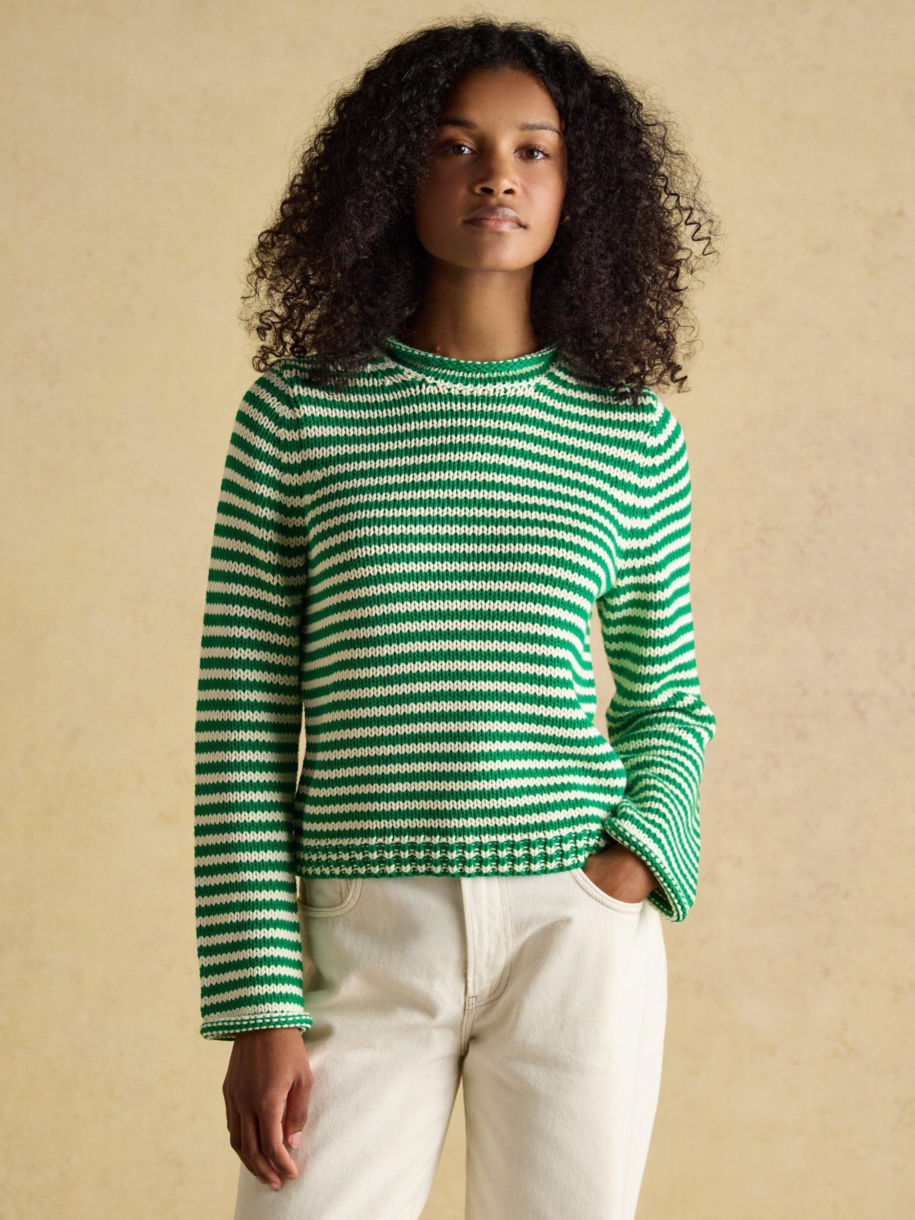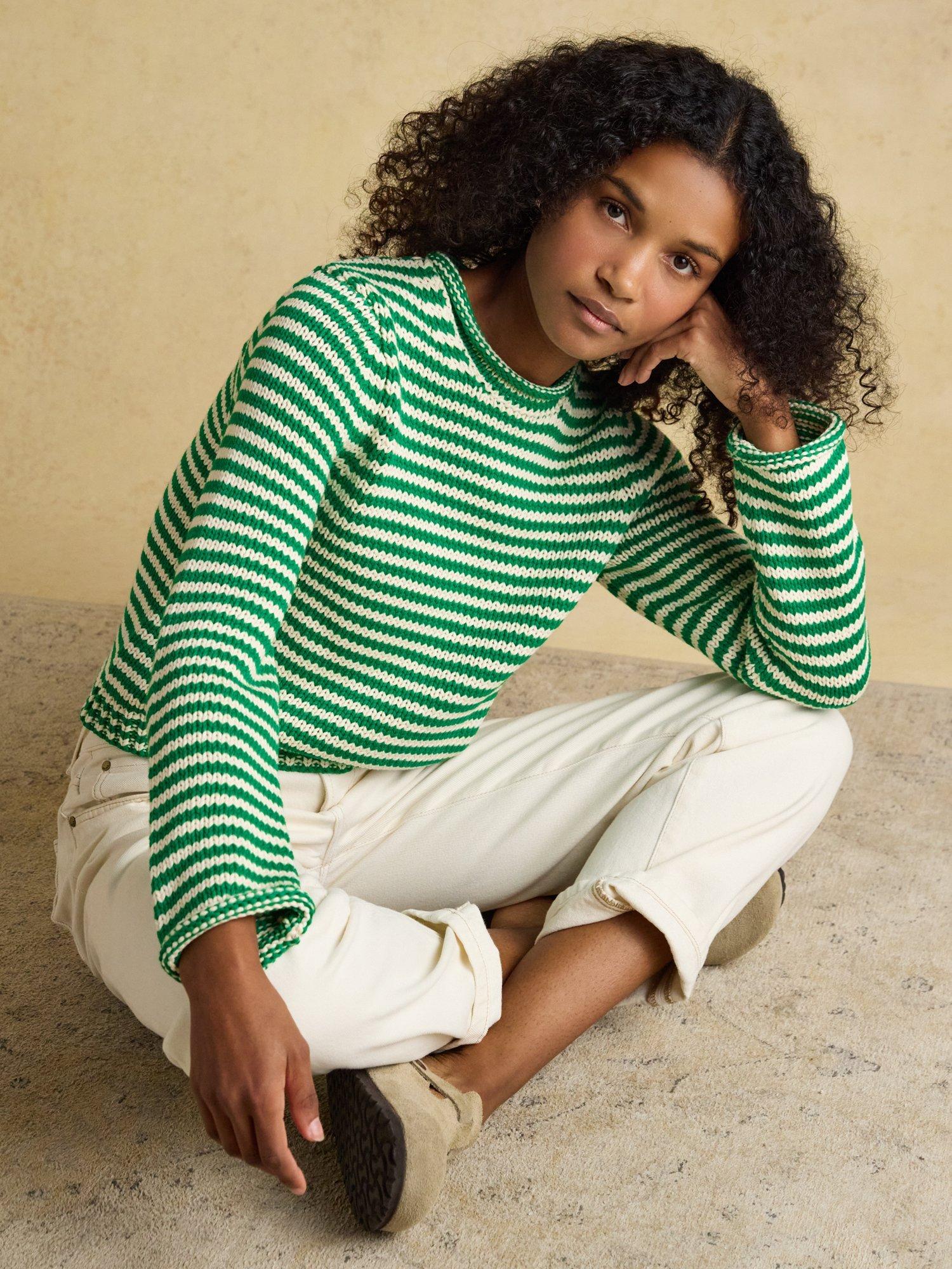 An easy-to-wear stripe knit that looks great with jeans and chinos now and shorts when the weather gets warmer. Can easily be layered over a blouse or slim fit top as well when you need extra warmth.