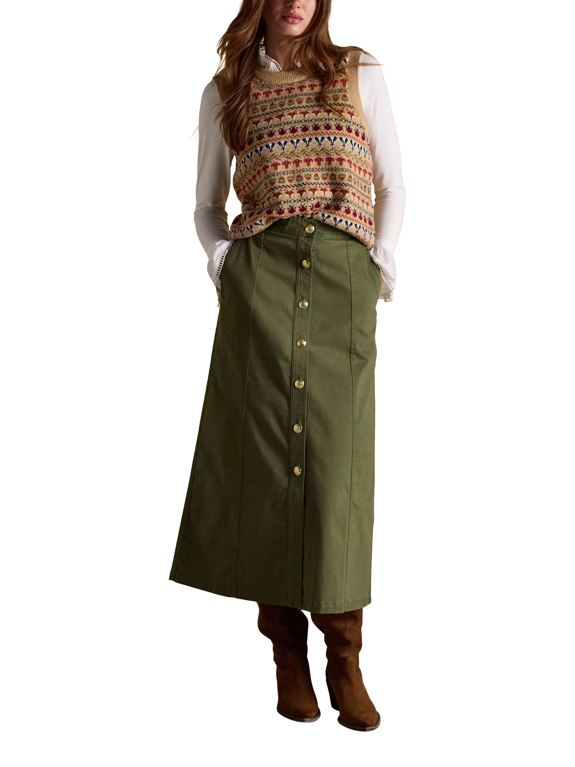 Crisp proportions in a midi cut - opt for this calf-grazing skirt from Joules. A-line in shape, it comes in a cotton blend and secures with a button fastening.