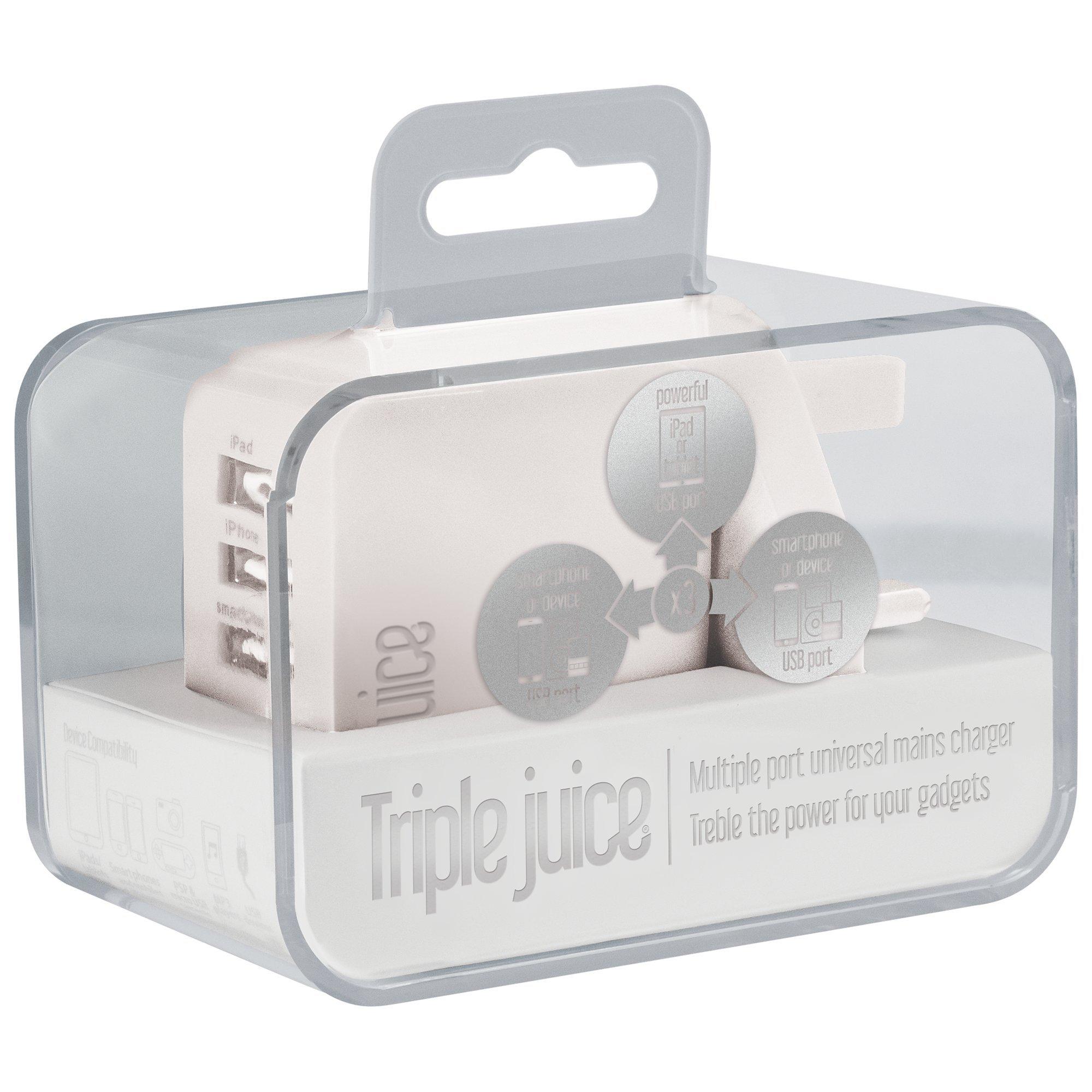 Save yourself time and charge all three of your portable devices at the same time with this Juice mains charger.