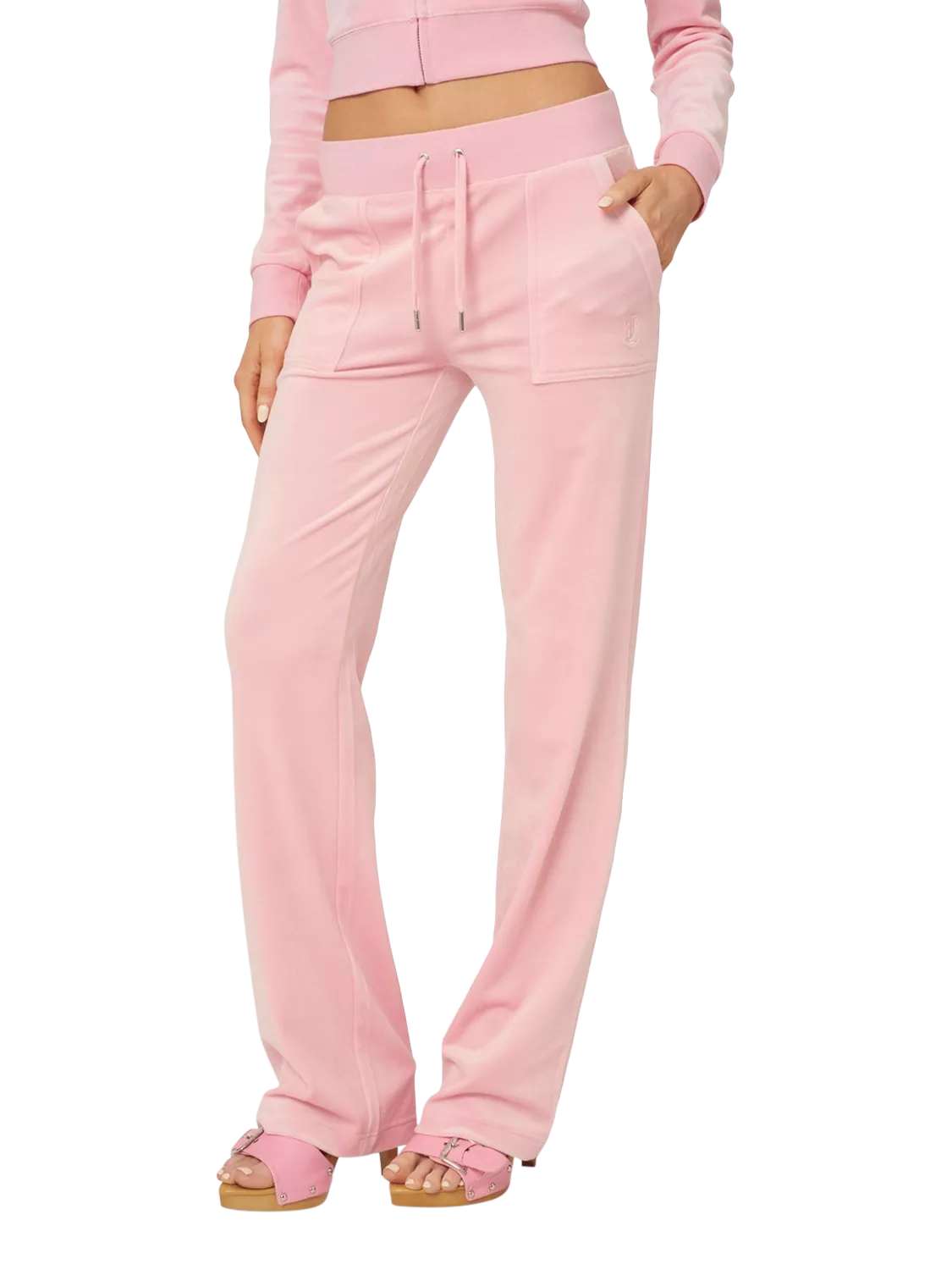 These mid-rise Juicy Couture tracksuit bottoms feel super soft against the skin. Designed for a slim fit to hug the curves, stay comfy all day long due to the adjustable drawstring ribbed waist. The front has two patch pockets, while the back features two popper fastening pockets with a metallic finish. A tonal logo is embroidered on the hip.
