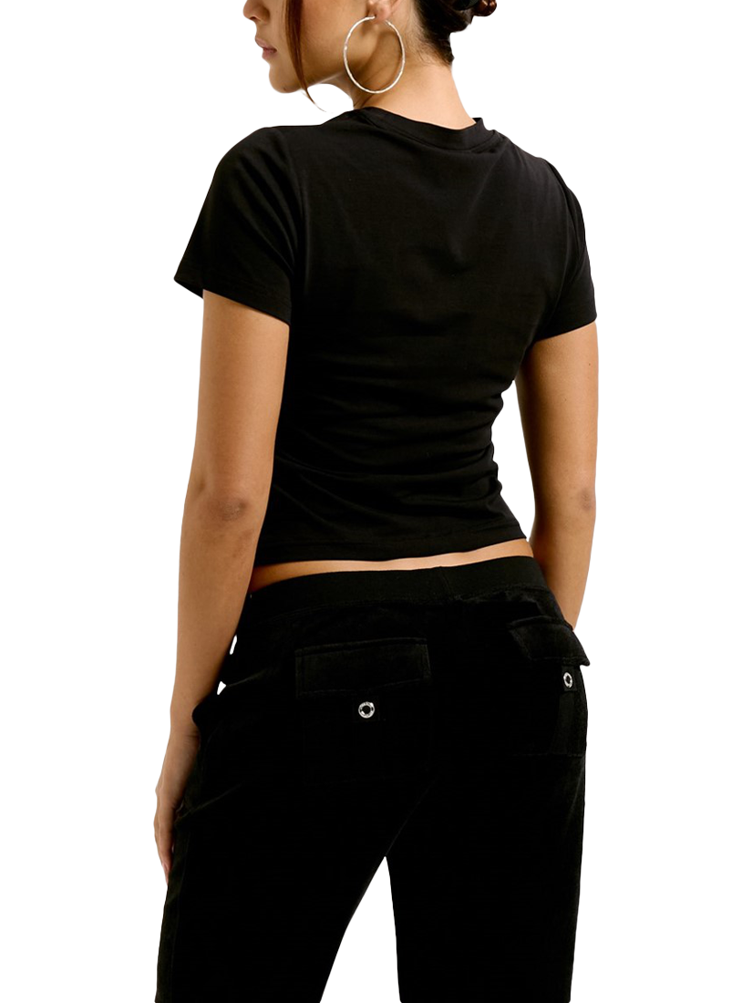 Fitted short sleeve top with a diamante impact juicy logo on the front.