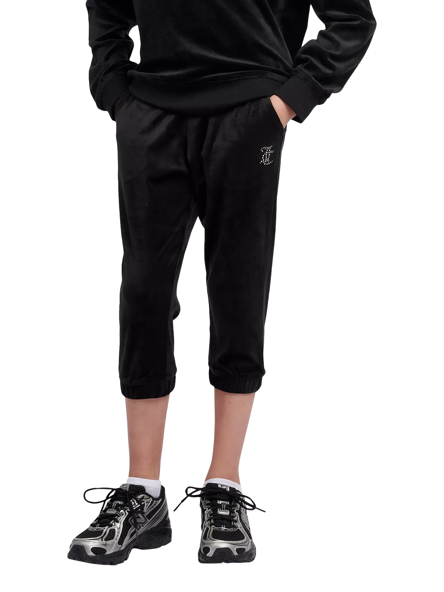 Upgrade their casual look with these Juicy Couture Capri Length Slim Joggers. Made from plush velour with sparkling diamante accents, they feature a flattering slim fit and mid-calf length. Perfect for layering with hoodies or T-shirts for a stylish, laid-back outfit.