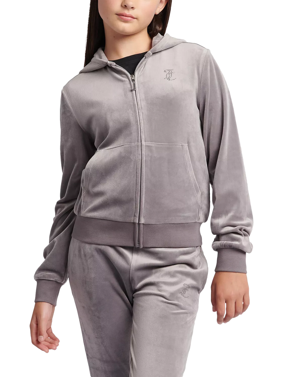 Elevating cool casuals, this Juicy Couture Diamante Zip-Through Hoodie adds a touch of glam to everyday dressing. Crafted from a super-soft velour, the signature silhouette offers comfort, with a hint of stretch for free and easy movement. Featuring rib trims, the J zip and kangaroo pouch are classic Juicy, but it's those dazzling diamante logos that steal the show. A lush layer for a signature look and style, rock it with the matching joggers for a head-to-toe fabulous look.