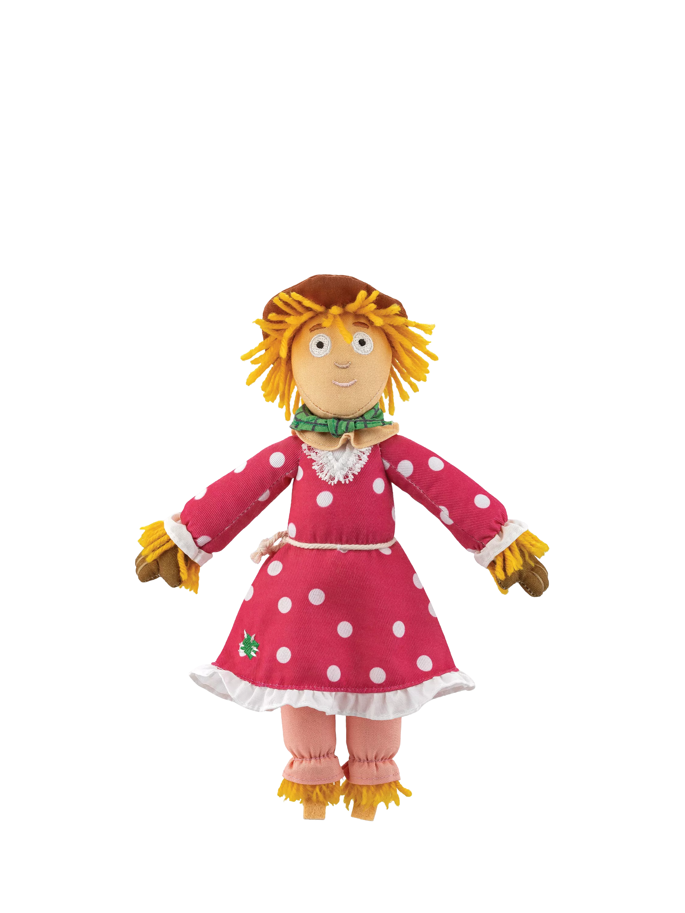 This soft toy is dressed in Betty O'Barley's signature pink polka-dot dress, complete with a brown hat and a charming green scarf. Every detail has been carefully considered to reflect her endearing character, making this soft toy a truly magical companion for storytelling and imaginative play.