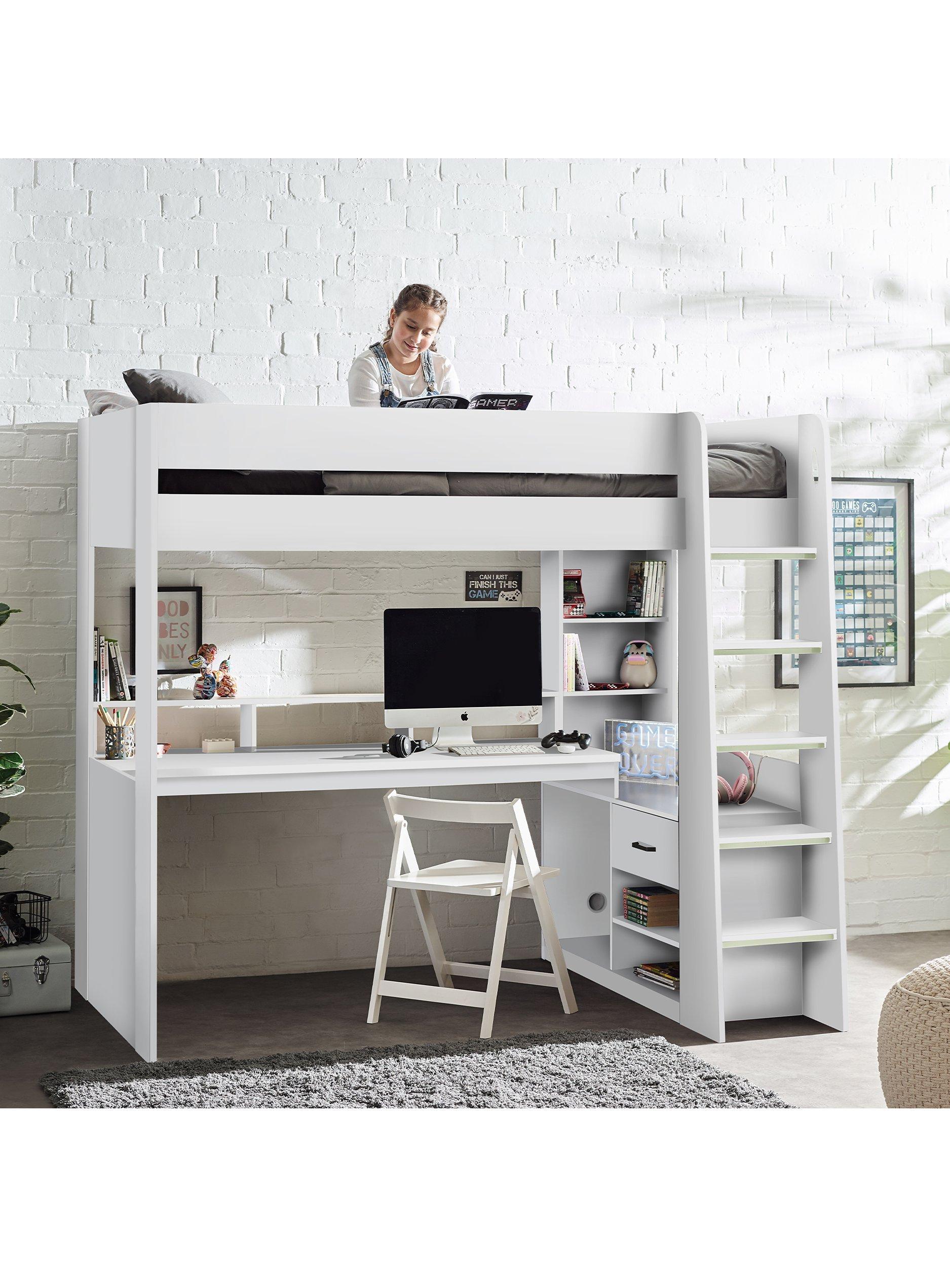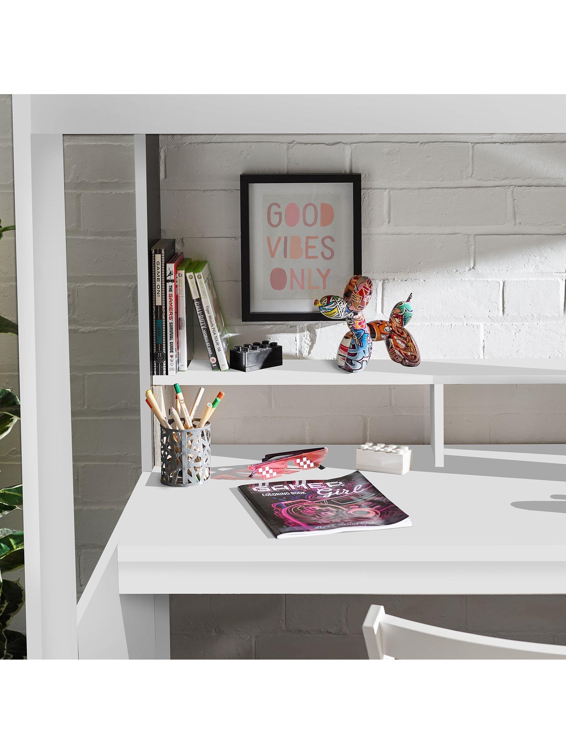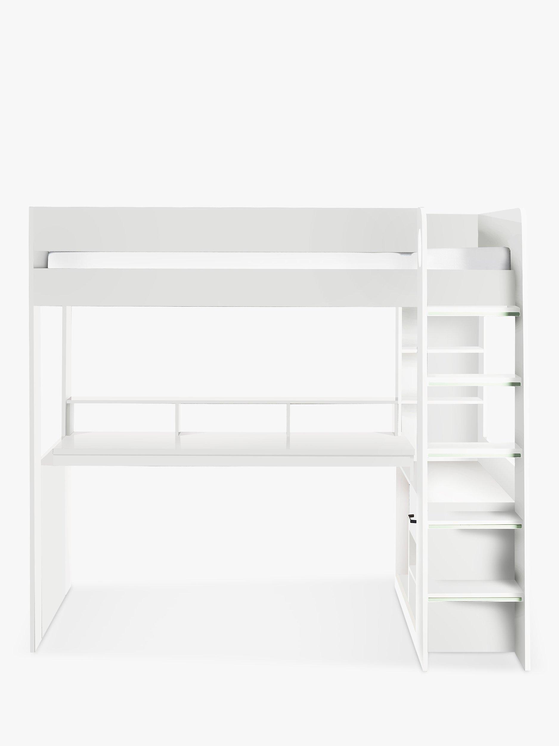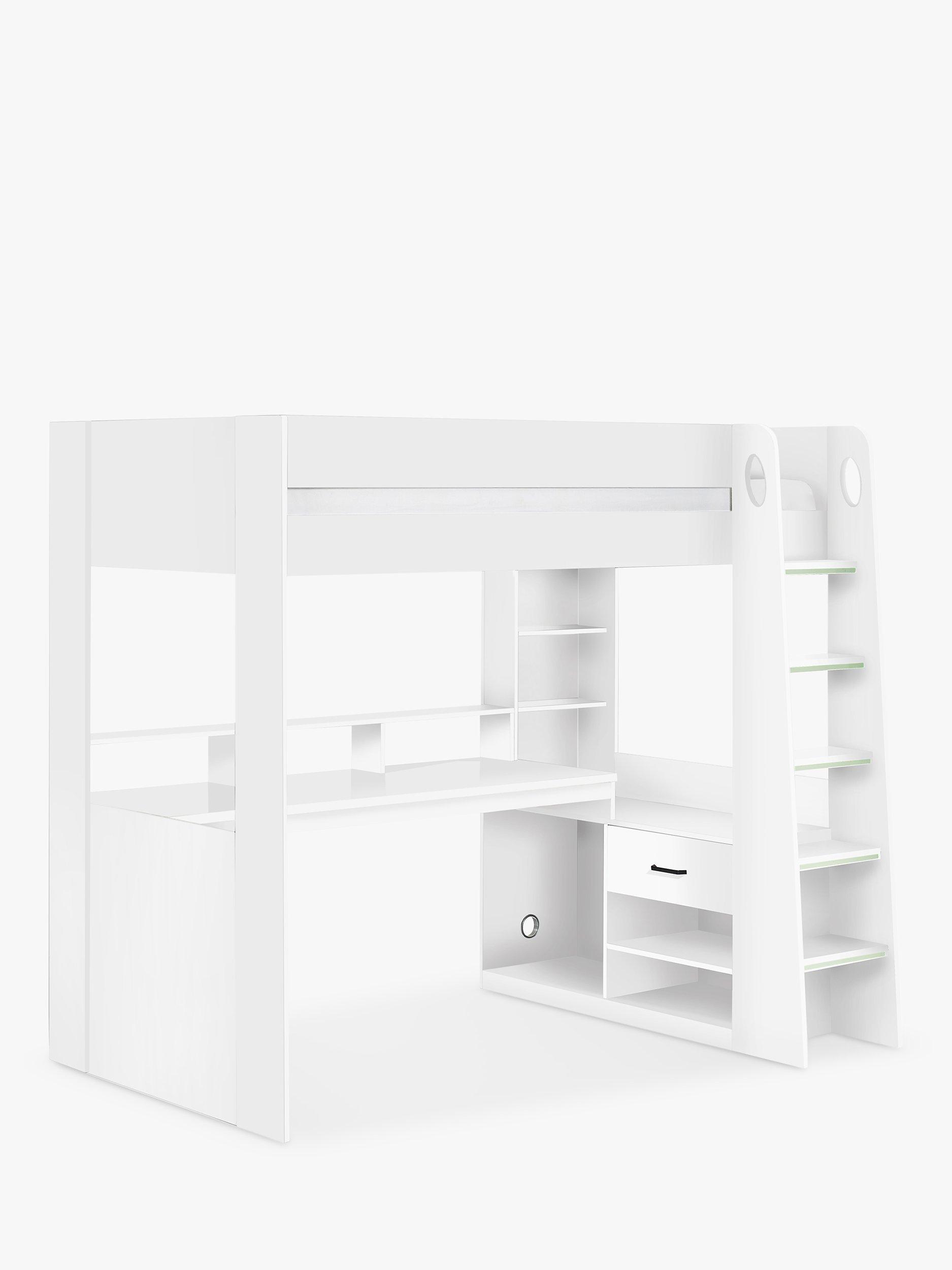 The Blaze Gaming Bunk is specially designed with gamers in mind. It provides the ideal functionality with built-in shelving and drawers for storing gaming equipment, stationary, and all the essentials close to hand. The ultimate wide-span desk and raised platforms are perfect for gaming monitors while the stunning wide glow-in-dark steps ensure a firm footing when climbing to the elevated bed.