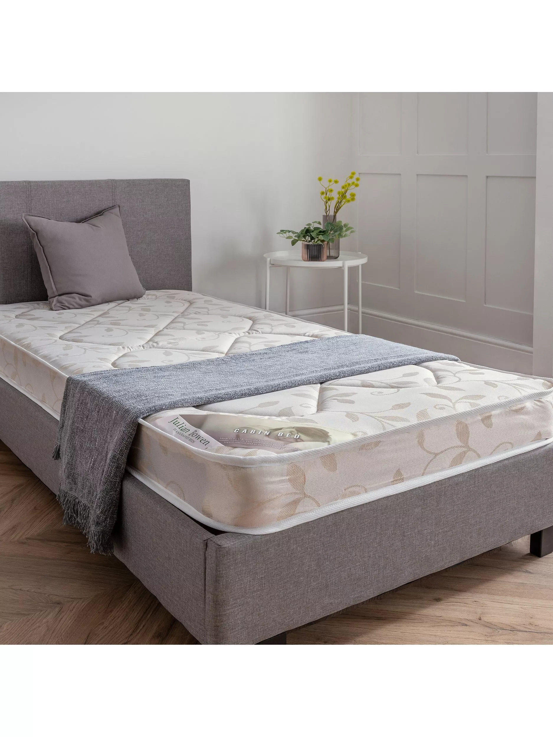 This stitch quilted mattress has a low profile 13.5 gauge Bonnell spring unit for use on cabin beds or bunk beds where height restrictions apply for safety reasons. Finished with an oyster damask ticking the Julian Bowen cabin bed mattress offers a great level of comfort for an affordable price.