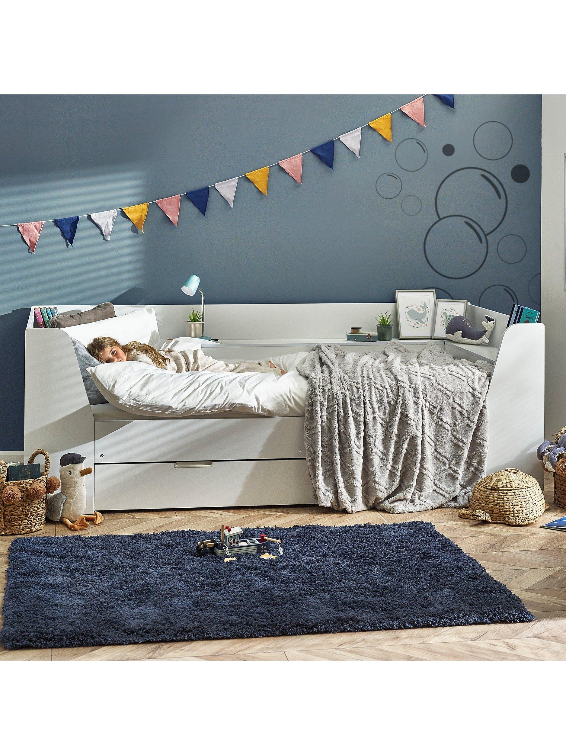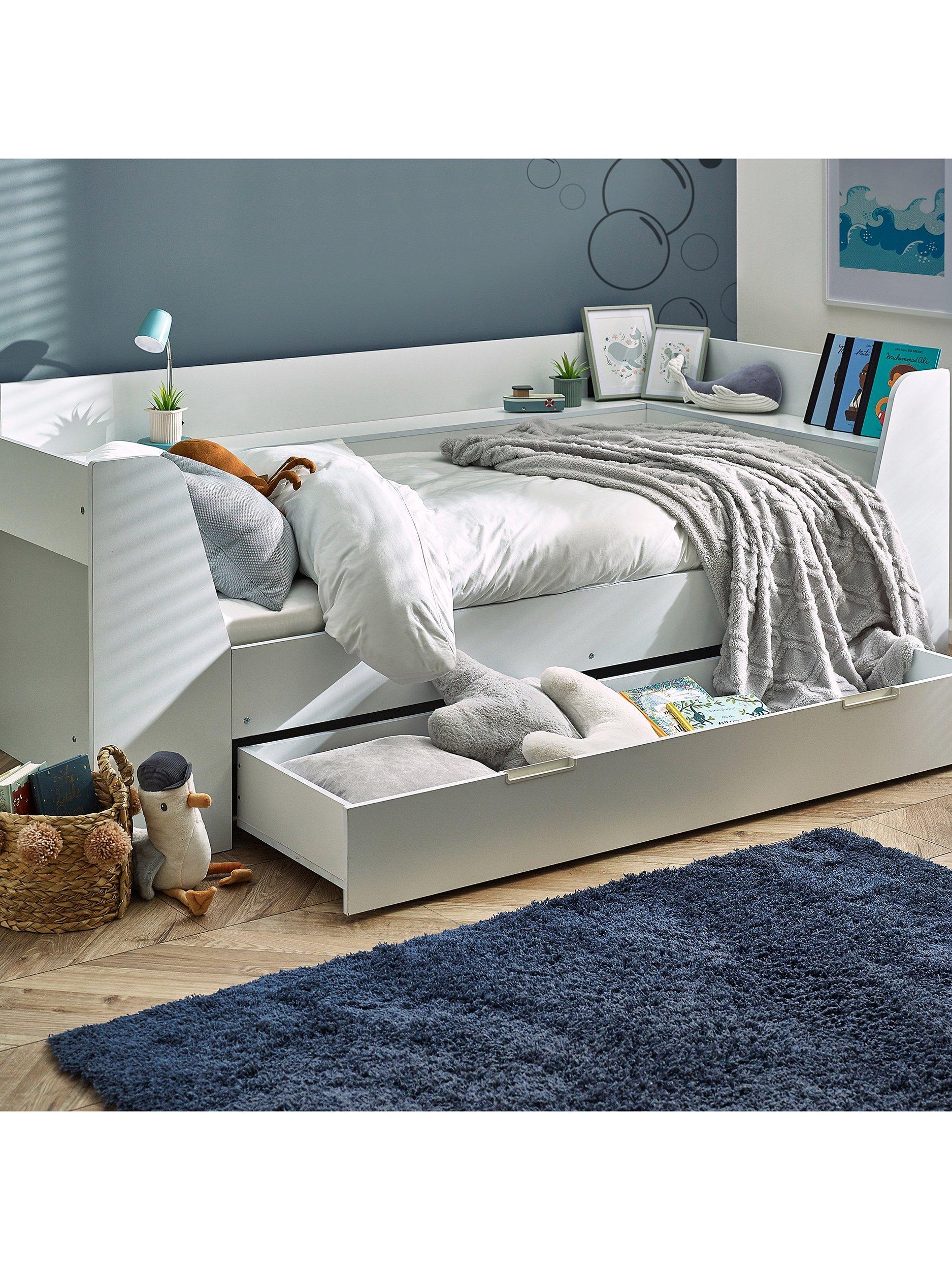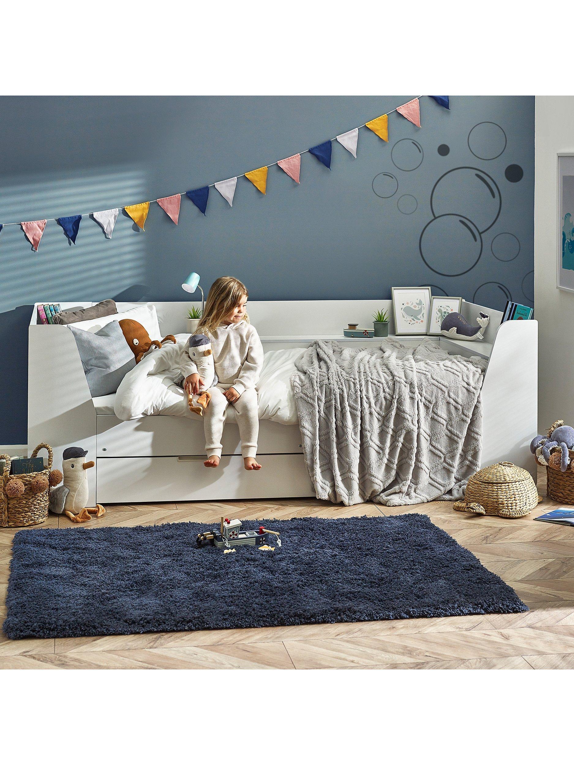 Offering a modern look, the Cyclone Daybed provides the perfect blend of style and functionality to any kid's bedroom. Featuring a large pull-out drawer with two embedded handles, it also boasts a shelving unit on the top ideal for storing and organising key essentials thus creating the perfect blend of versatility and style for your little ones to lounge or sleep in.