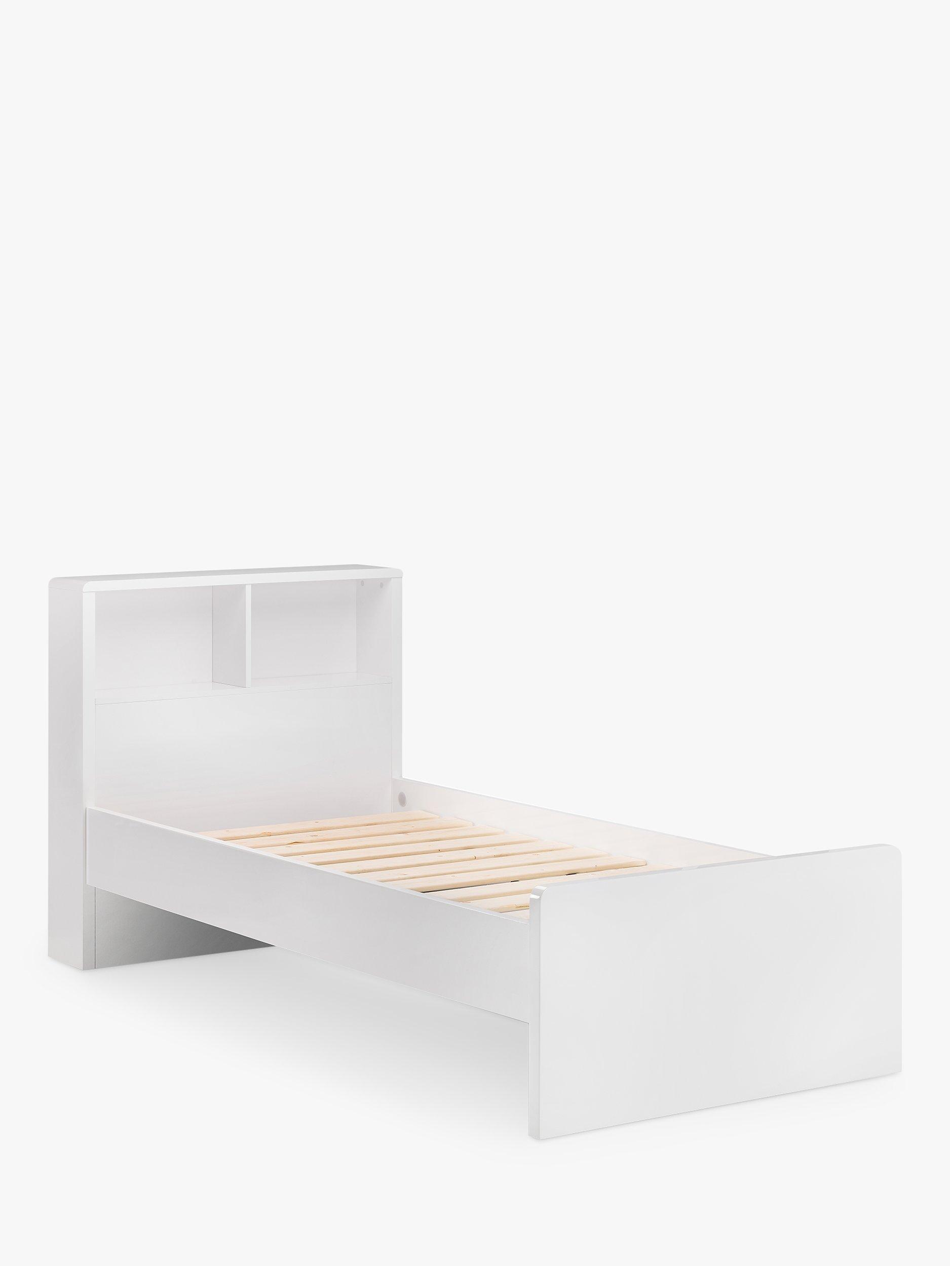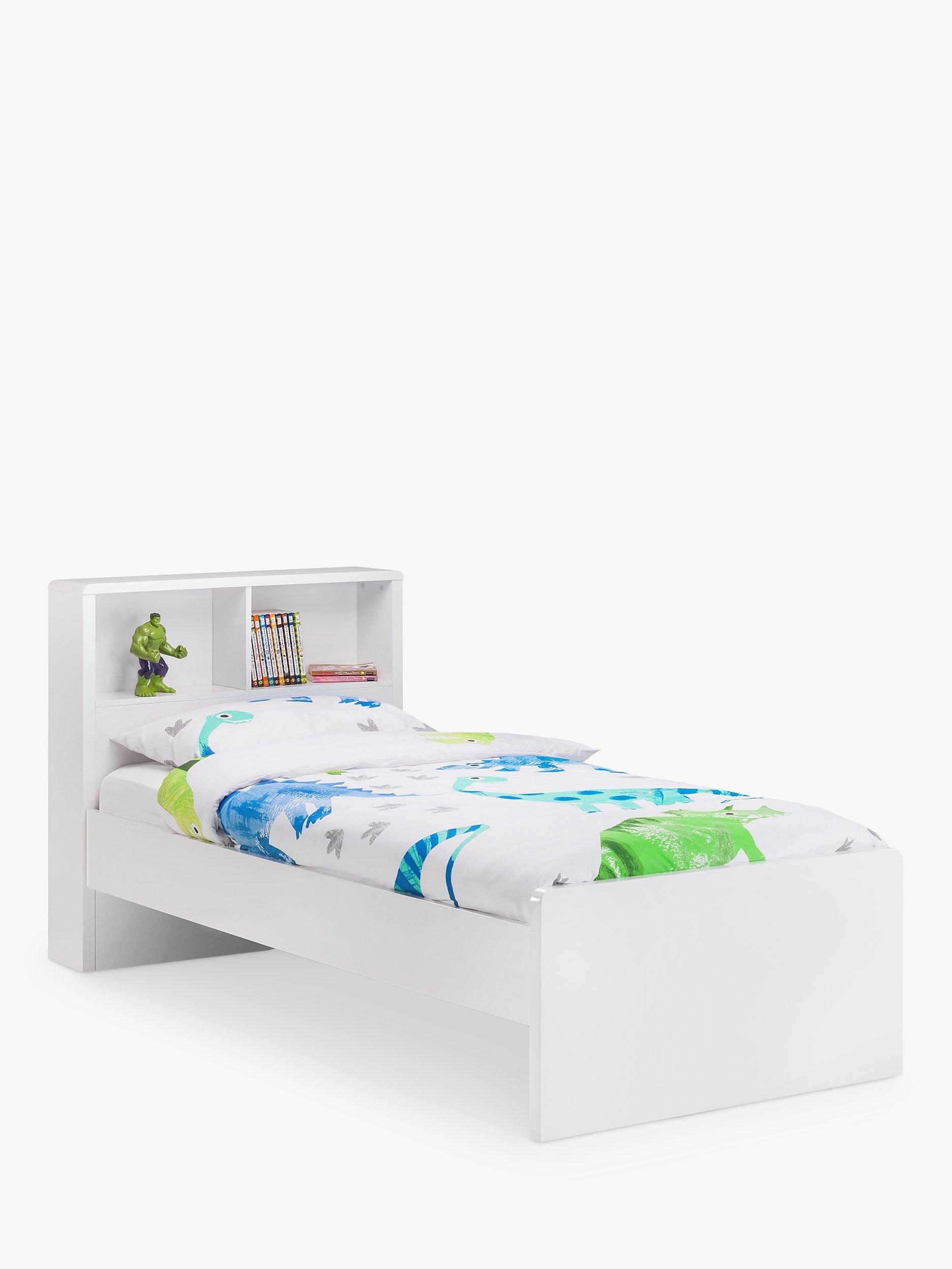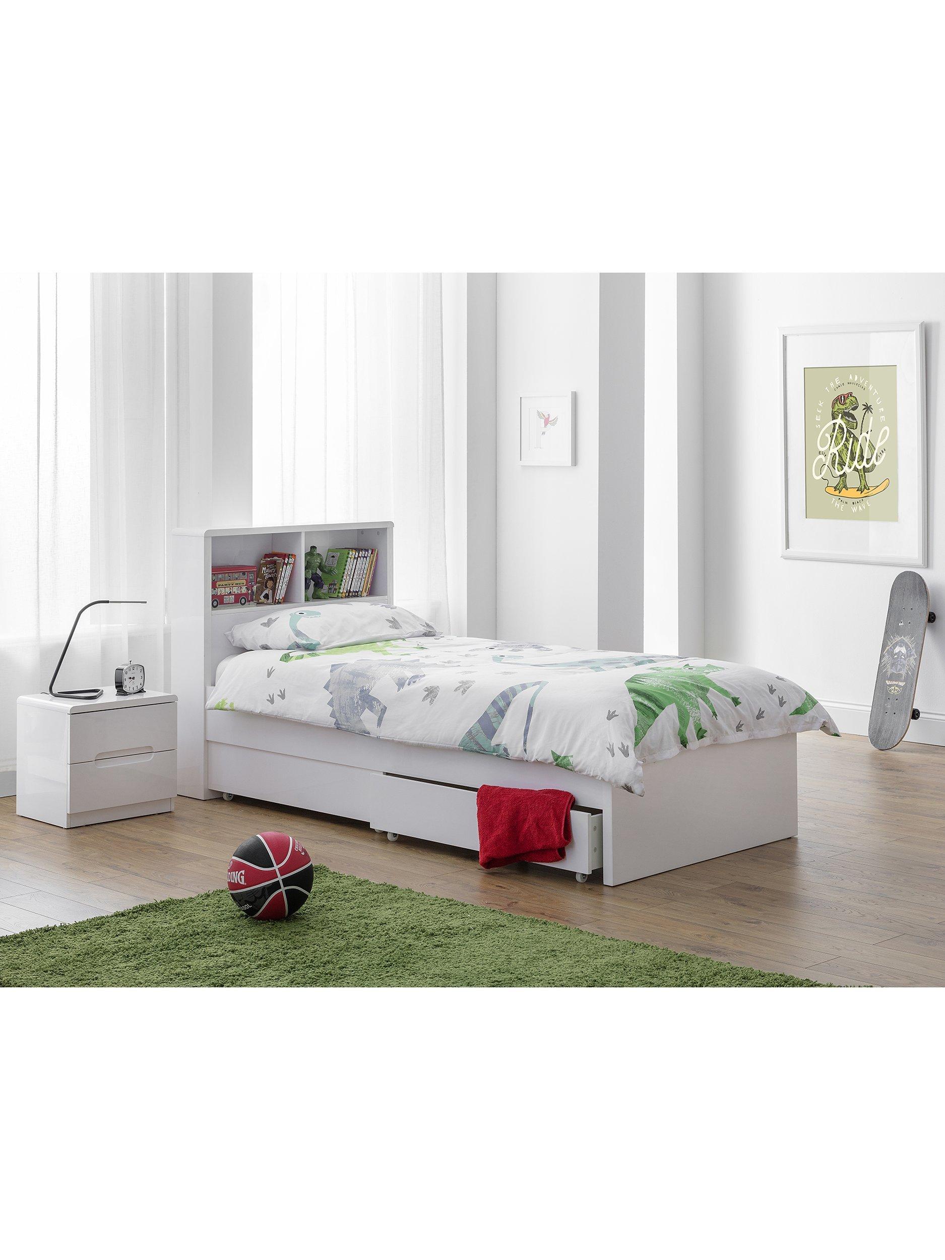 Make the most of their space with this Emma Bookcase Bed from Julian Bowen. The bed features two additional shelves within the high headboard, perfect for storing books and toys. Finished in a modern high gloss, this bookcase bed offers a clean, crisp finish, enhancing the sense of space through light reflections.