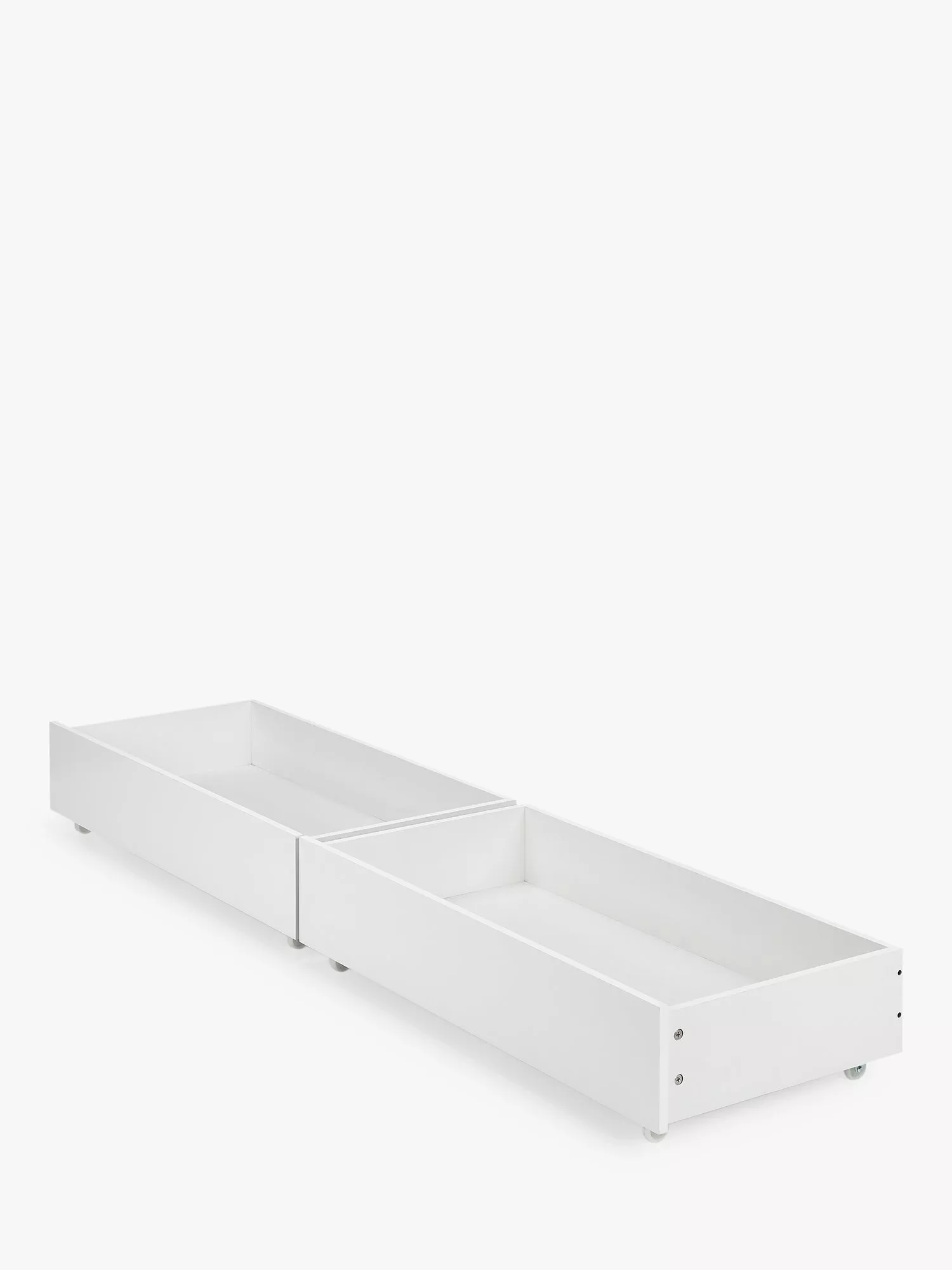 The Set of 2 Emma Underbed Drawers are available for extra storage for the Manhattan Bookcase Bed from Julian Bowen. Finished in a high gloss, these drawers are on casters that can be pulled out at ease.