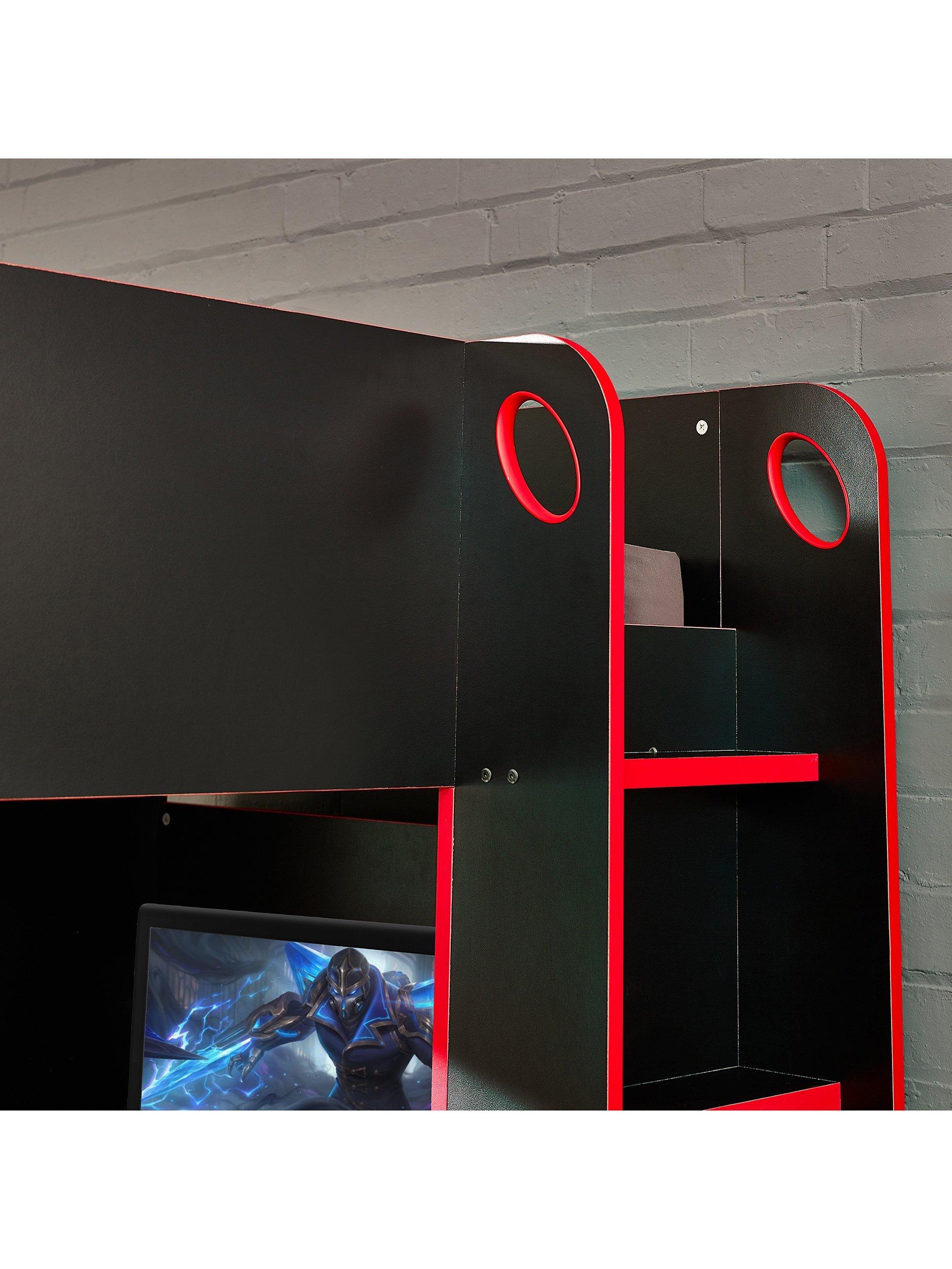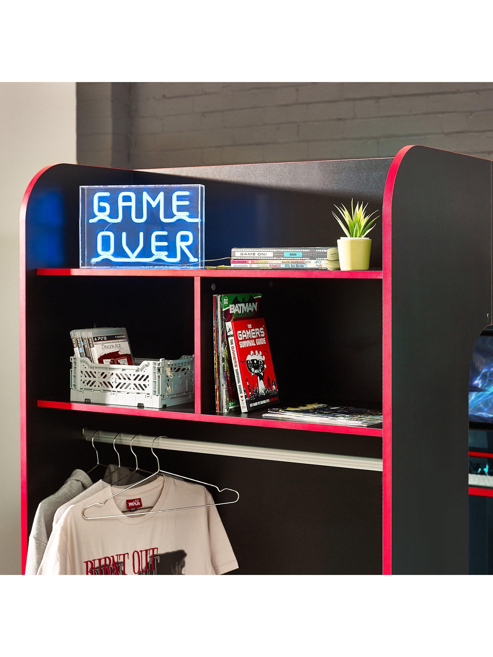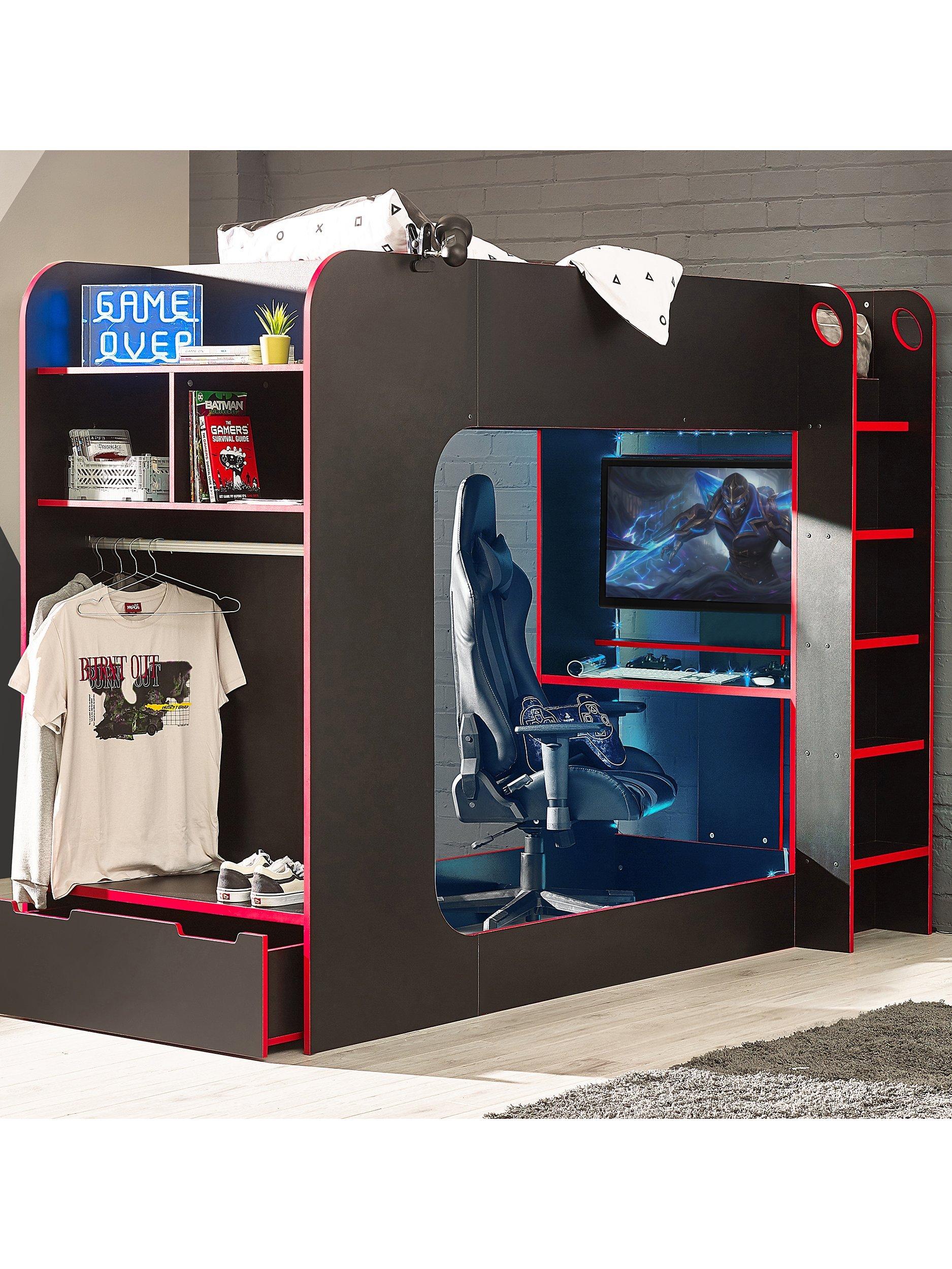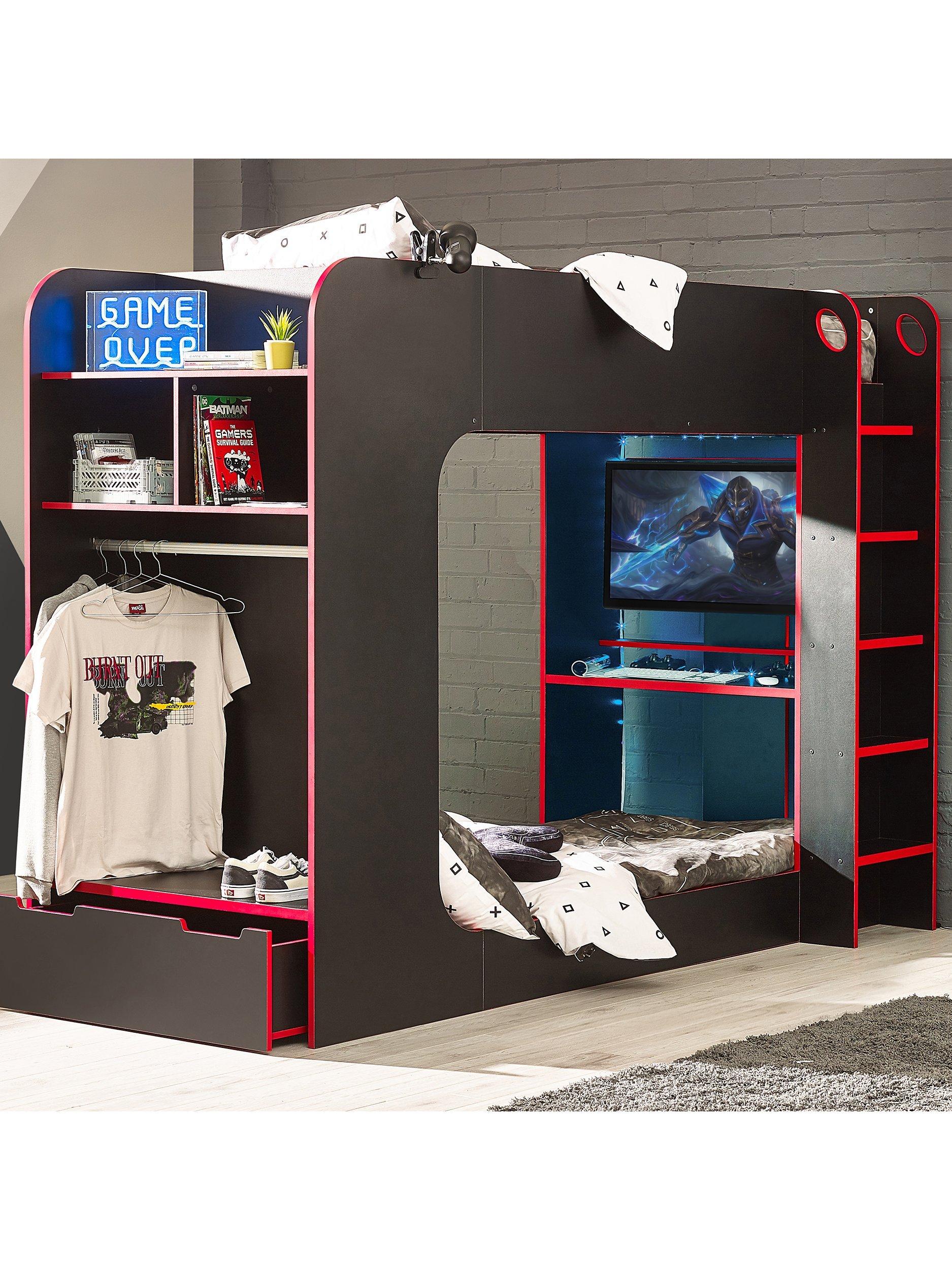 The Impact Gaming Bunk provides the perfect set-up for gamers, with a large underbed space and desk for a monitor. Featuring a hanging rail and multiple storage areas, this modern gaming bed provides the ideal space to sleep, play and stream.