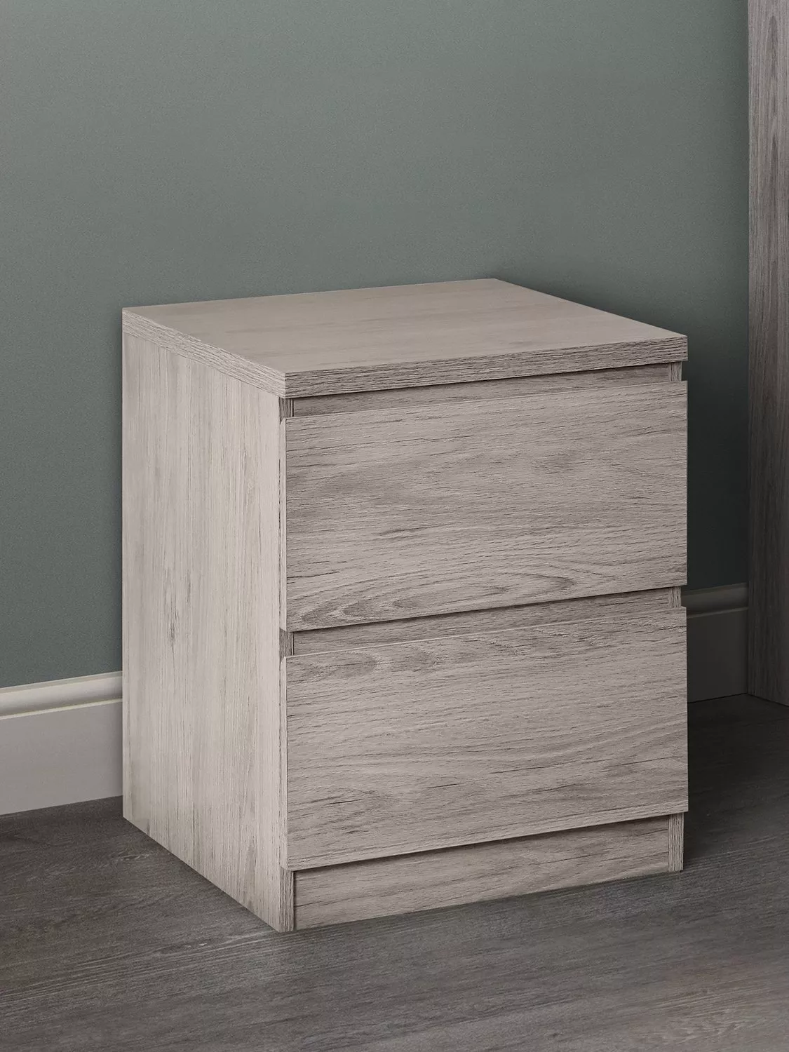 The Jupiter Grey Oak bedroom collection is suitable for a wide range of modern bedrooms. The sleek, contemporary design features a modern grey oak effect frame. The Jupiter 2 drawer bedside table provides ample space for your bedside essentials.