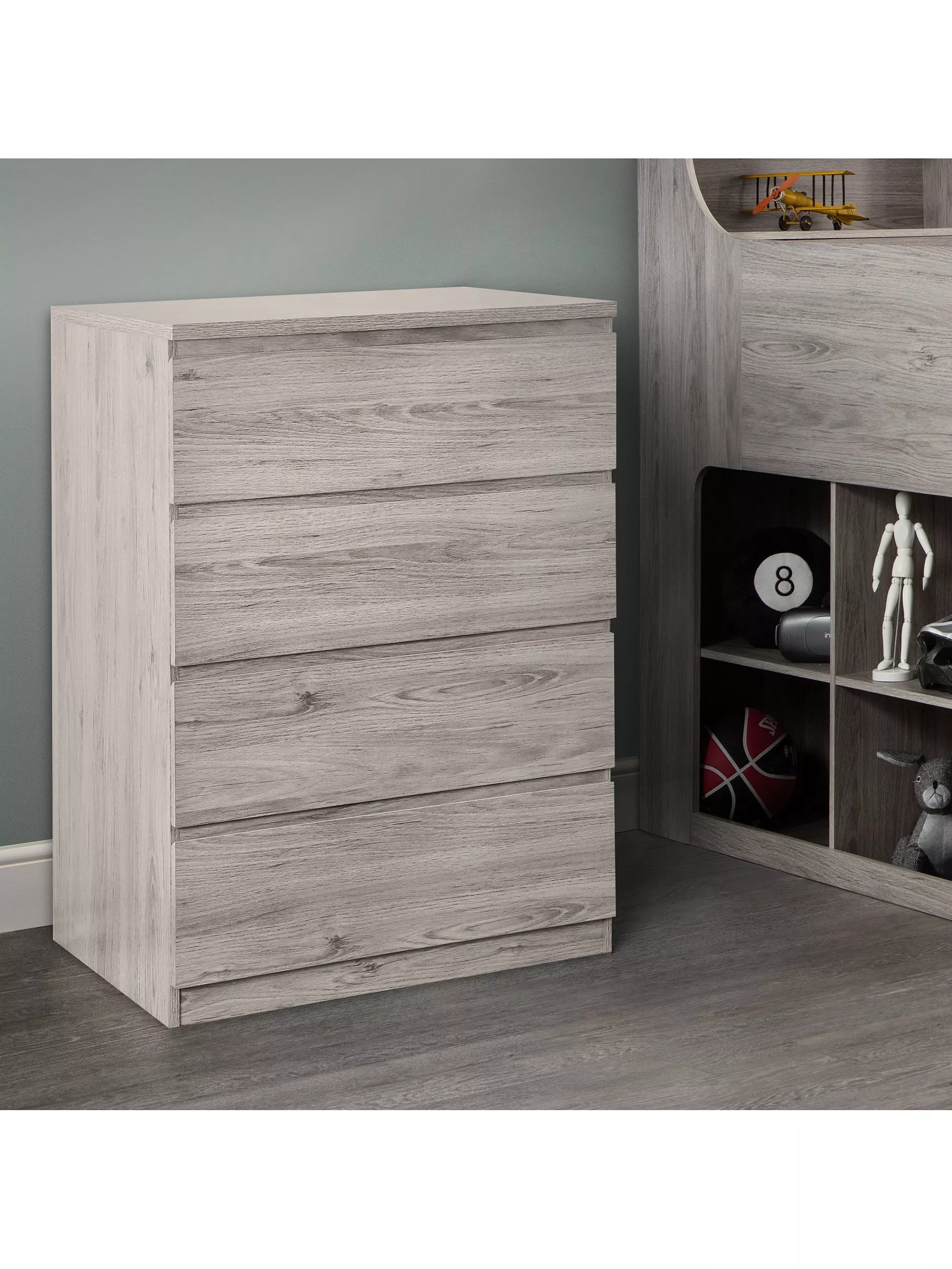 The Jupiter Grey Oak bedroom collection is suitable for a wide range of modern bedrooms. The sleek, contemporary design features a modern grey oak effect frame. The Jupiter 4 drawer chest provides ample room to keep your clothes tidy.