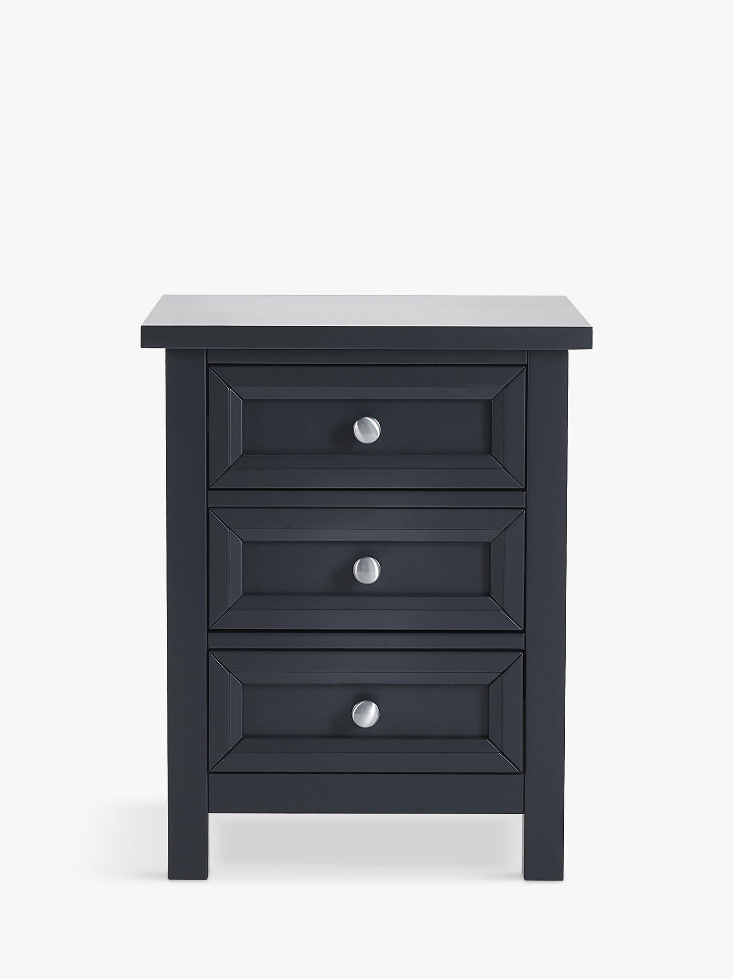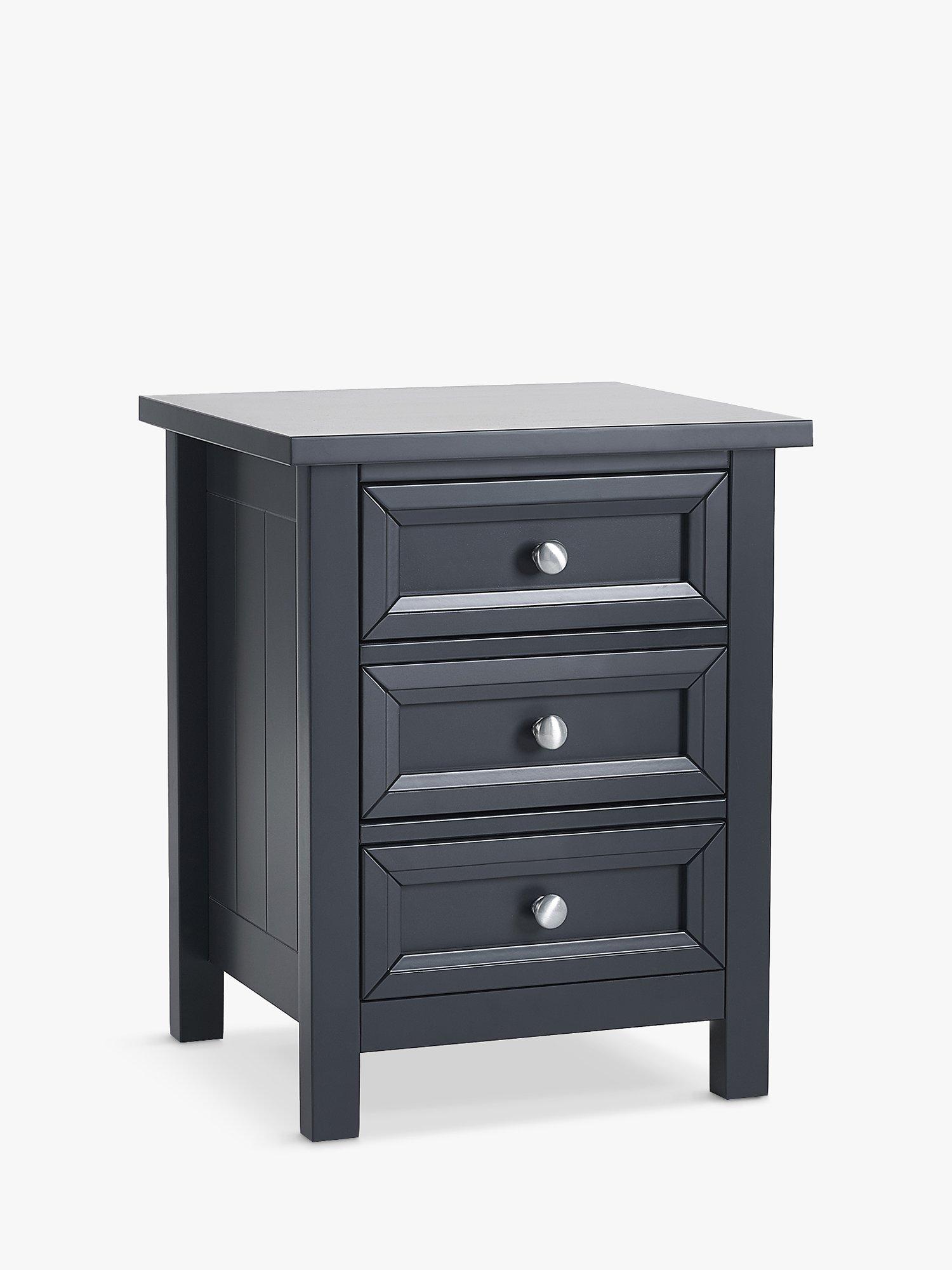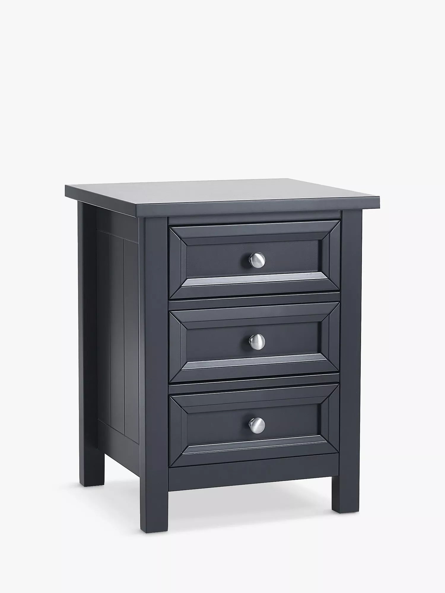 Maine is an elegant New England style range of bedroom furniture. The combination of exquisite surf white painted finish with characteristic side panelling and detailed chamfered cabinetry makes for a soothing and refined aesthetic with timeless appeal, while delicate pewter handles add the perfect finishing touch. The Maine 3 drawer bedside table provides ample space for your bedside essentials.