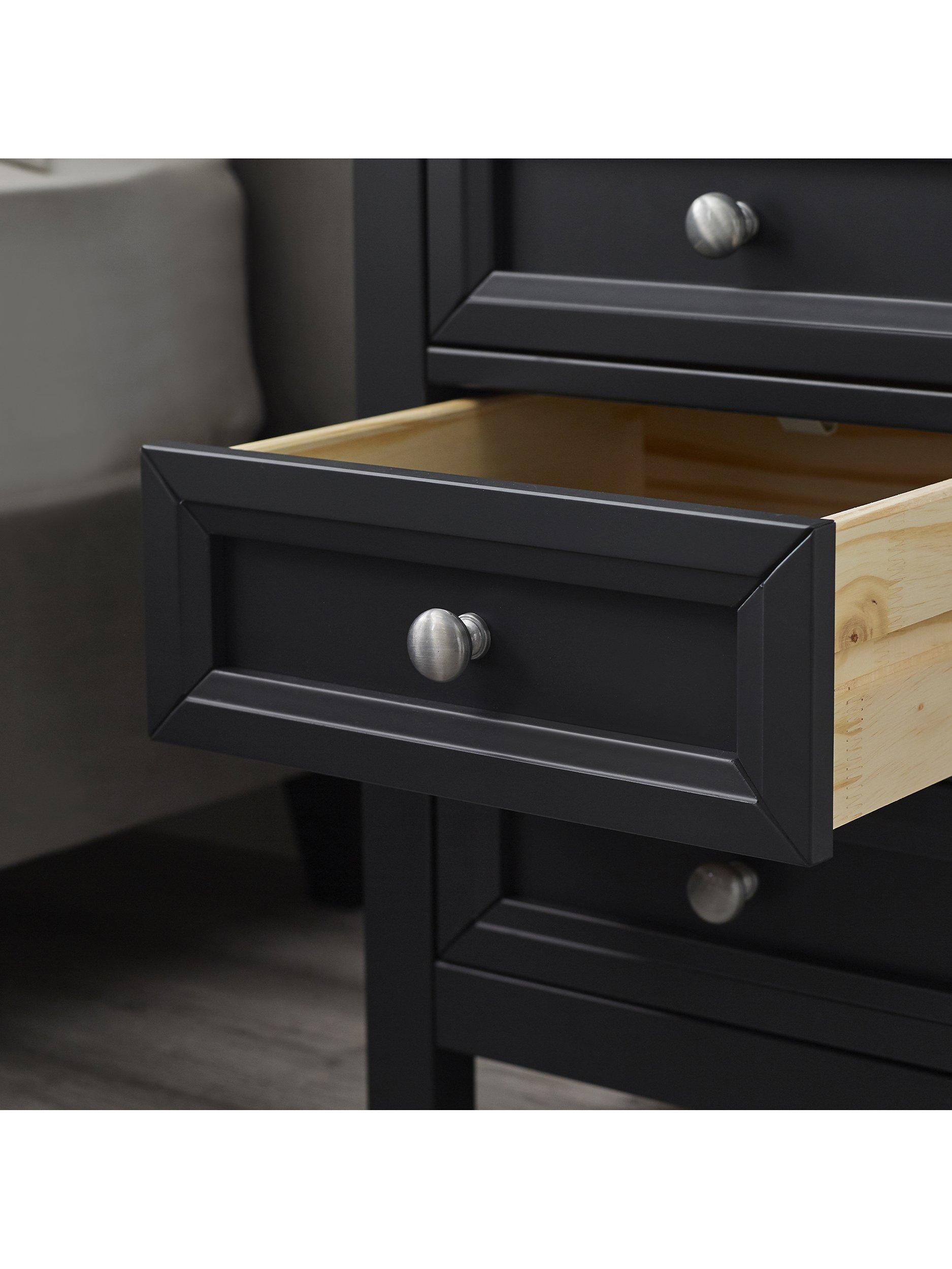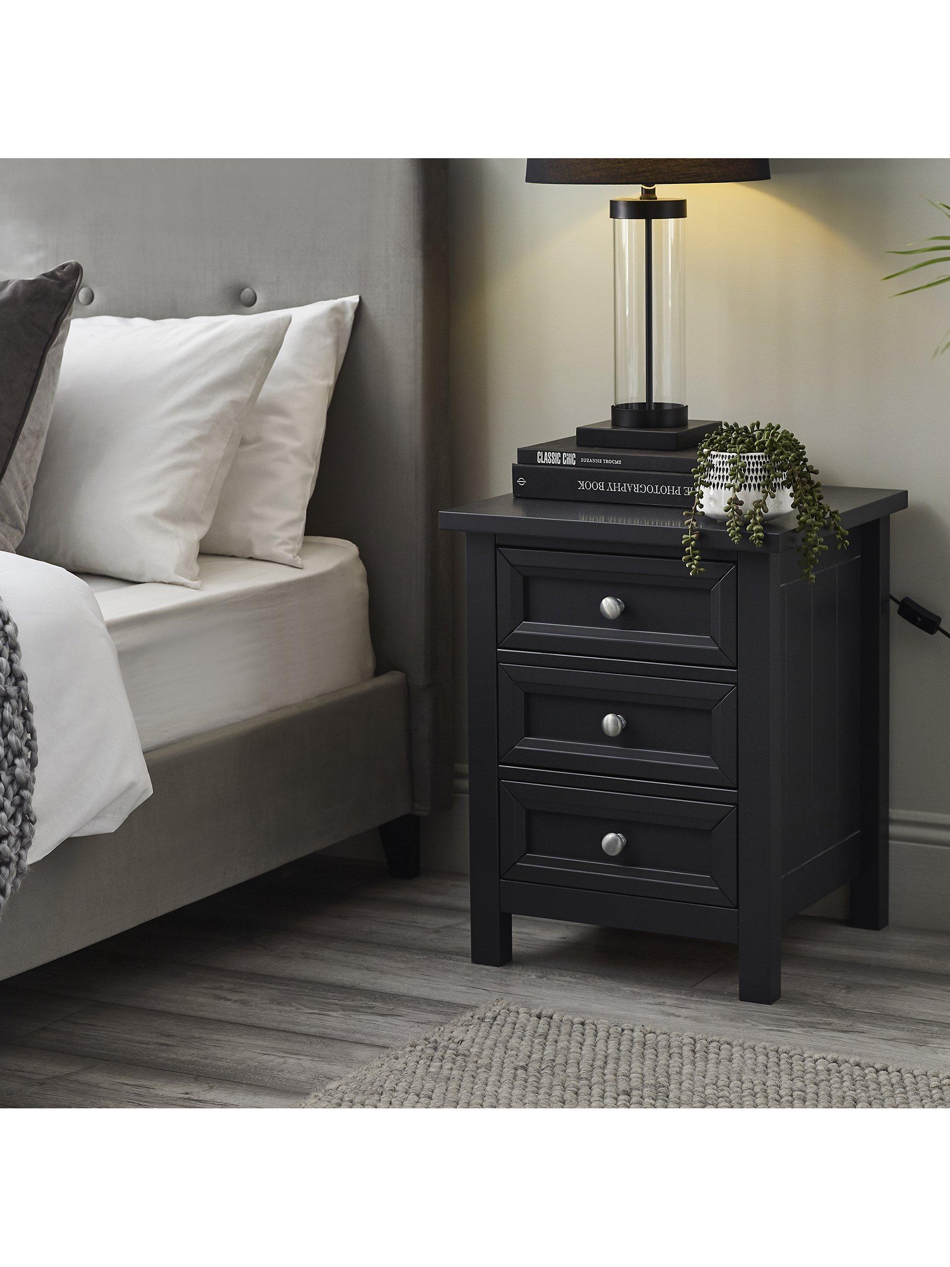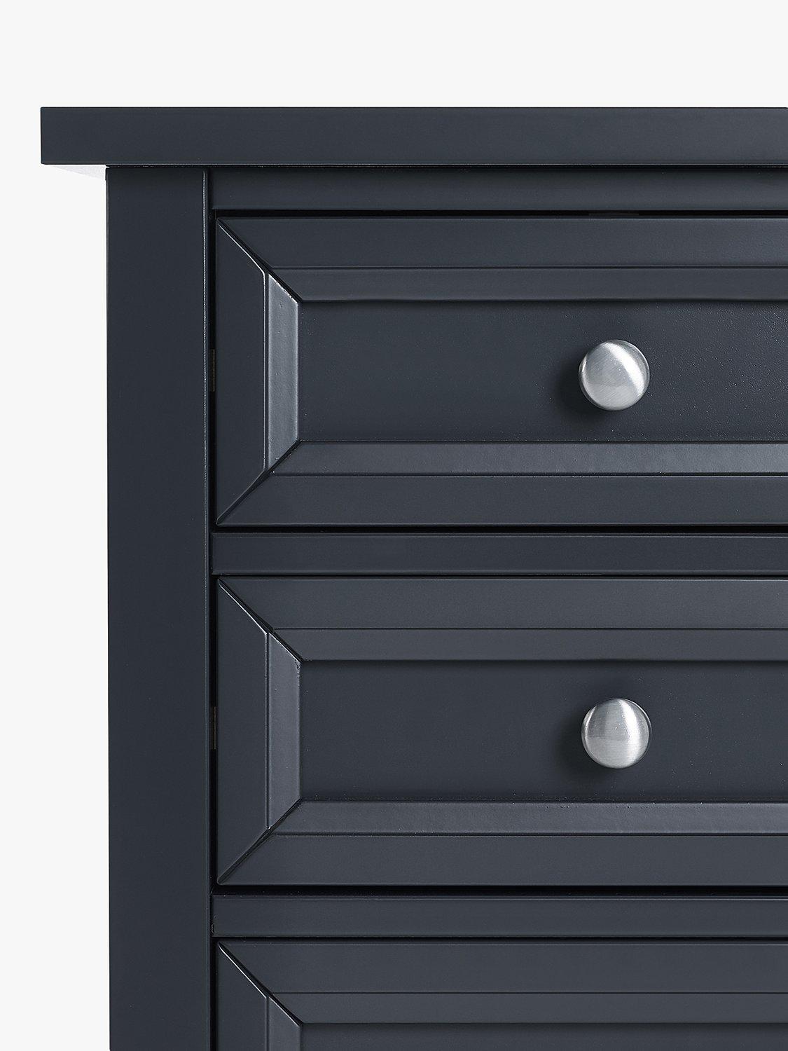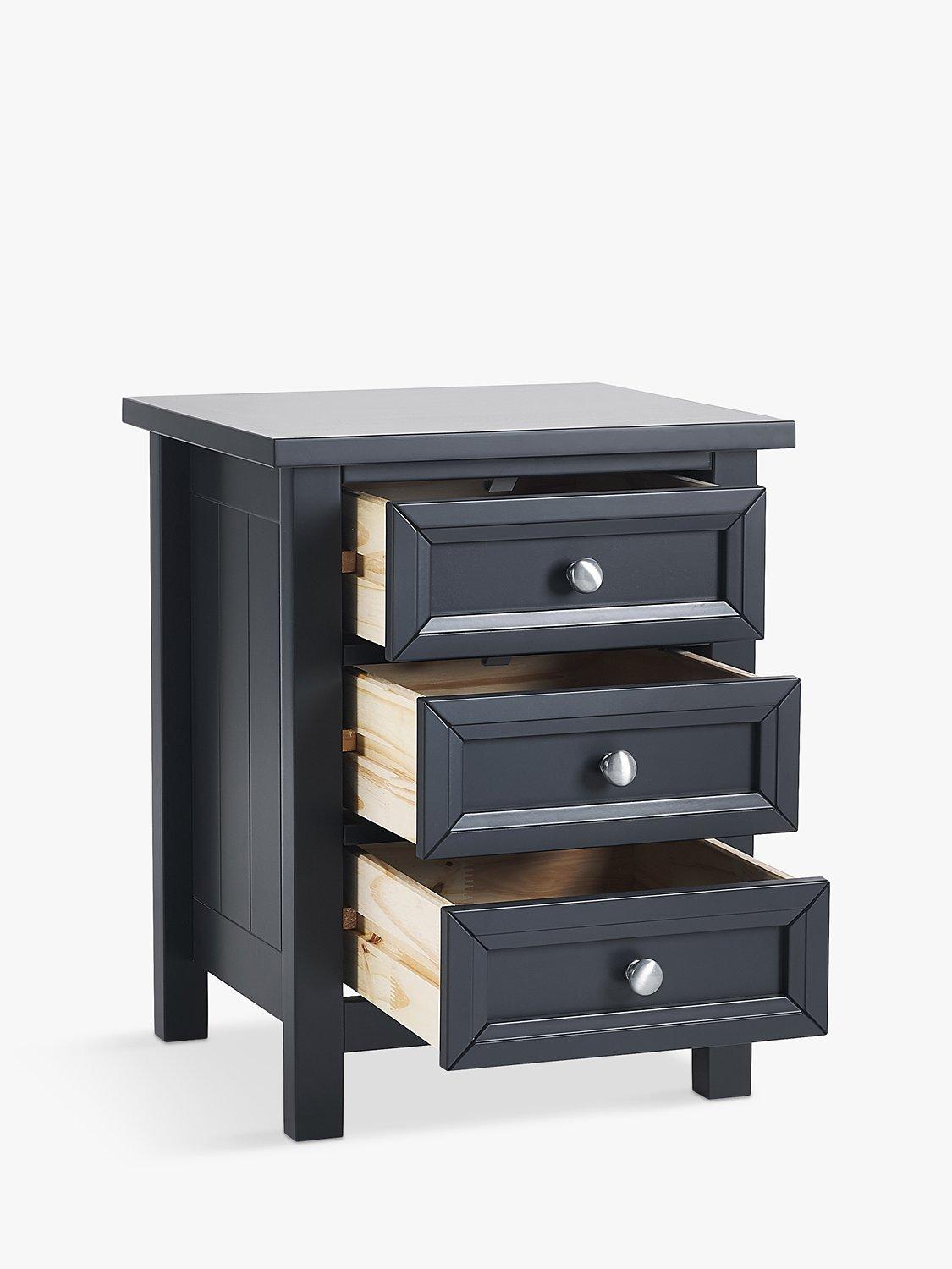 Maine is an elegant New England style range of bedroom furniture. The combination of exquisite surf white painted finish with characteristic side panelling and detailed chamfered cabinetry makes for a soothing and refined aesthetic with timeless appeal, while delicate pewter handles add the perfect finishing touch. The Maine 3 drawer bedside table provides ample space for your bedside essentials.