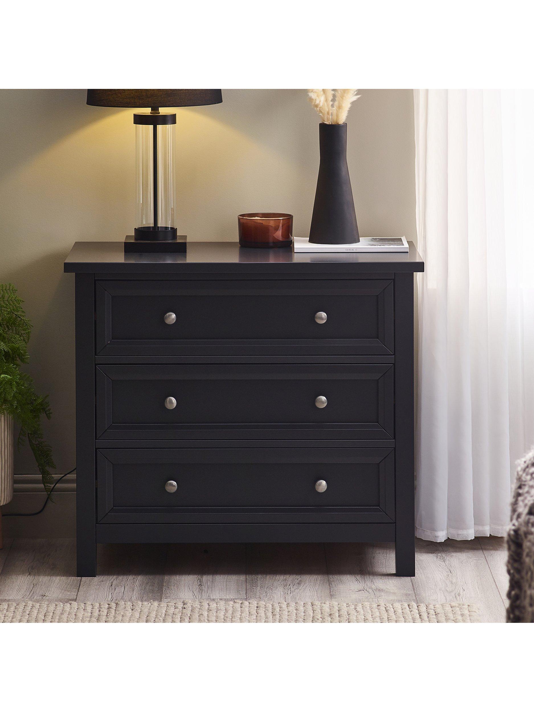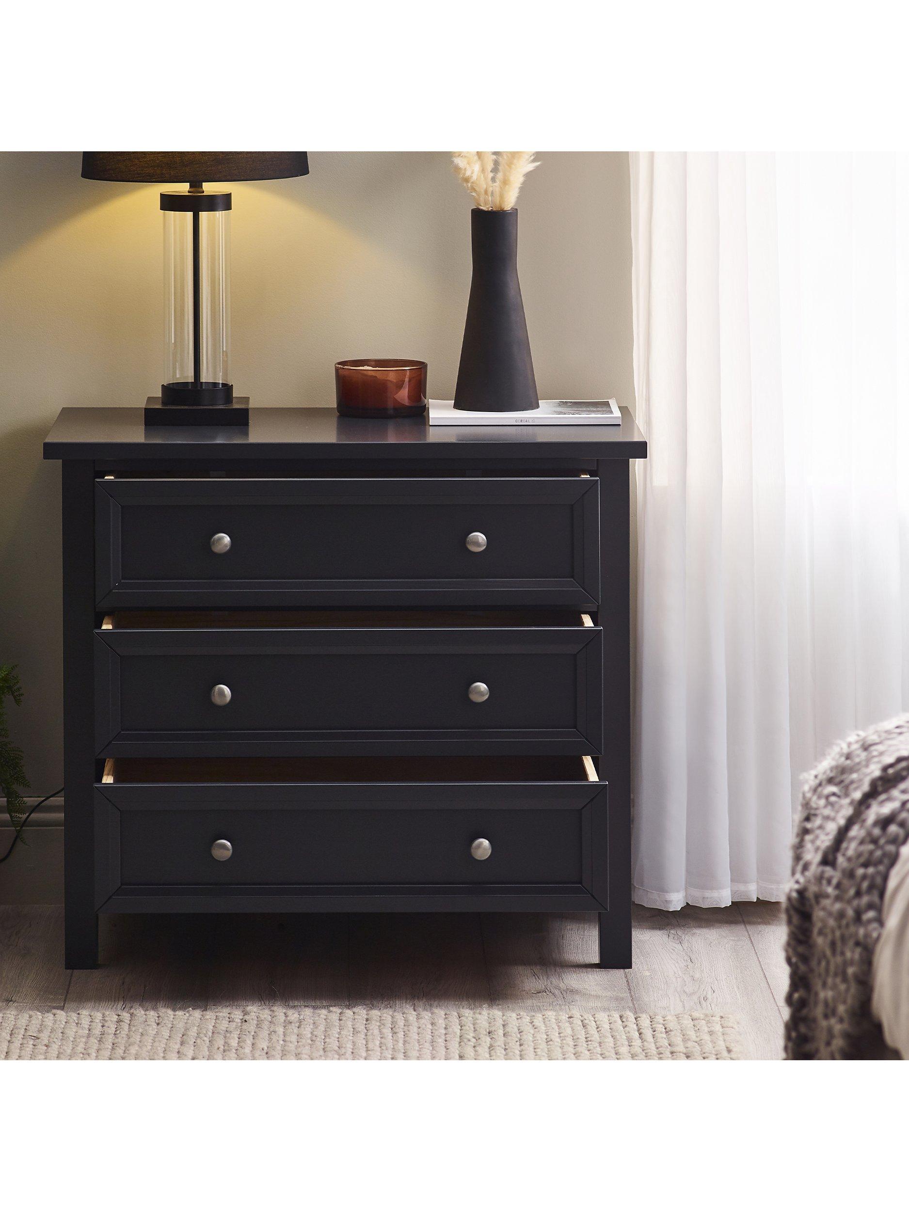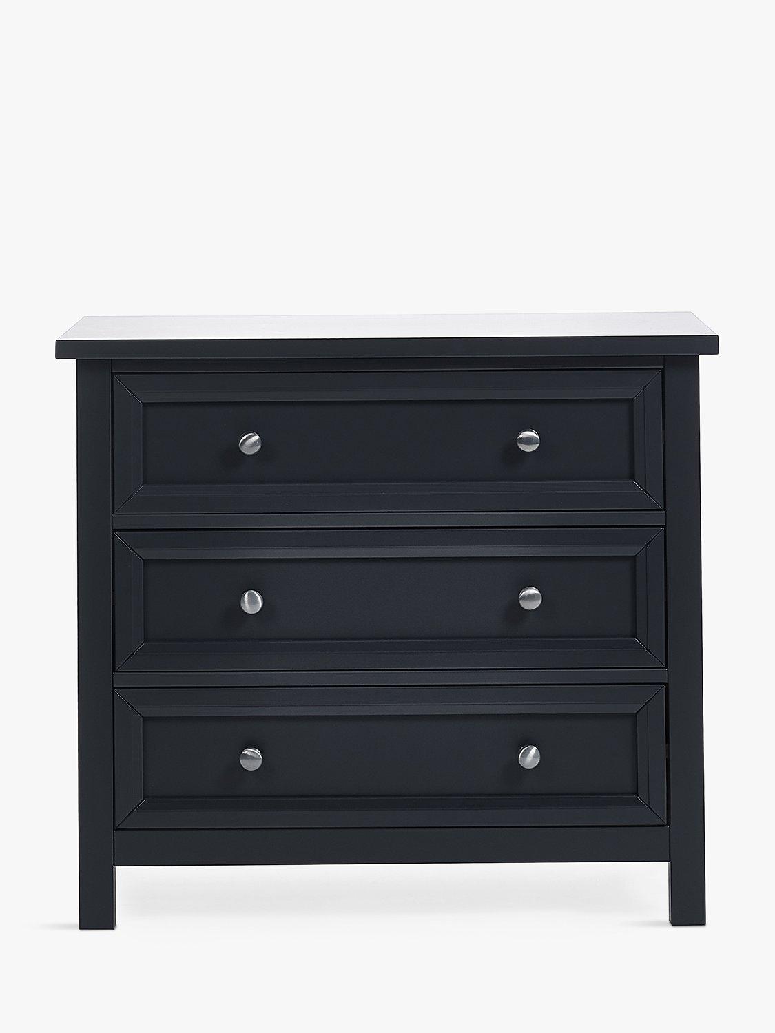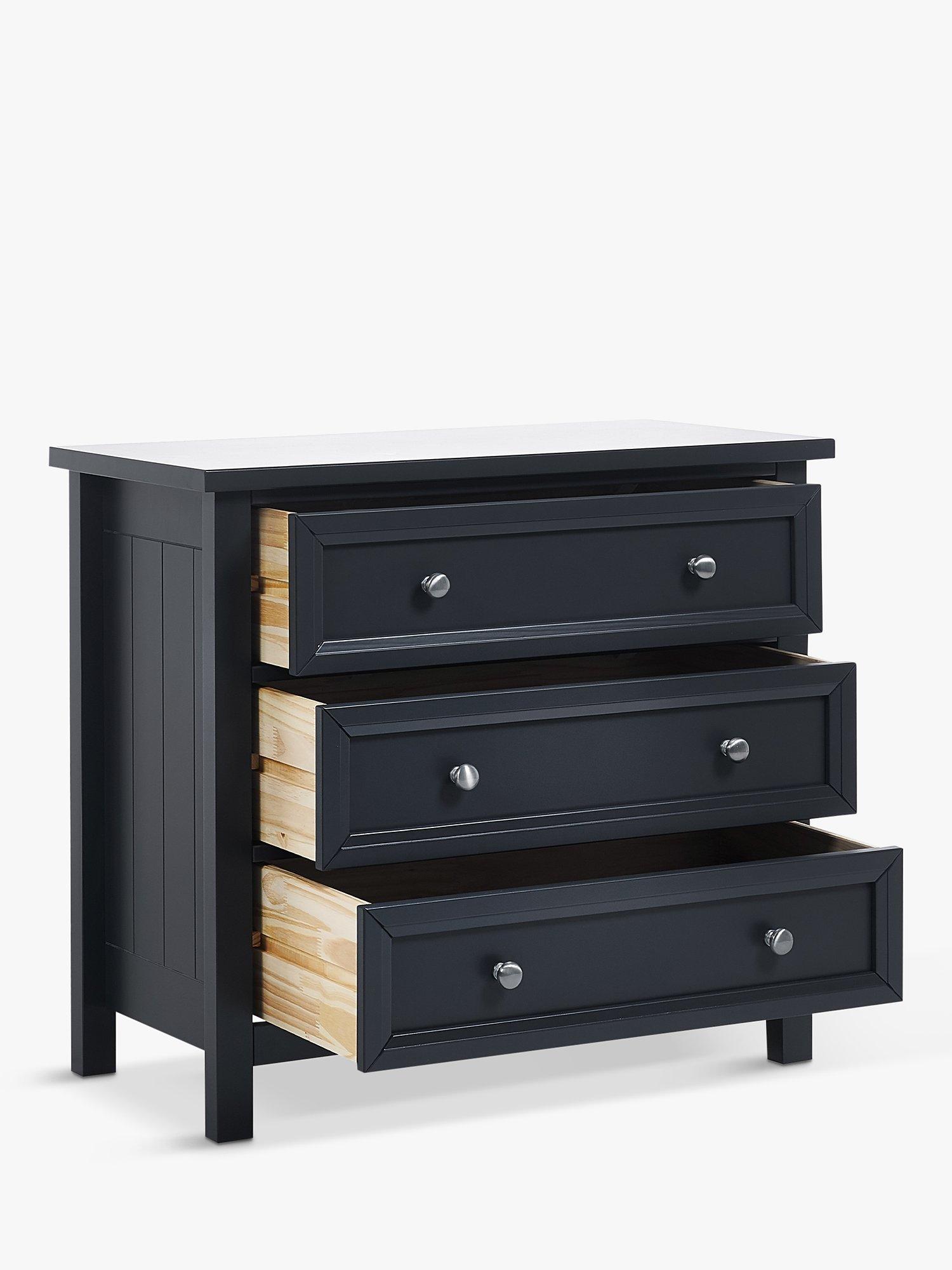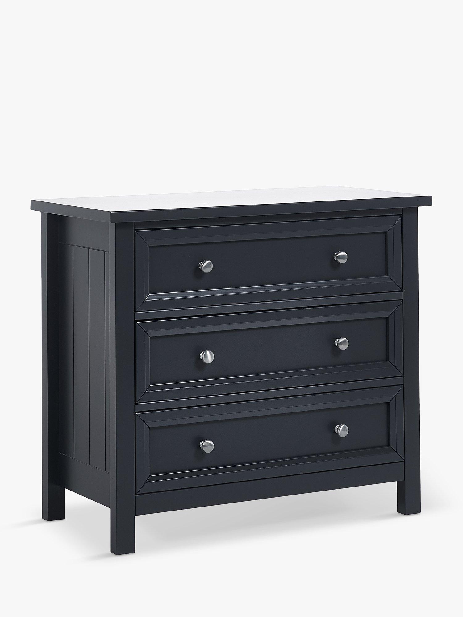 Maine is an elegant New England style range of bedroom furniture. The combination of exquisite surf white painted finish with characteristic side panelling and detailed chamfered cabinetry makes for a soothing and refined aesthetic with timeless appeal, while delicate pewter handles add the perfect finishing touch. The Maine 3 drawer chest offers three large storage drawers.