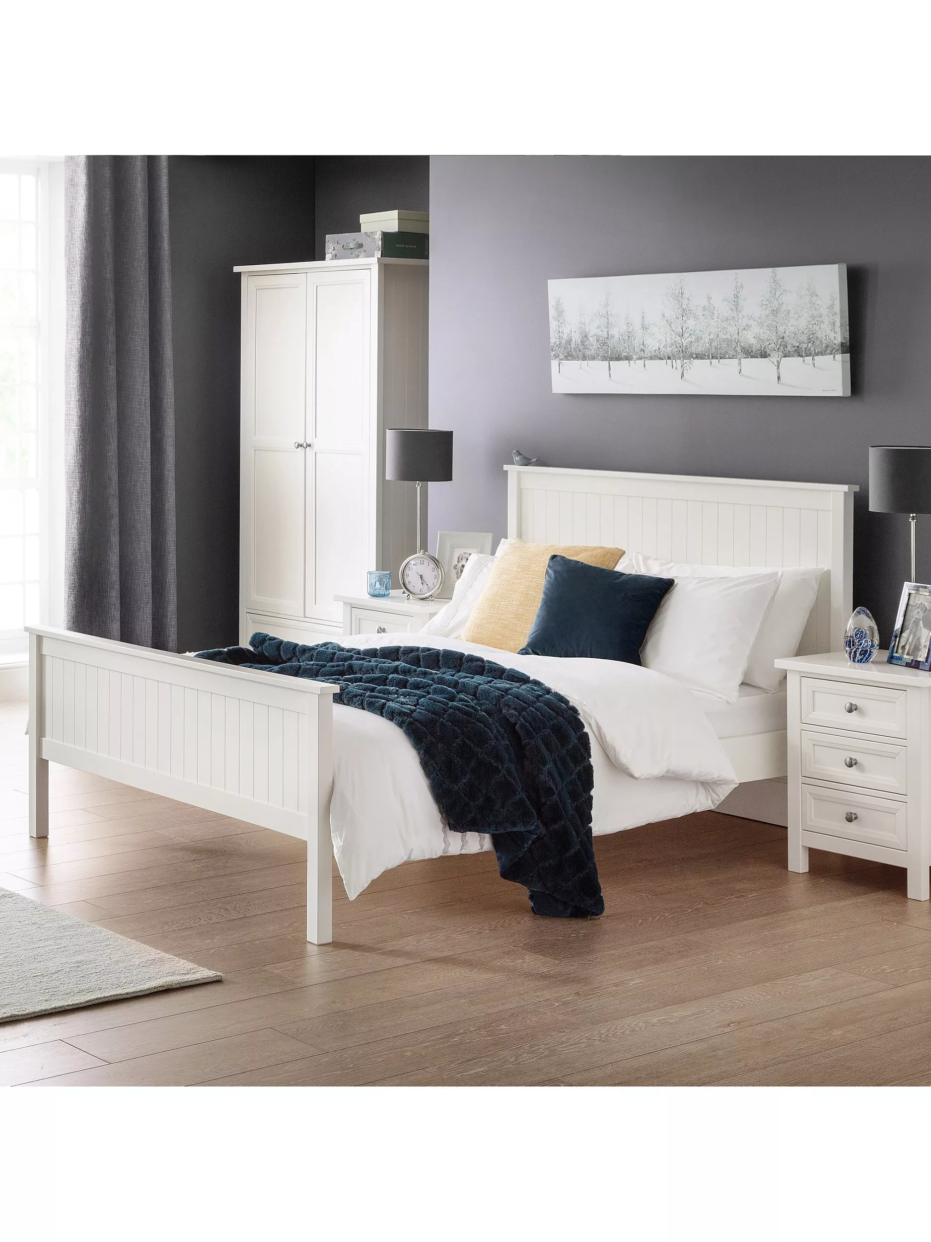 Maine is an elegant New England style range of bedroom furniture. The combination of exquisite white painted finish with characteristic side panelling makes for a soothing and refined aesthetic with timeless appeal. The Maine double bed features a solid slatted base to ensure supreme comfort and prolonged mattress life.