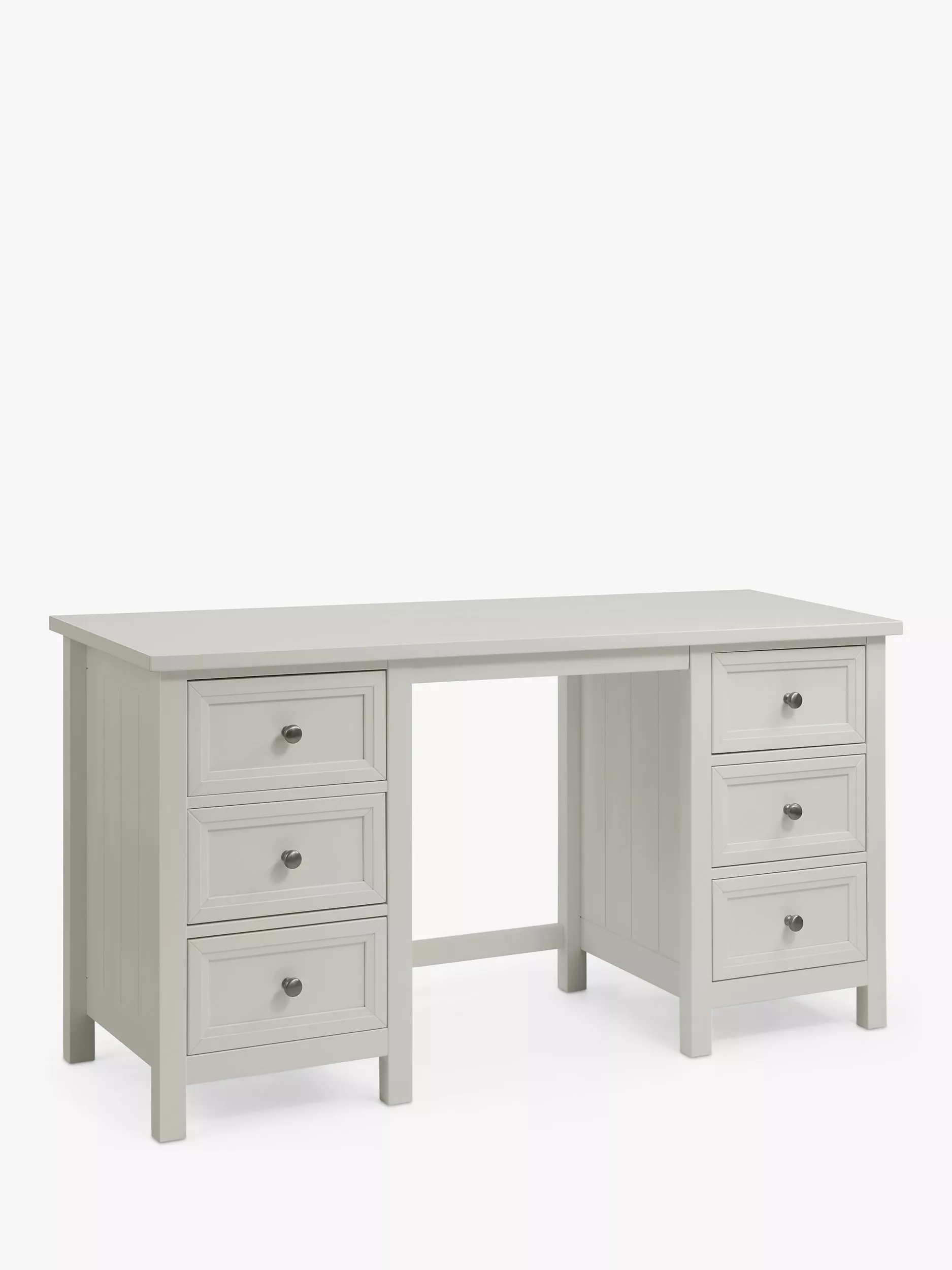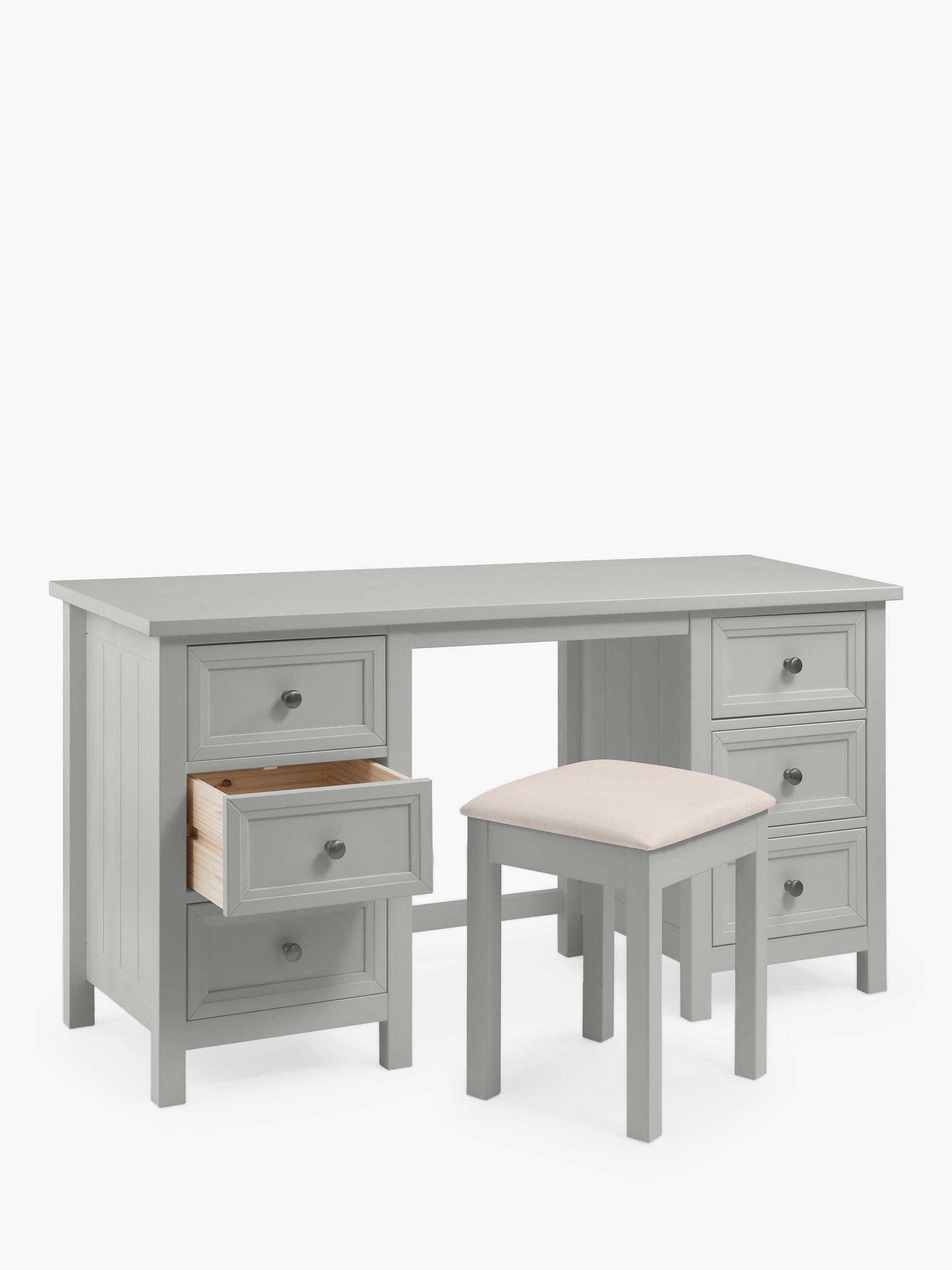 Maine is an elegant New England style range of bedroom furniture. The combination of exquisite elephant grey painted finish with characteristic side panelling and detailed chamfered cabinetry makes for a soothing and refined aesthetic with timeless appeal, while delicate pewter handles add the perfect finishing touch. The Maine dressing table offers plenty of storage space thanks to a total of six drawers.