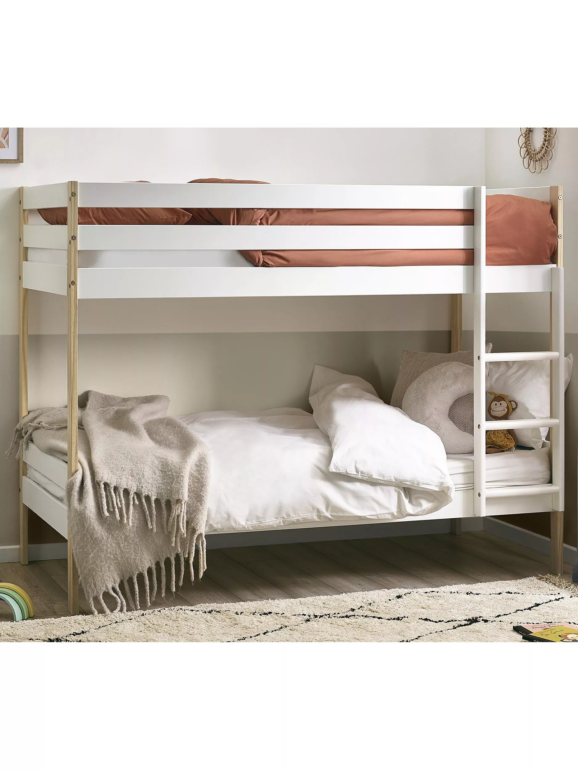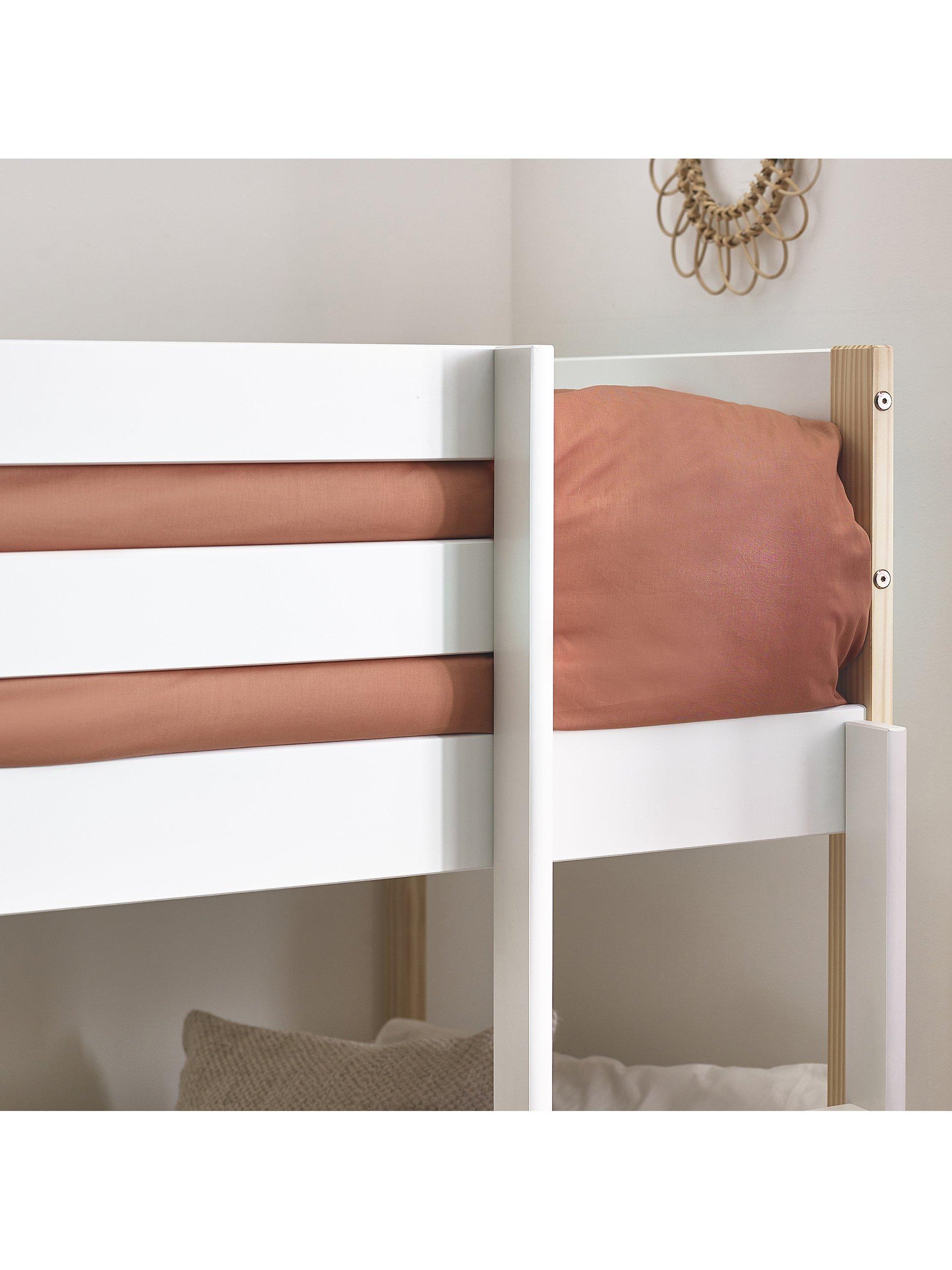 The Nellie Bunk offers a classic design in a two-tone finish. Perfect for sharing siblings or sleepovers, the Nova saves valuable activity space by only taking up the room of a single bed, making it ideal for smaller bedrooms. Crafted from solid pine and MDF, this sturdy design suits any style of interior.