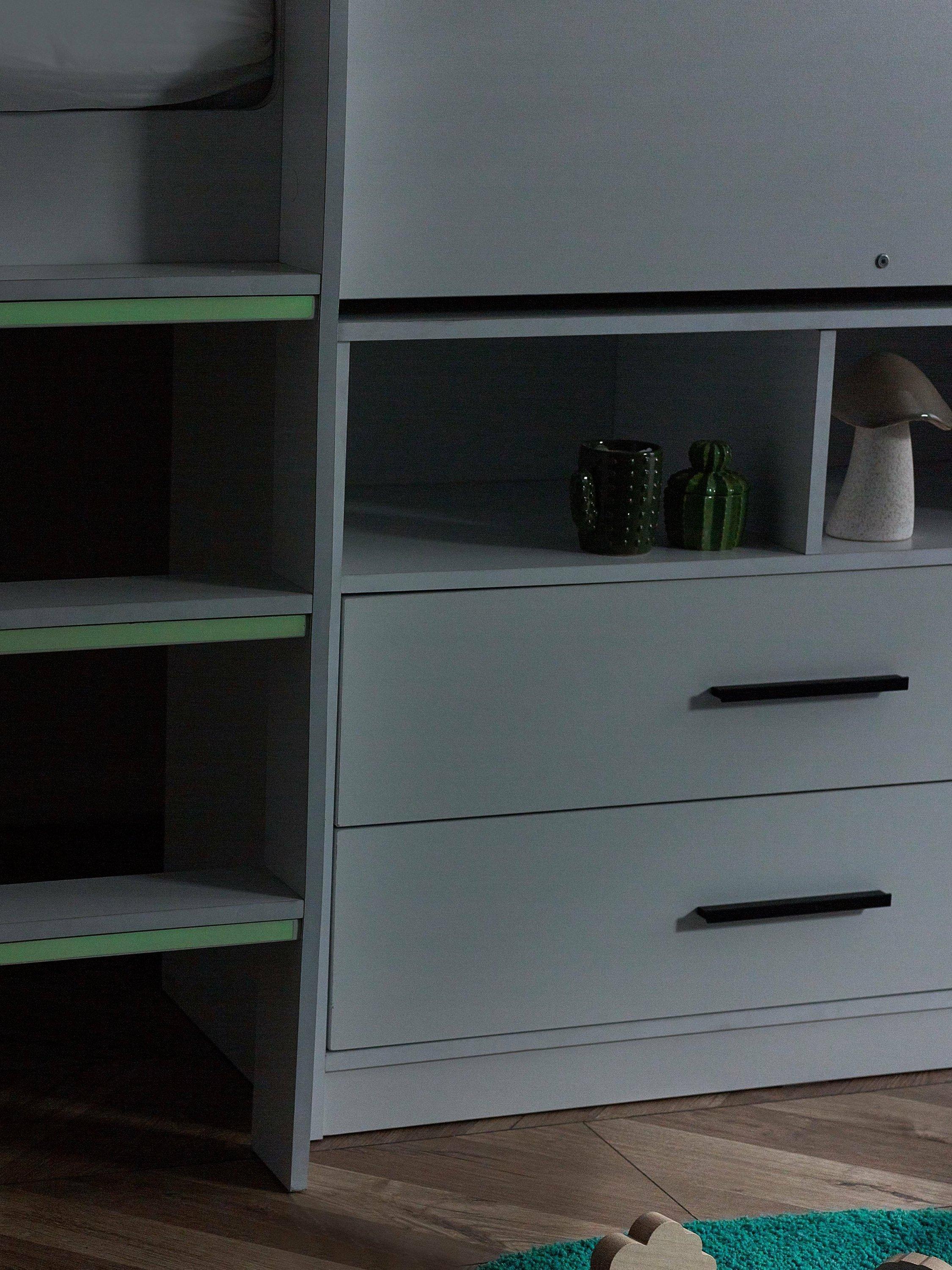Embark on a bedtime adventure with the Otis Midsleeper - a versatile and stylish addition to your child's room that transforms bedtime into an adventure.