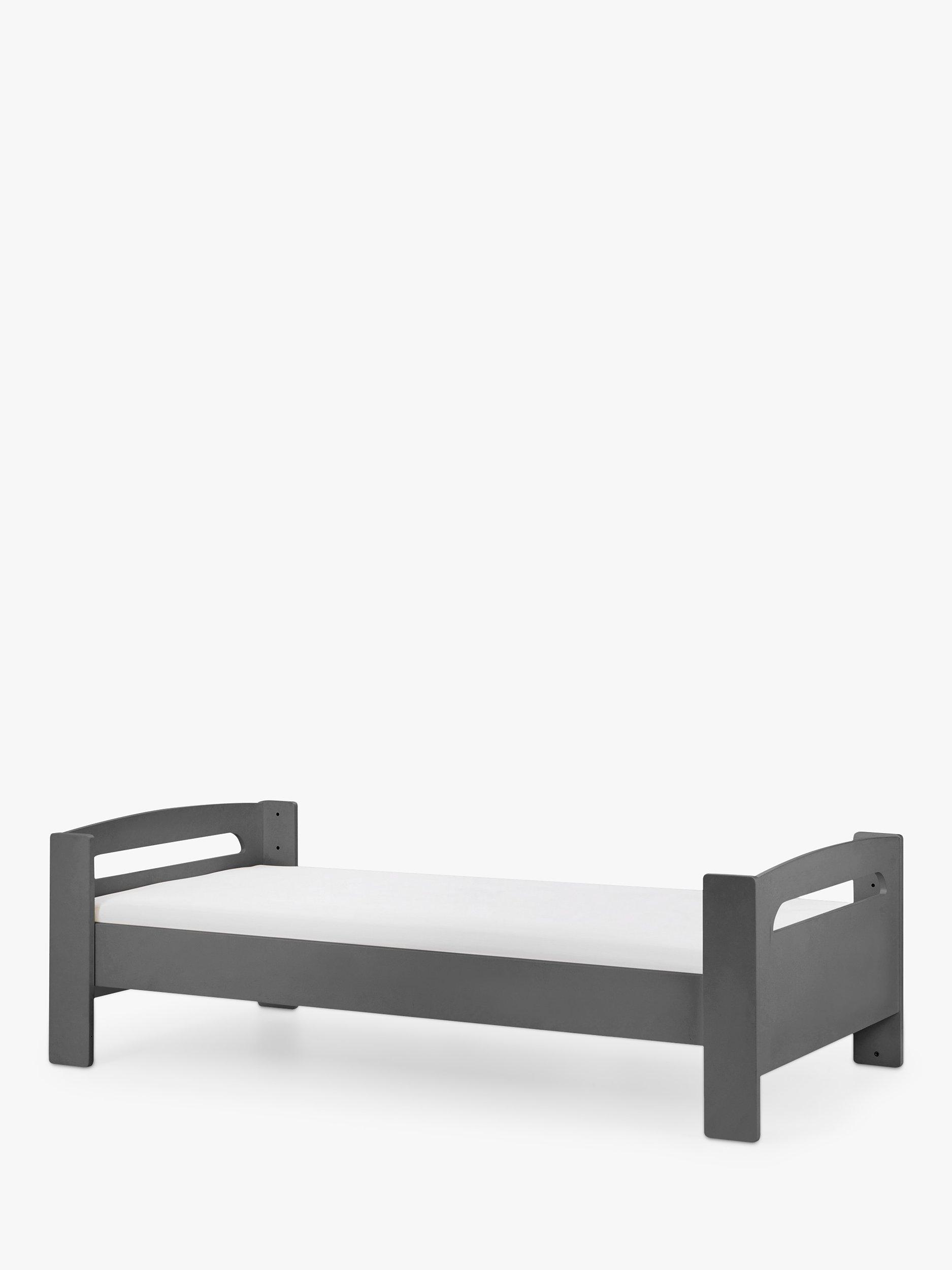 This bed has been tested to British Standards BS EN: 747. It's suitable for children 6 years+. The solid slats in this bed frame provide a firm and more supportive base for their mattress. The compatible single mattress (L190 x W90cm) should have a maximum height of 15cm and is sold separately.