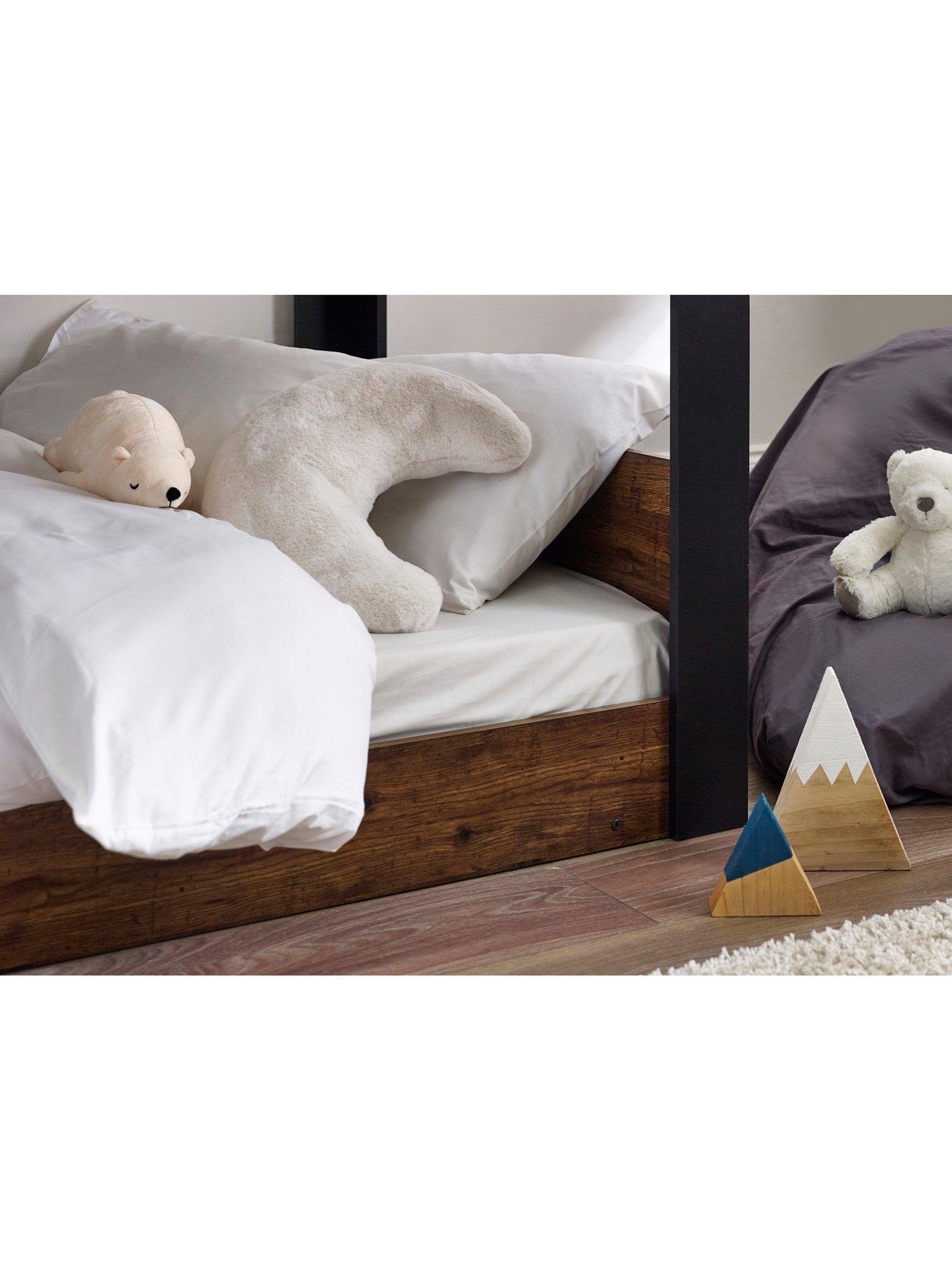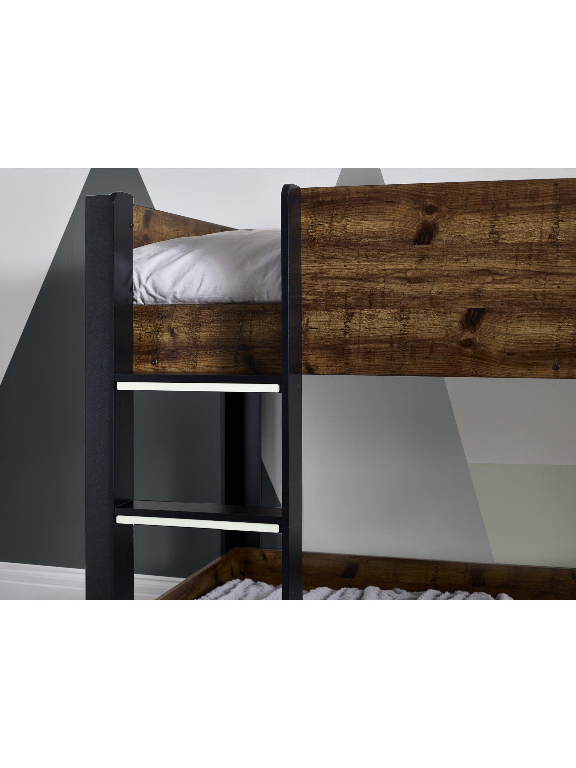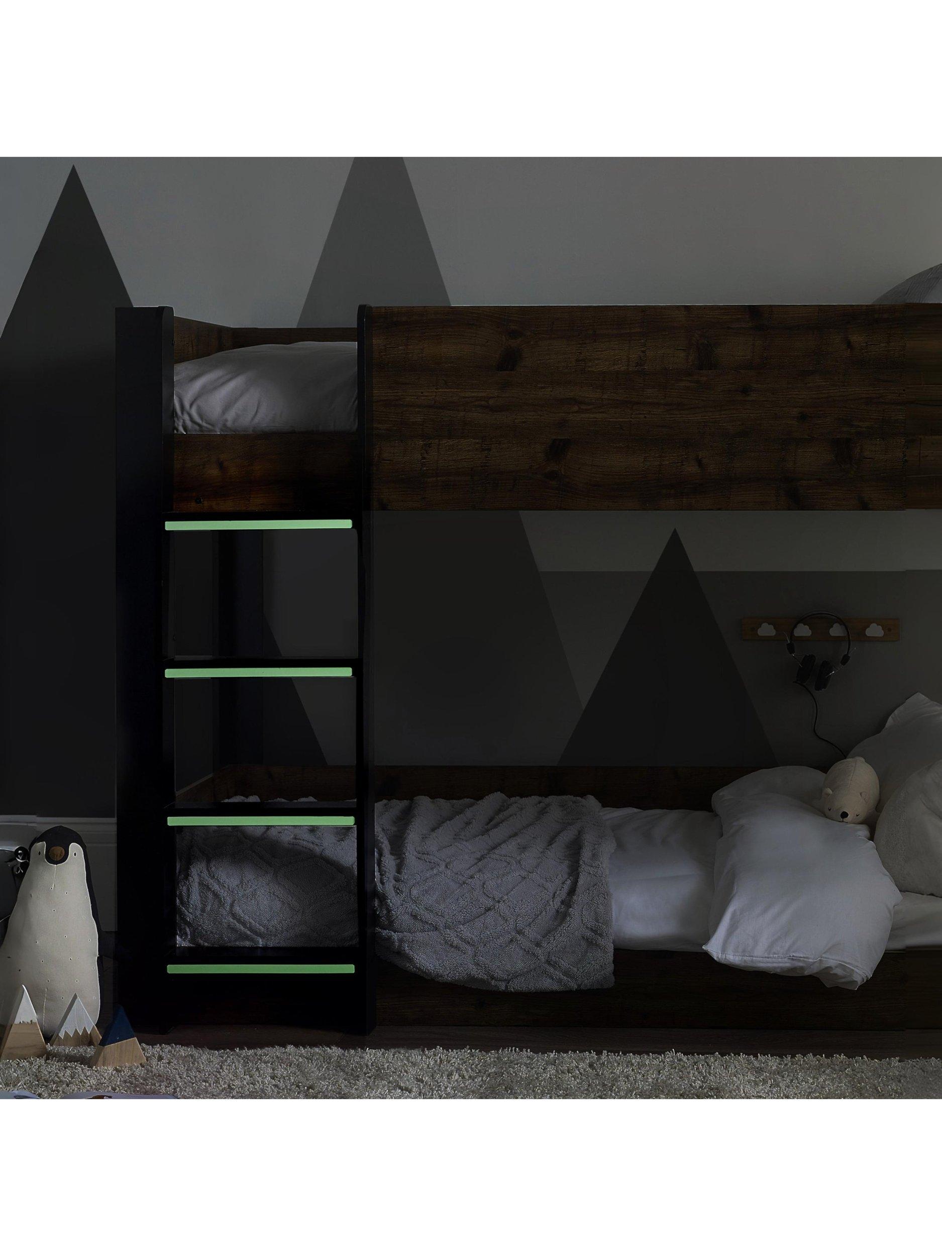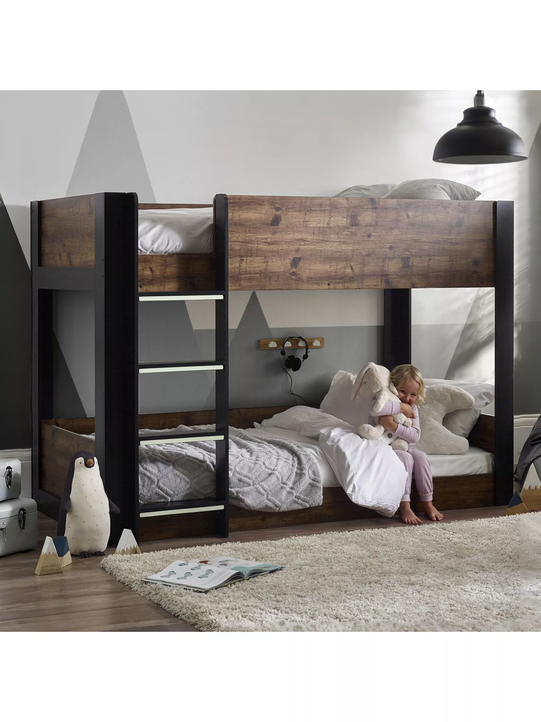 Transform bedtime with the Solomon Bunk Bed, a cosy haven designed for style and safety. Finished in an urban rustic wood and black combination, this bunk bed seamlessly complements any decor, adding a touch of contemporary charm to your child's room. The highlight is the glow-in-the-dark steps, turning bedtime into a magical experience while ensuring safe access to the top bunk. Crafted with the well-being of your little ones in mind, the bunk bed features a boarded headboard and footboard, offering extra security and peace of mind.