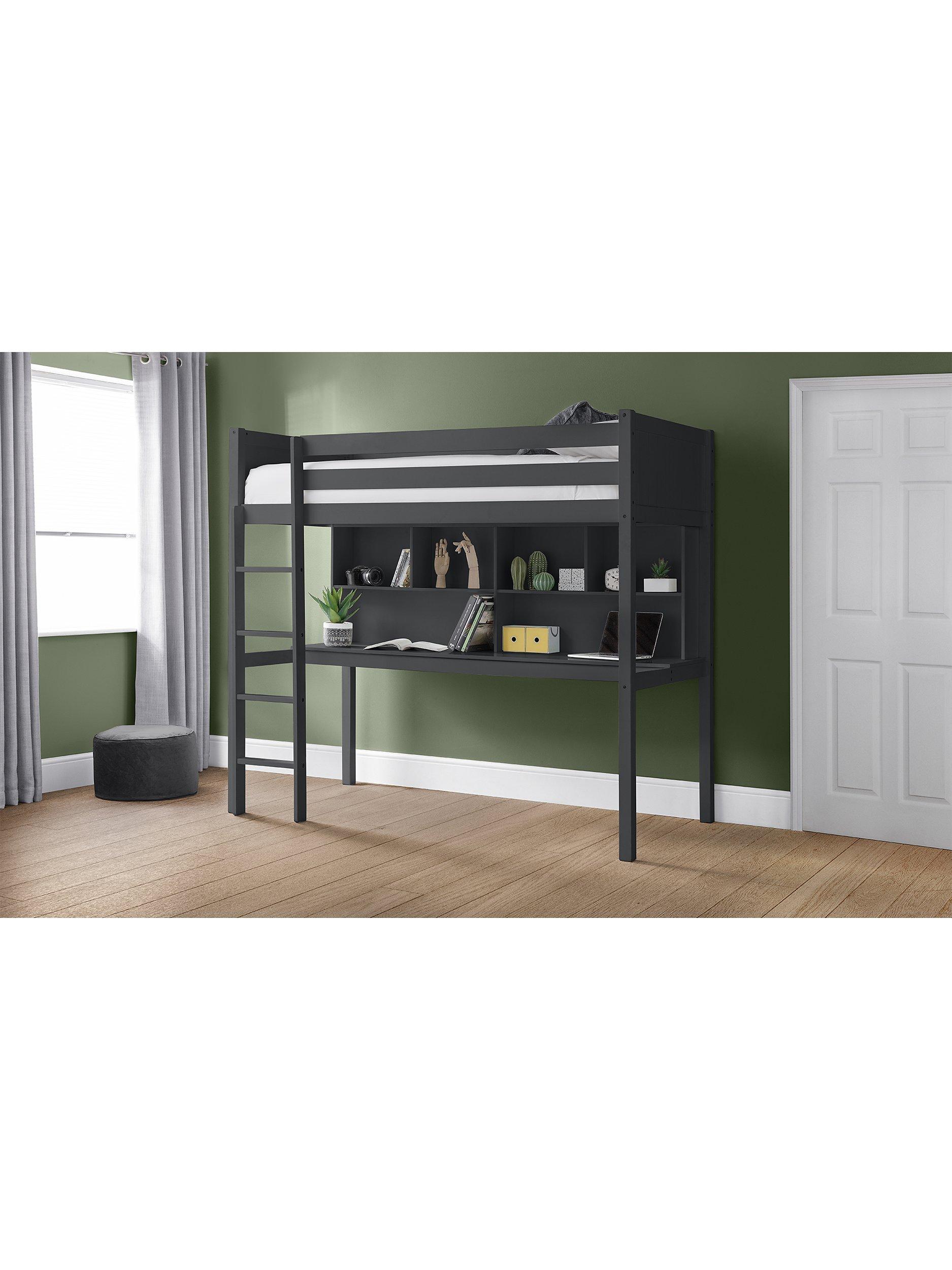 Crafted from Malaysian Hardwood and MDF, the Titan High sleeper is a simple style that matches with any bedroom décor. Offering a classic design with panelled detailing, this high sleeper features a workstation underneath, complete with shelves and room beneath for extra storage.
