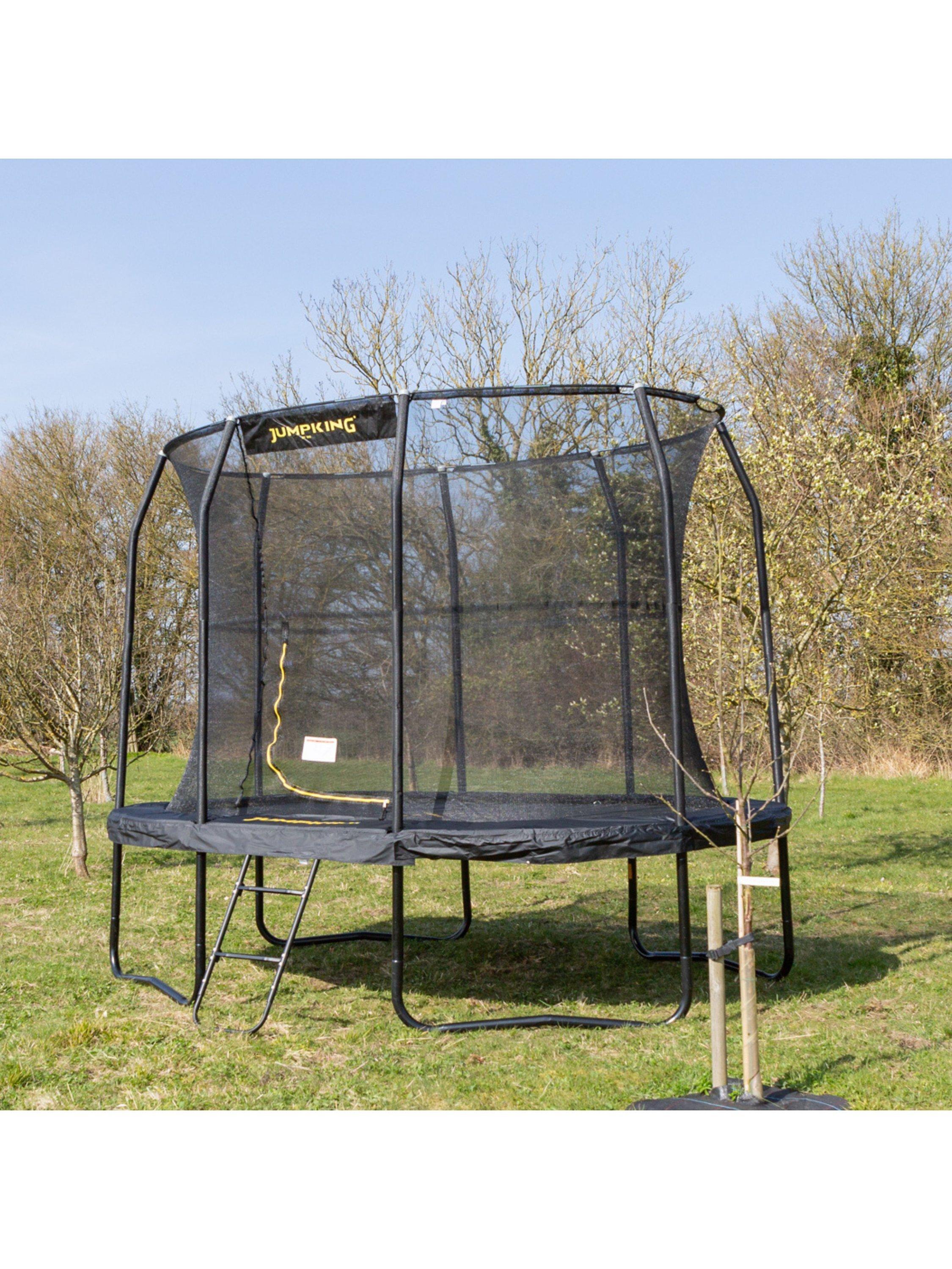 Encompassing stability with sleek looks and ultra-protection, the JumpKing 8ft x 11.5ft OvalPOD Trampoline with enclosure is great fun and exercise for all family members.