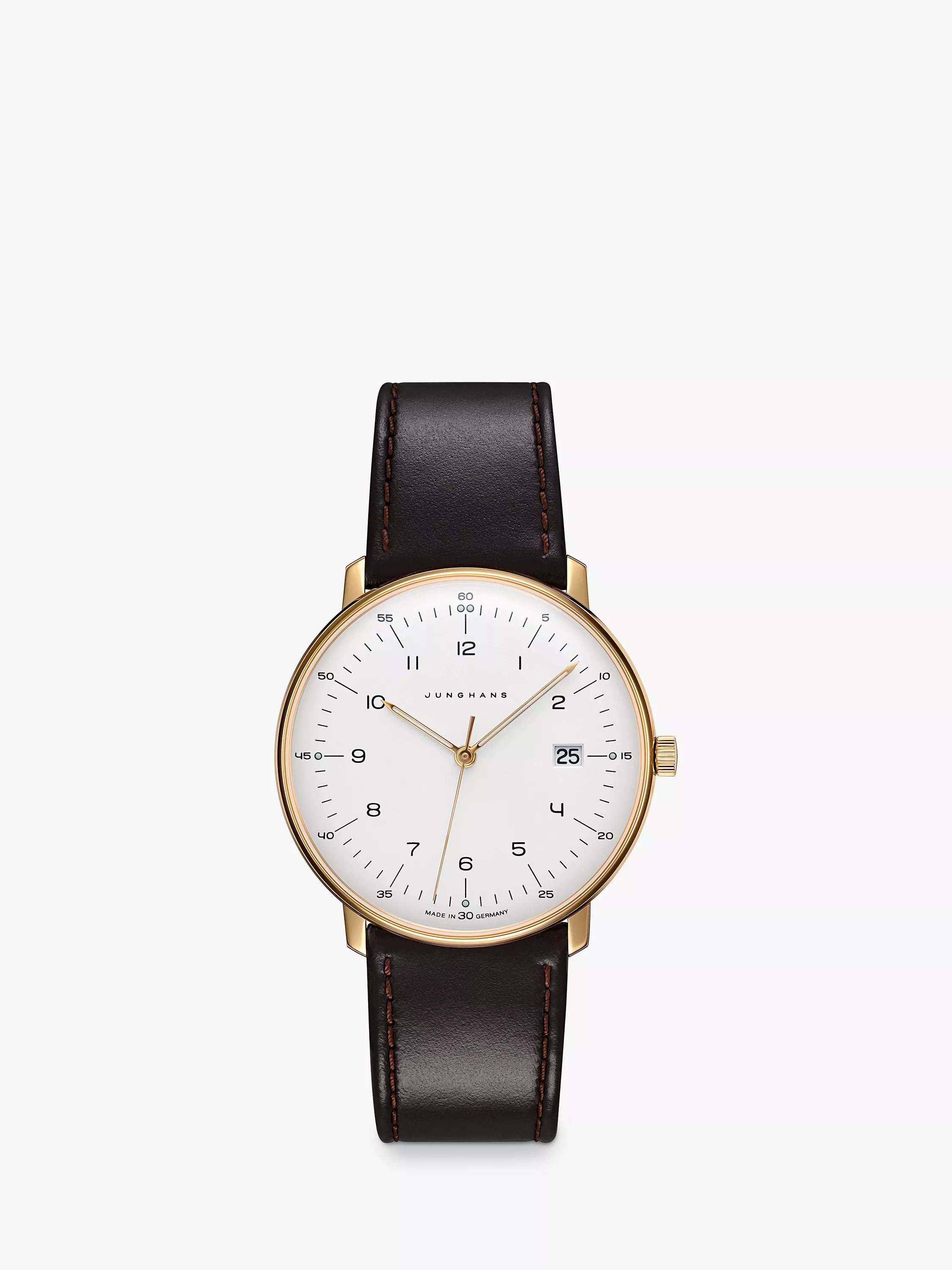 Junghans41/7872.02 Unisex Max Bill Date Leather Strap Watch, Brown/White