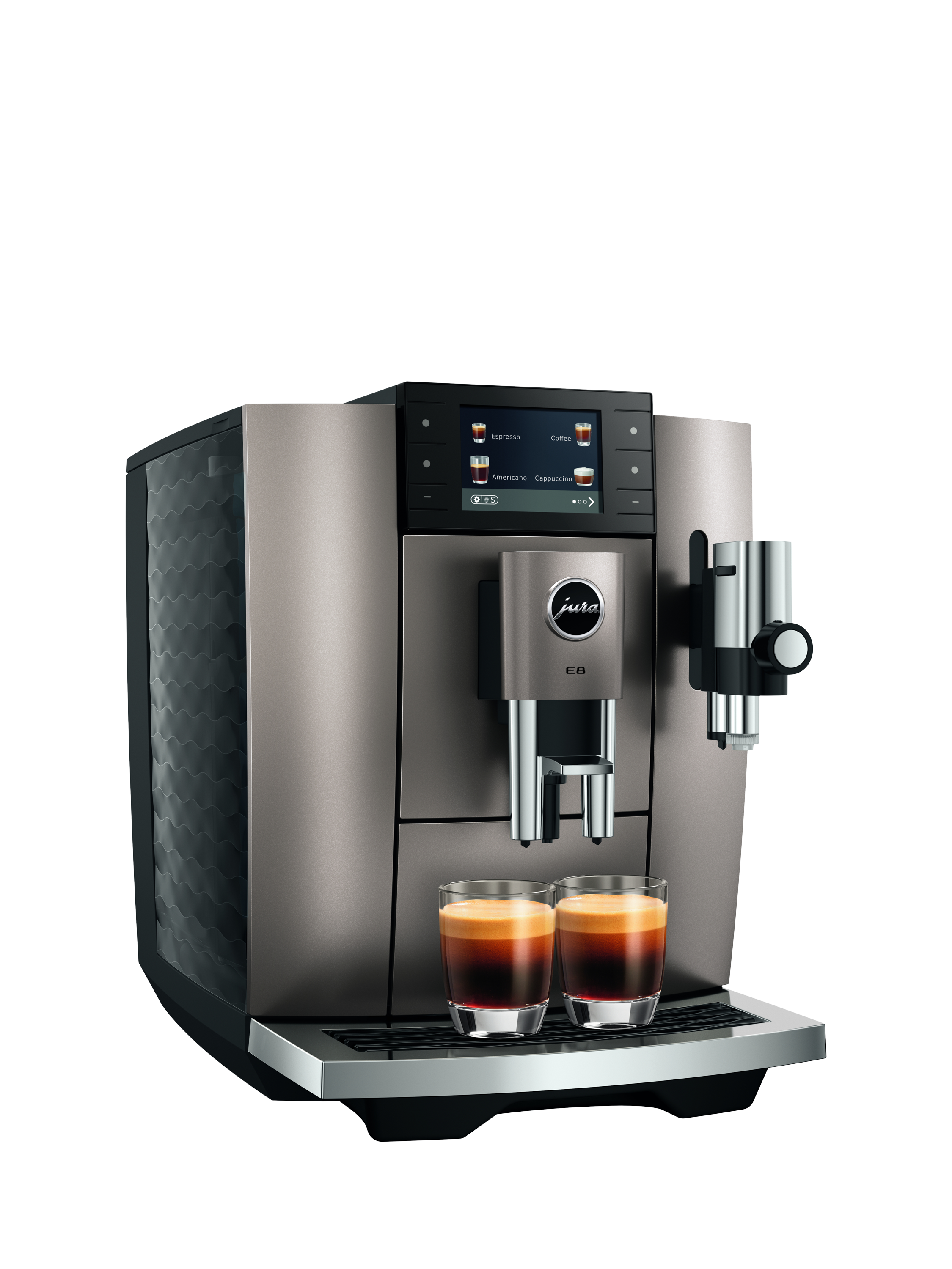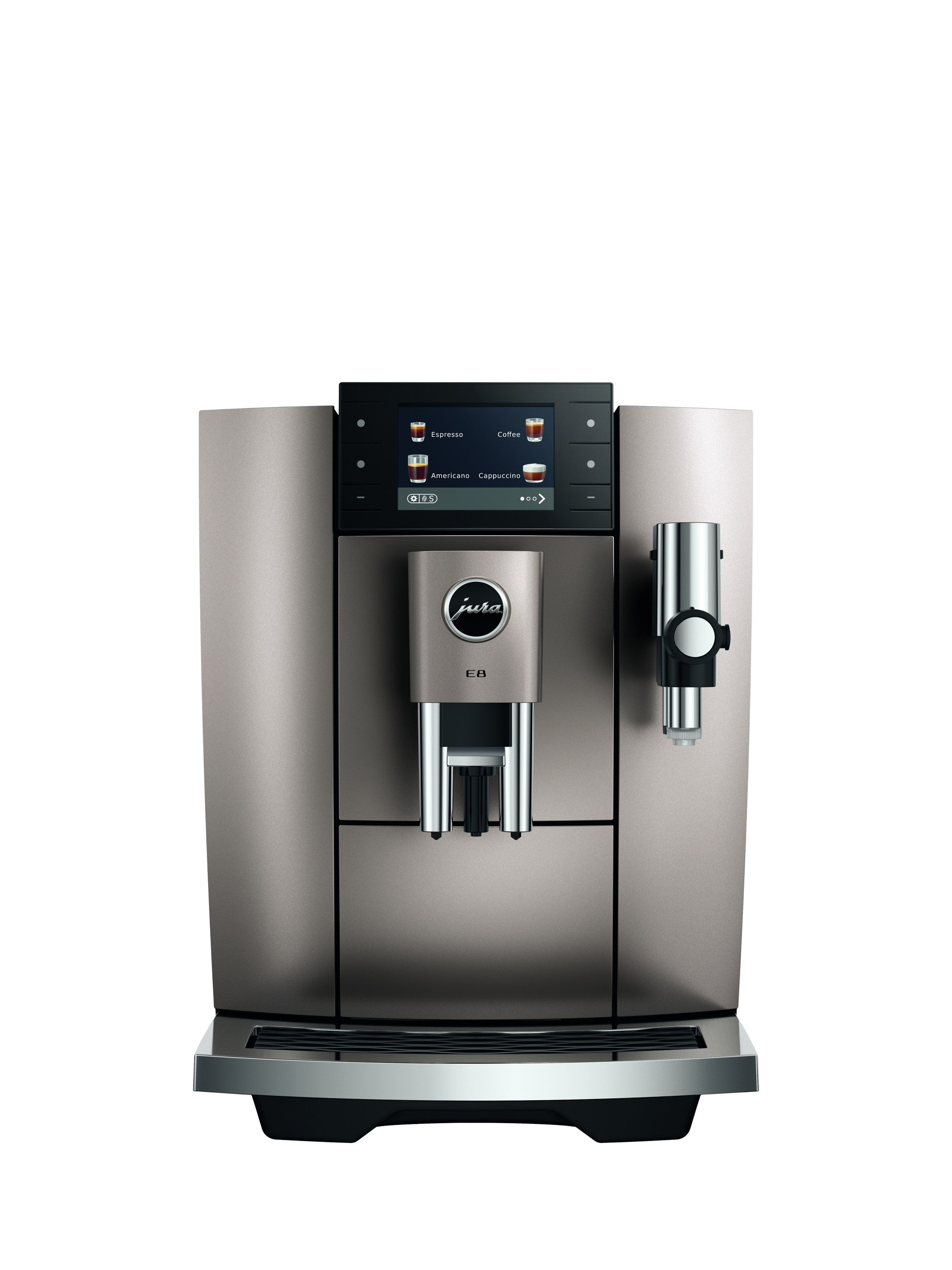 The E8 oozes style and, thanks to its 27 cm width, makes an impressive impact even in smaller kitchens, both in terms of design and coffee experience.