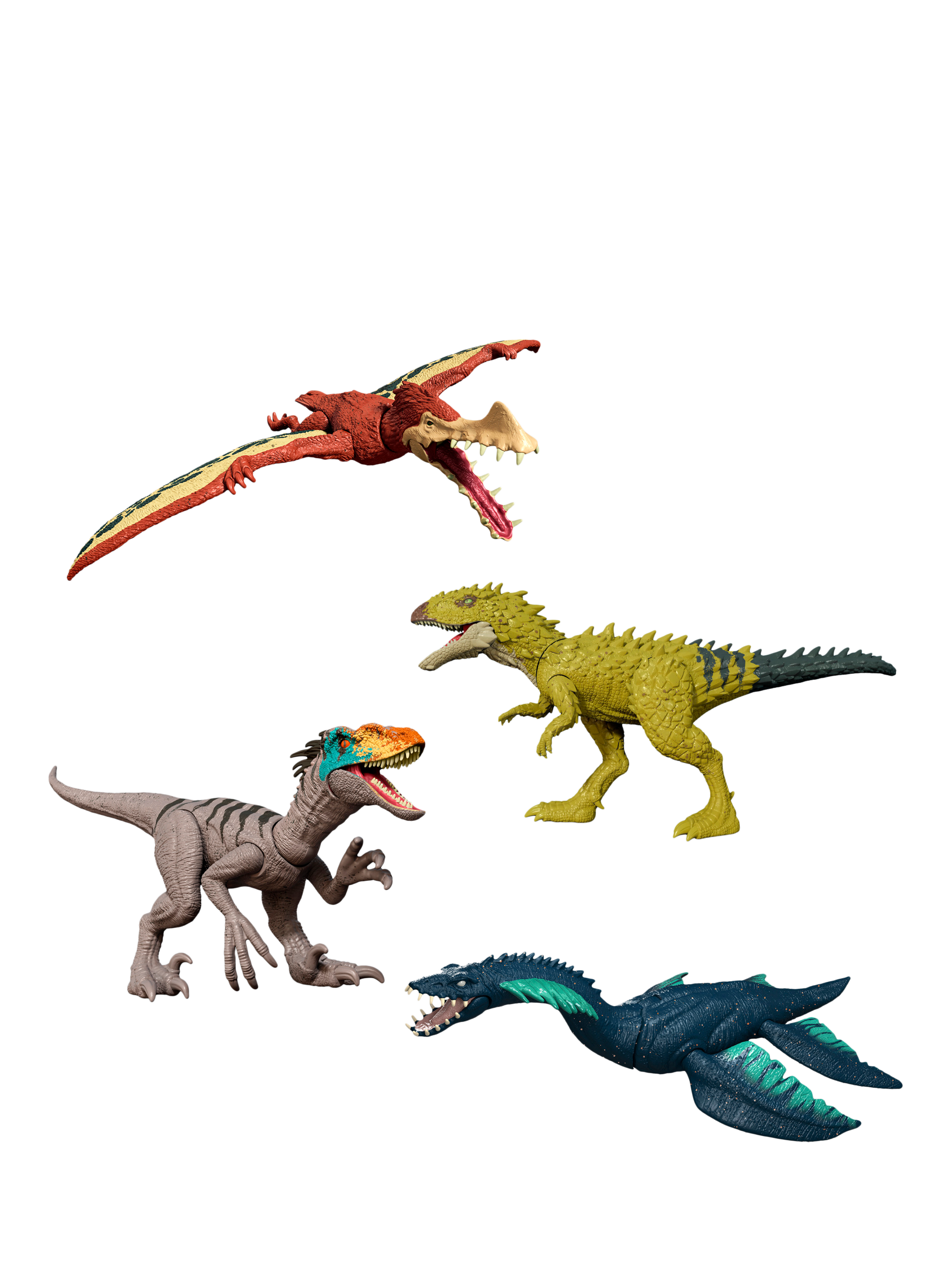 These Frenzy Pack dinosaurs, inspired by Jurassic World Rebirth, are known to herd, hunt and attack in packs. Choose from carnivores and herbivores, with movable joints, realistic sculpting and authentic decoration.