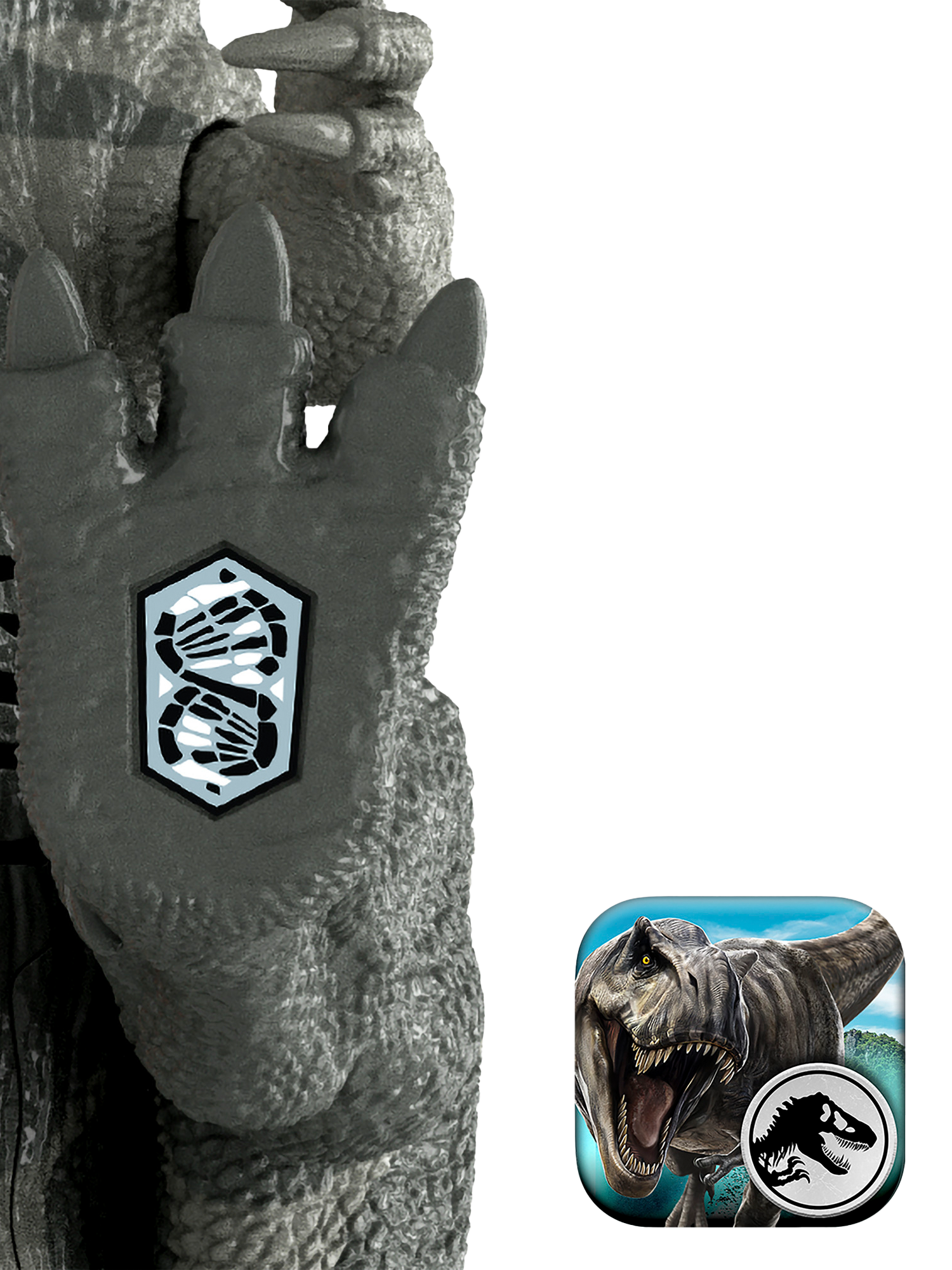 Scan the Tracking Code on the dinosaur's foot in the free Jurassic World Play App with a compatible smart device (Android or iOS, not included) to unlock a digital version of the dinosaur and play the fiercely fun game to race vehicles on land, air and sea.