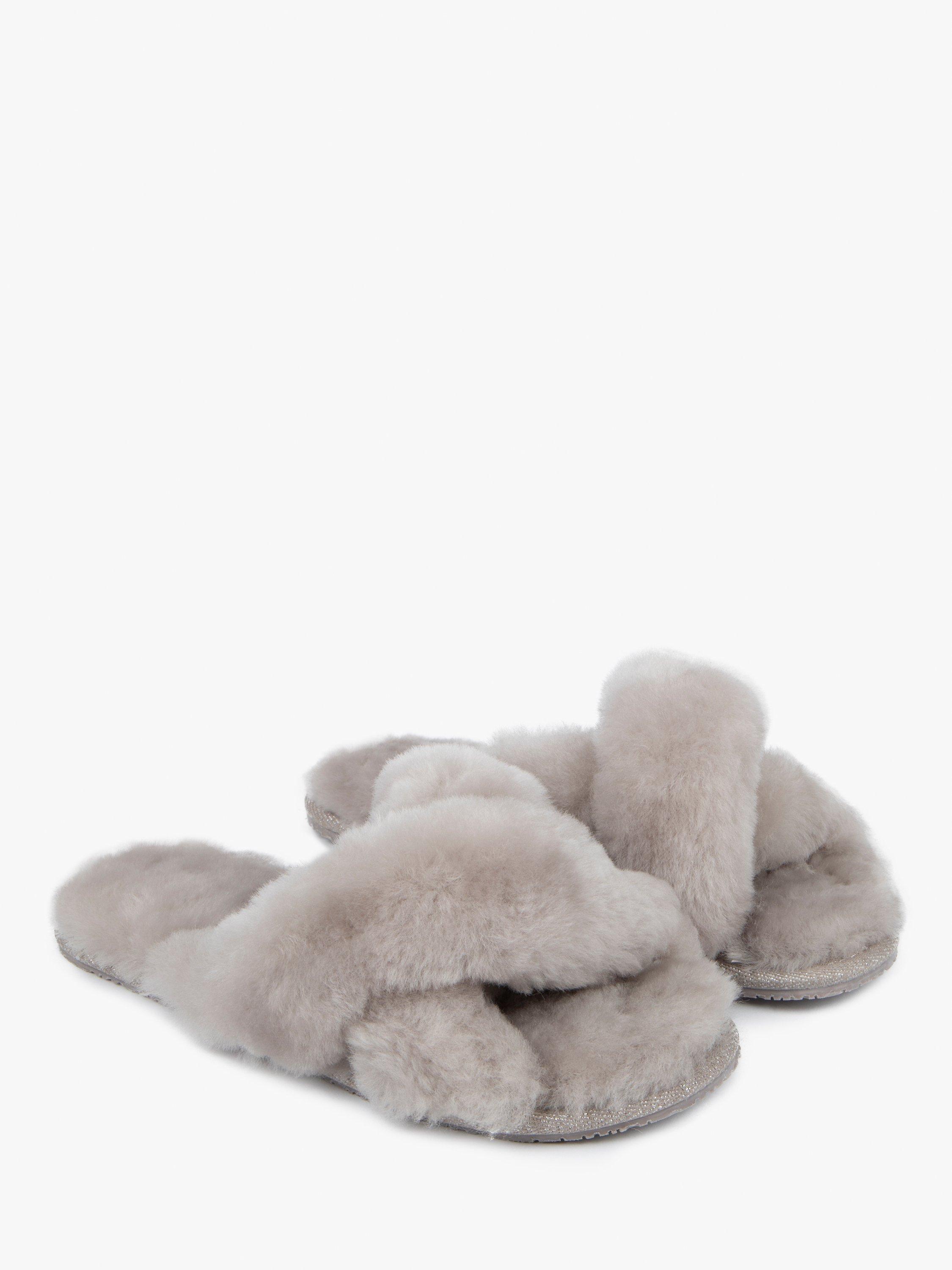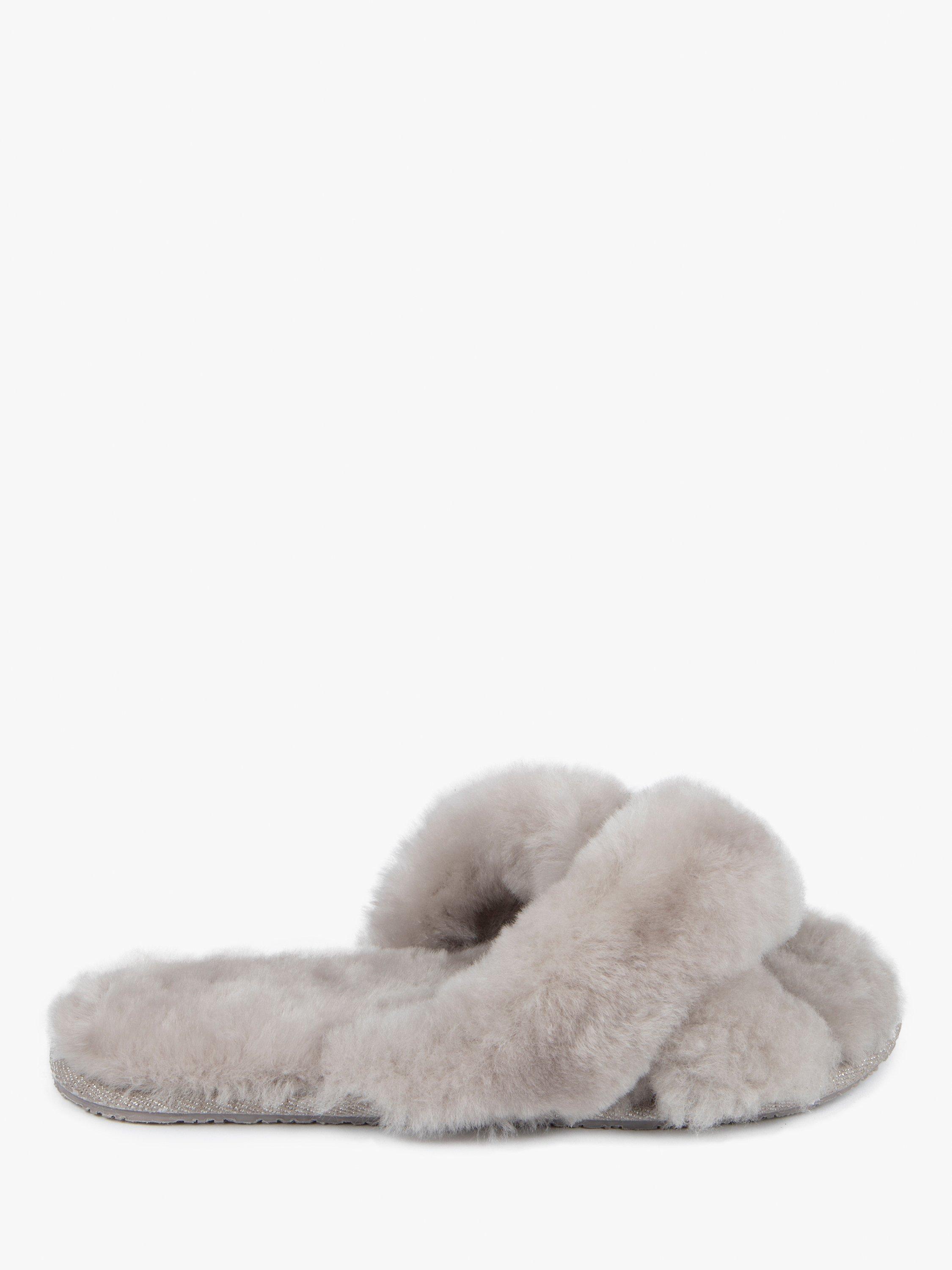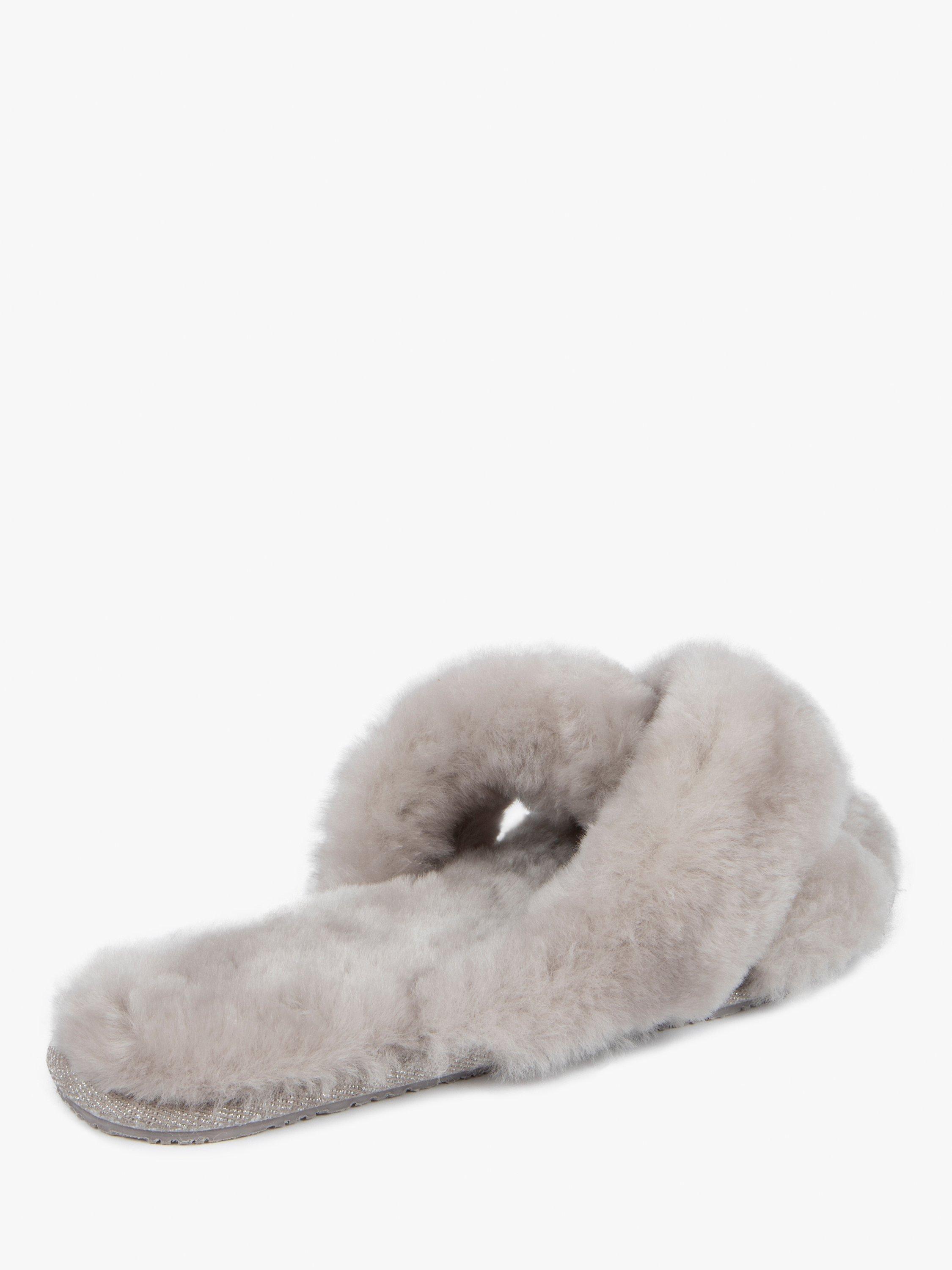 Slipping on with ease for relaxing at home, these open-toe slippers by Just Sheepskin are crafted from soft sheepskin and boast DREAM step gel infused memory foam for ultimate comfort.