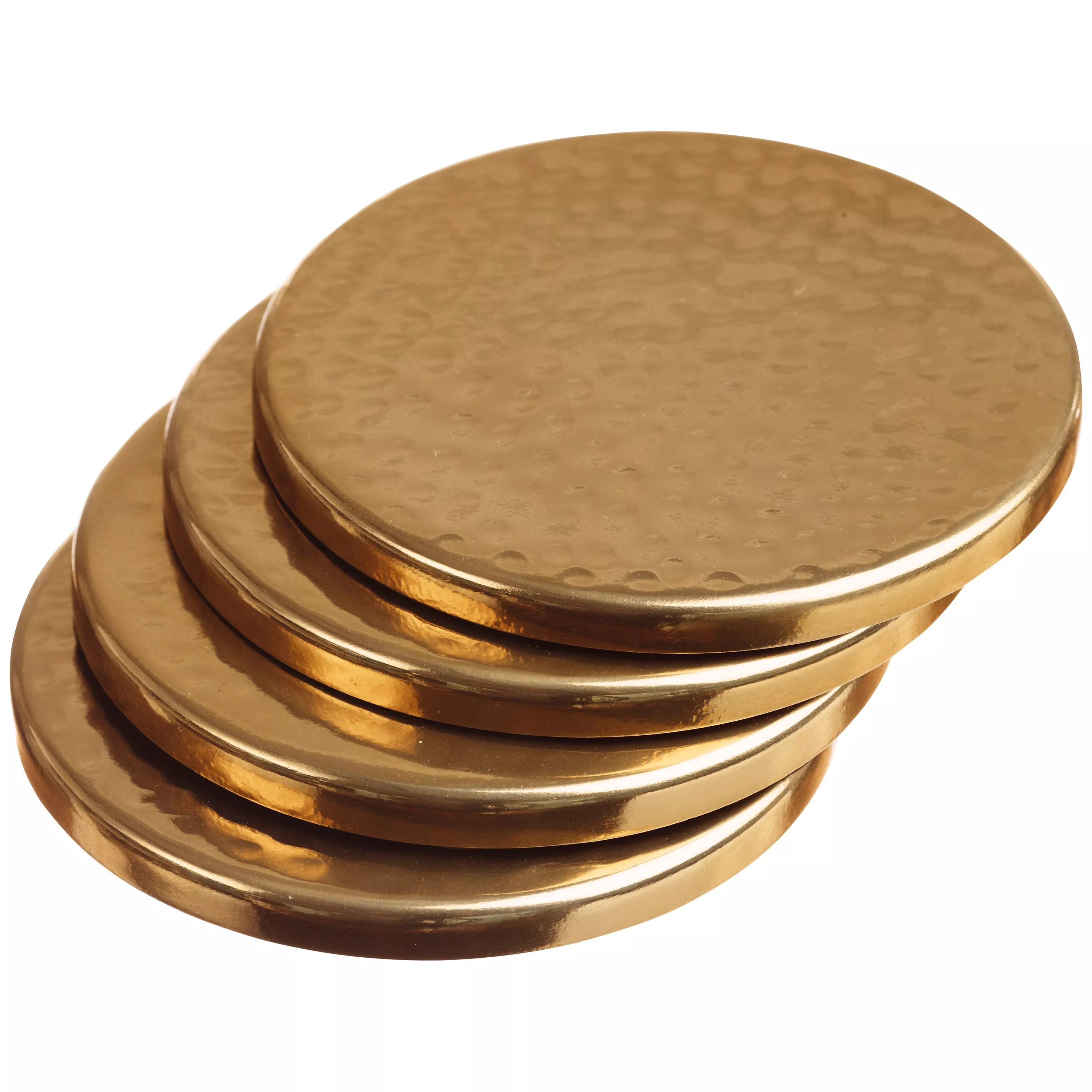 These beautiful, hand-beaten coasters have rubber backing to reduce the chance of spills. An elegant addition to a variety of occasions.