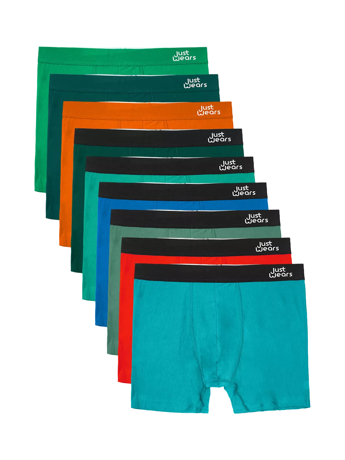 Supplied as a 9-pack, these boxers are designed in JustWears Pro style which is great for everyday wear. They're cut with a larger-than-normal front that won't ride up or need readjusting throughout the day.