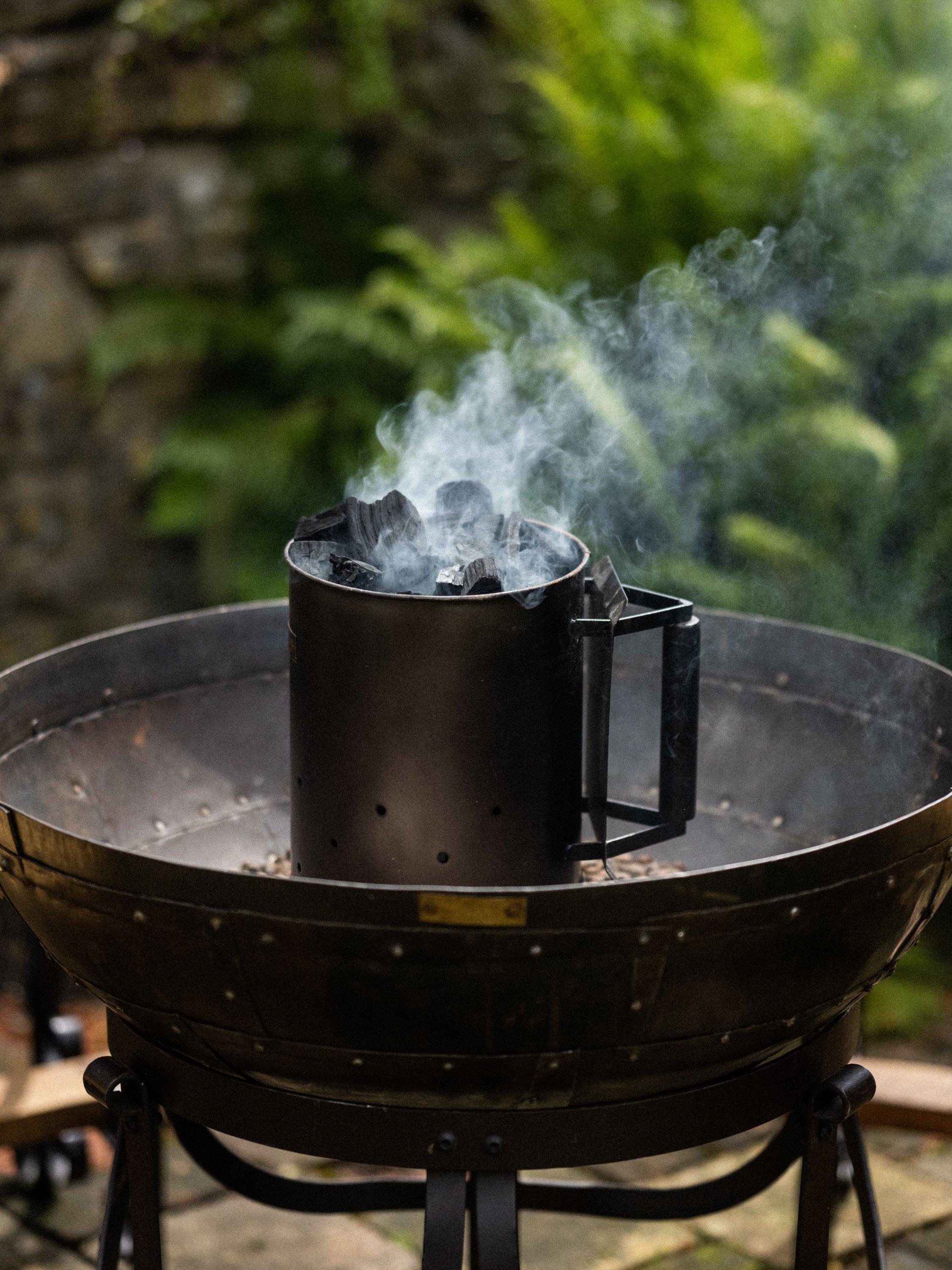 The BBQ Chimney Starter offers a clean, efficient way to light your barbecue. Simply place it over lit firelighters in your Kadai Fire Pit or any barbecue, fill with charcoal, and allow it to heat for around 15 minutes until the charcoal is glowing. Wearing a barbecue mitt, tip out the contents so the hot charcoal sits on top, quickly bringing your barbecue up to temperature. A simple, reliable essential for faster outdoor cooking.