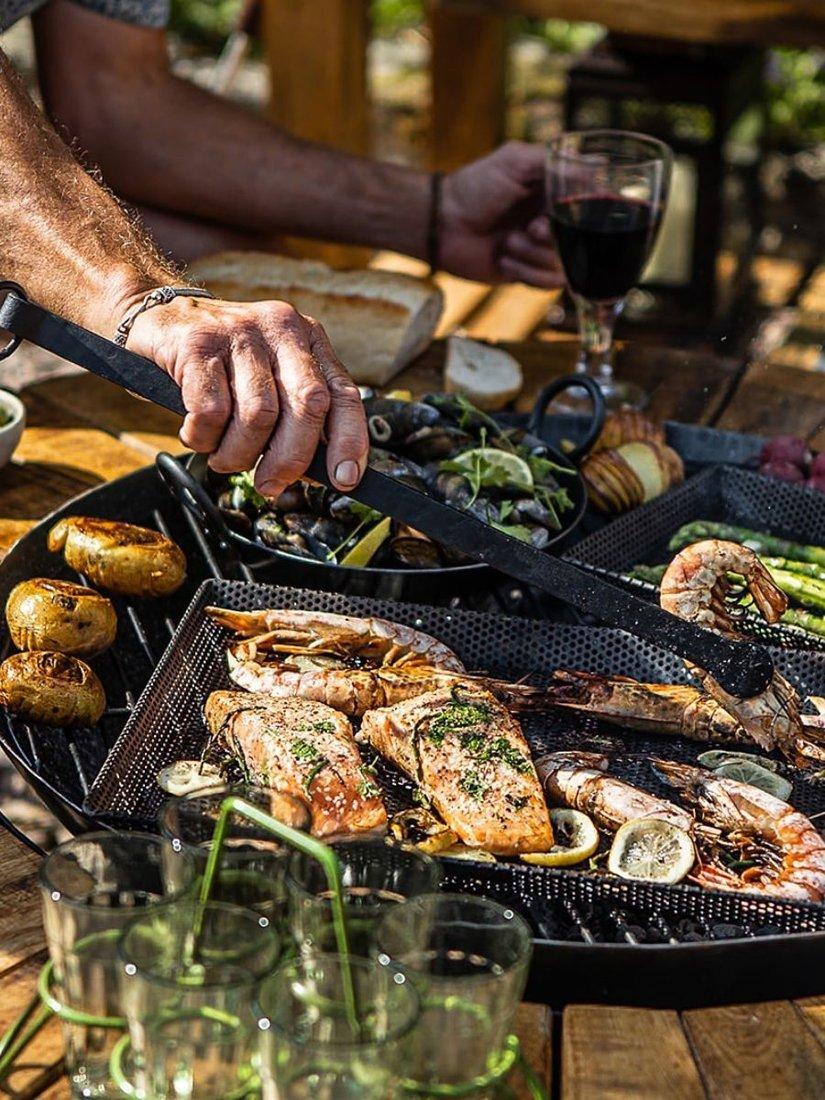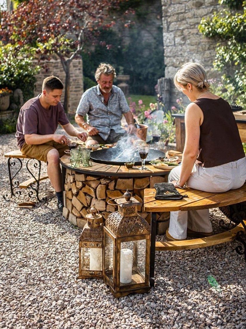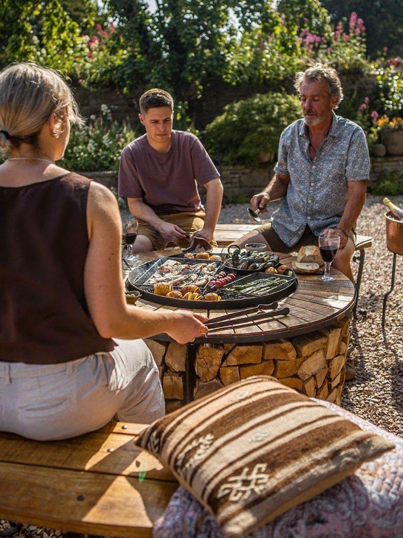 Use the Firebowl Table as a garden fire pit and as a barbecue for outdoor cooking, as well as a table to sit around and relax. It comes with tongs, a brush and a 7.5-litre bag of Kadai Beads to use as a protective base layer at the bottom of your Fire Bowl. The beads help protect the steel bowl from direct heat.
