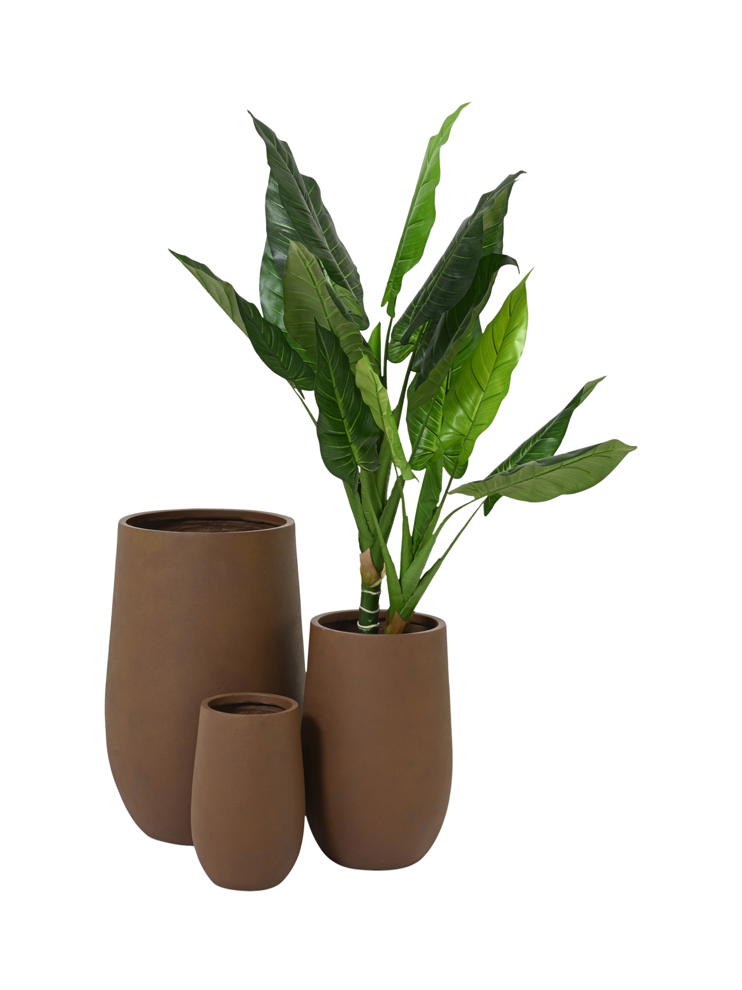 - Pot 1: H75 x W48 x D48cm, Pot 2: H55 x W35 x D35cm, Pot 3: H40 x W25 x D25cm