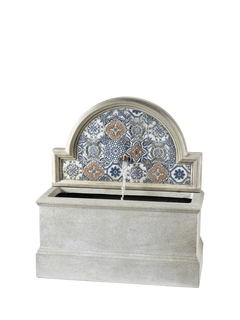 An Italian-inspired water feature, Turin features intricate mosaic tiles and a classic trough design. A wide shape, this freestanding wall fountain adds an atmospheric touch to any outdoor space. Manually adjust the water volume so that the soothing sound of flowing water suits your preference and space.